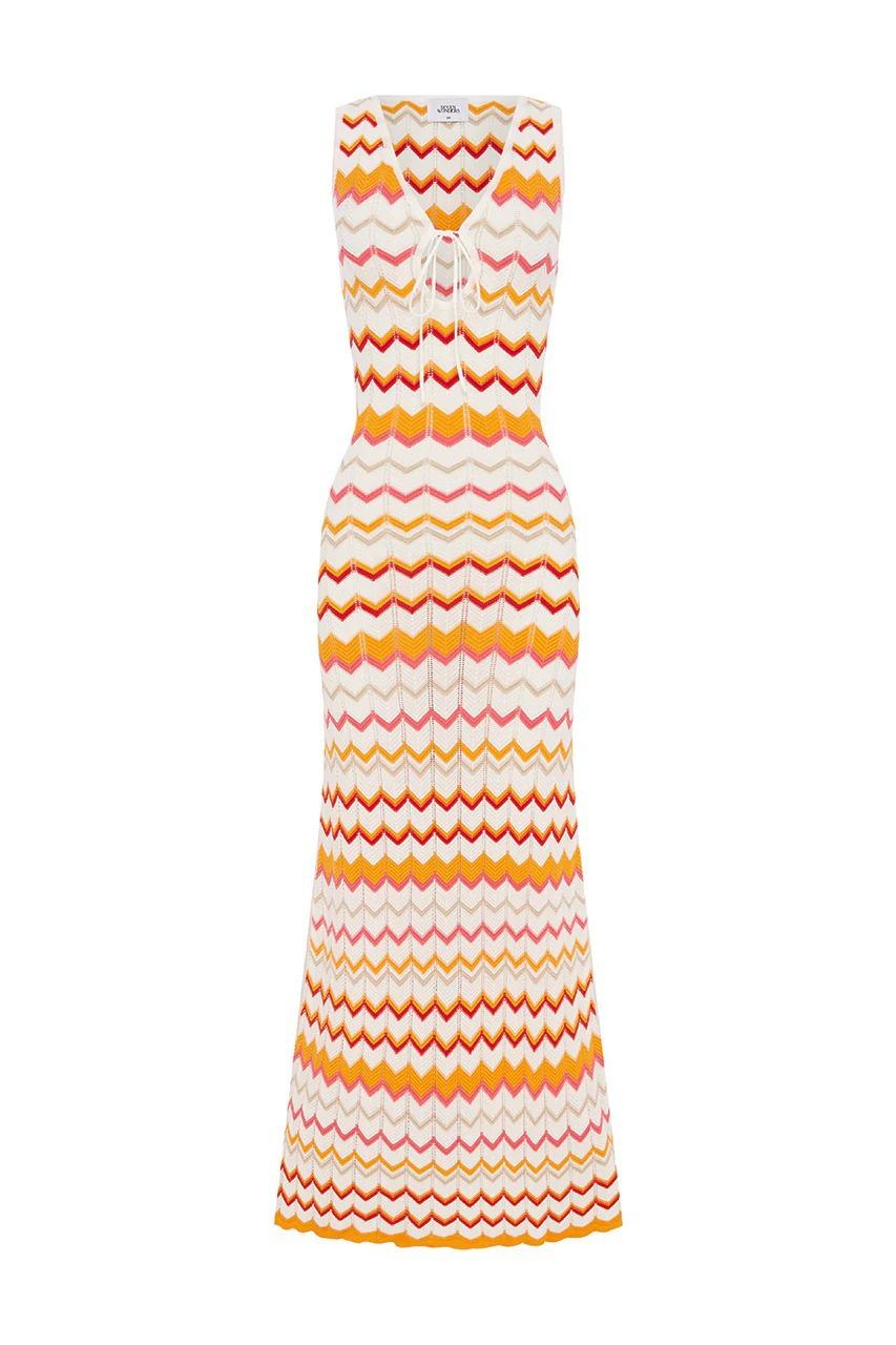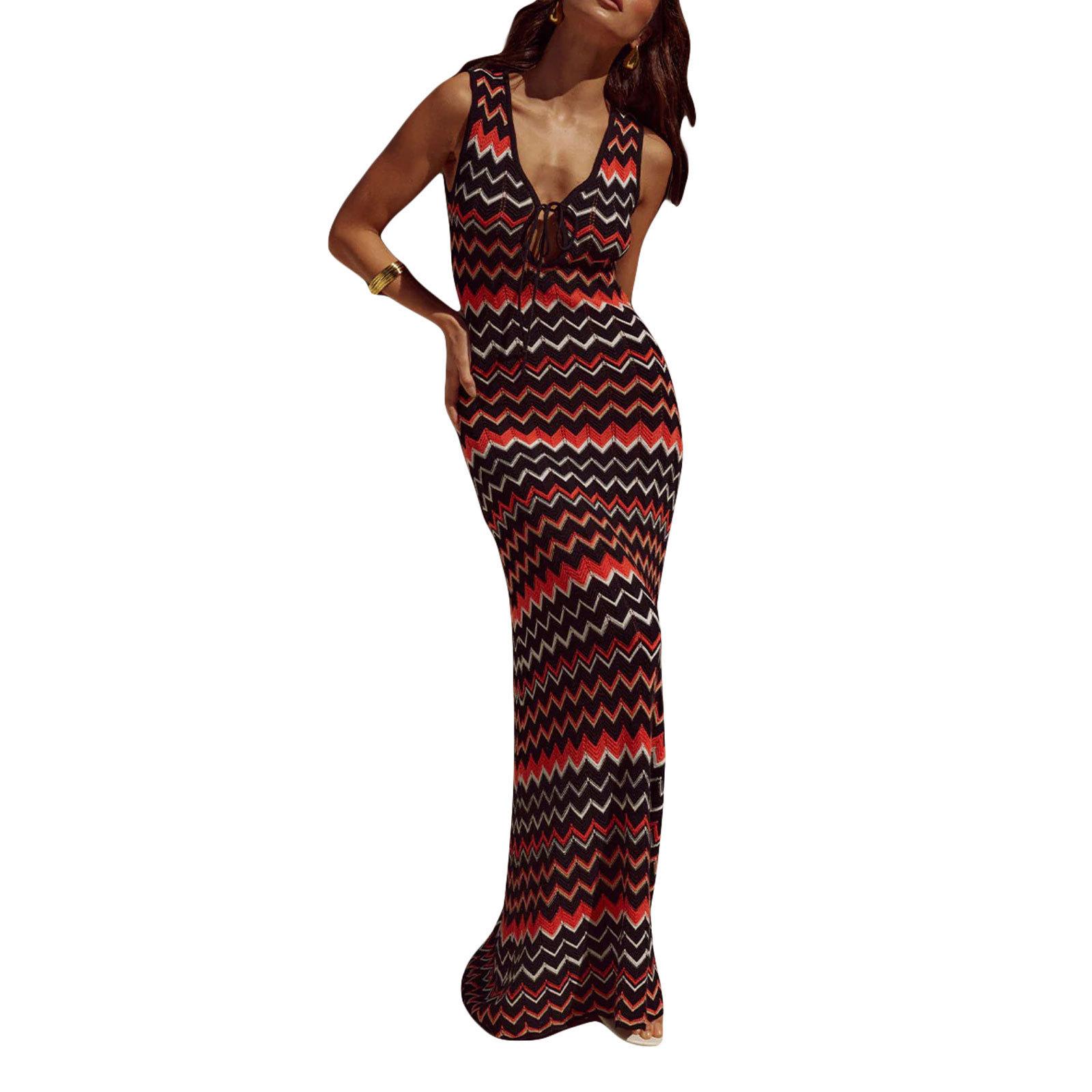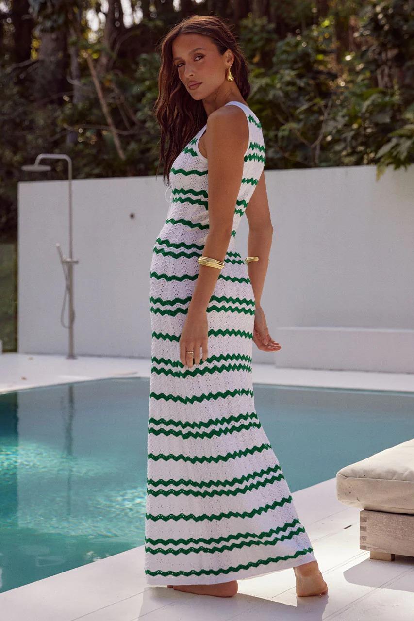 Comercio Exterior Transfronterizo Moda y Cómodo Europeo y Americano Nuevo Falda Larga de Punto a Rayas Sexy Vestido Chaleco Hueco