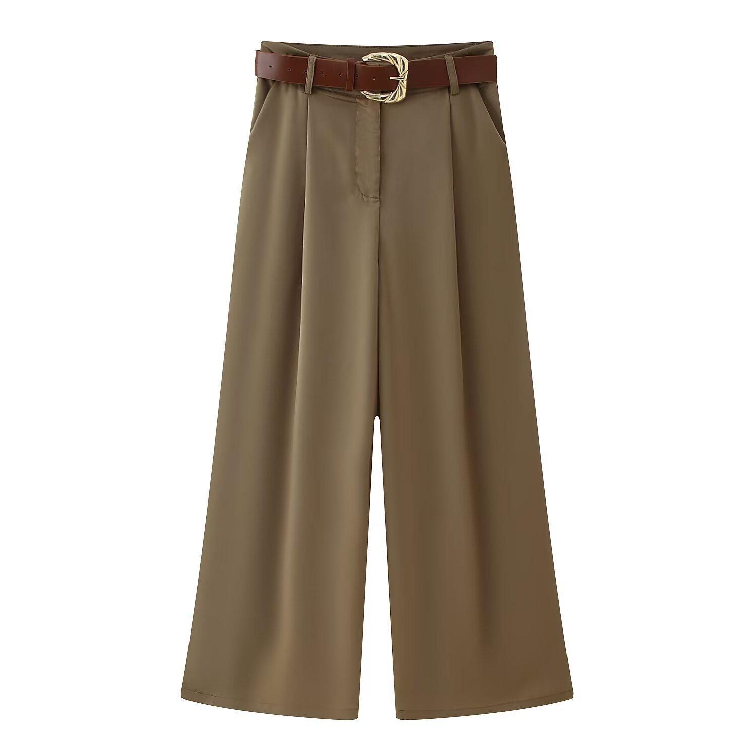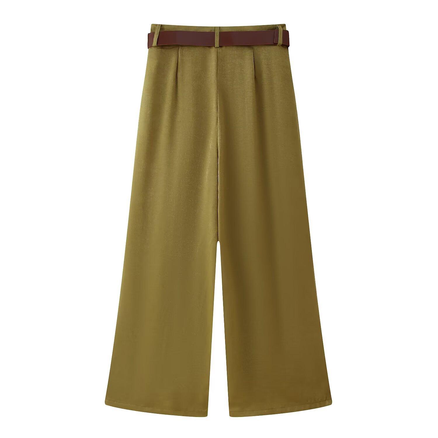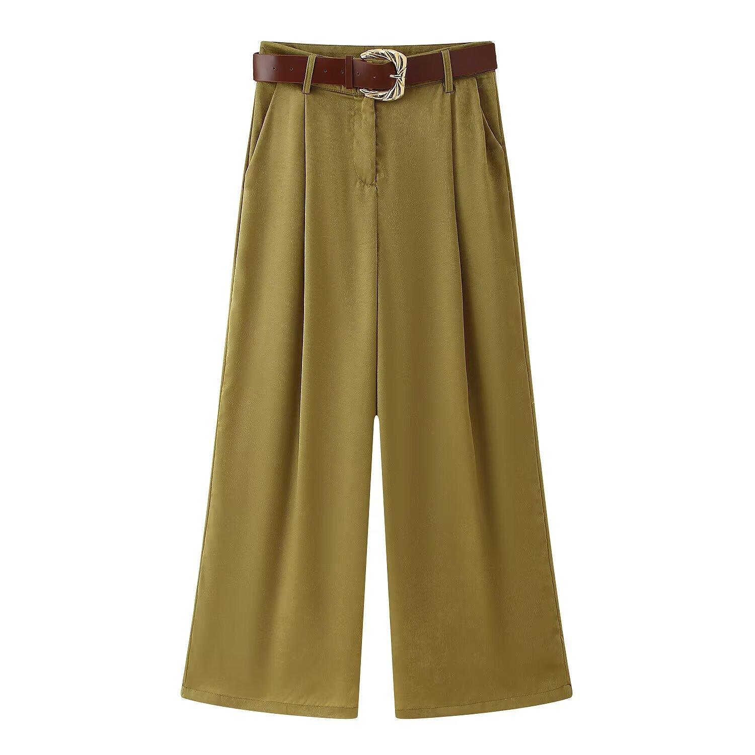 Z Transfronterizo 2025 Verano Nuevo Estilo Europeo y Americano Moda Elegante Versátil Cinturón Satén de Seda Casual Pantalones Rectos