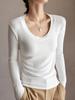 Camiseta modal de otoño e invierno de manga larga con cuello redondo grande para mujer, ropa interior, hombro recto adelgazante, diseño popular, top blanco para exterior