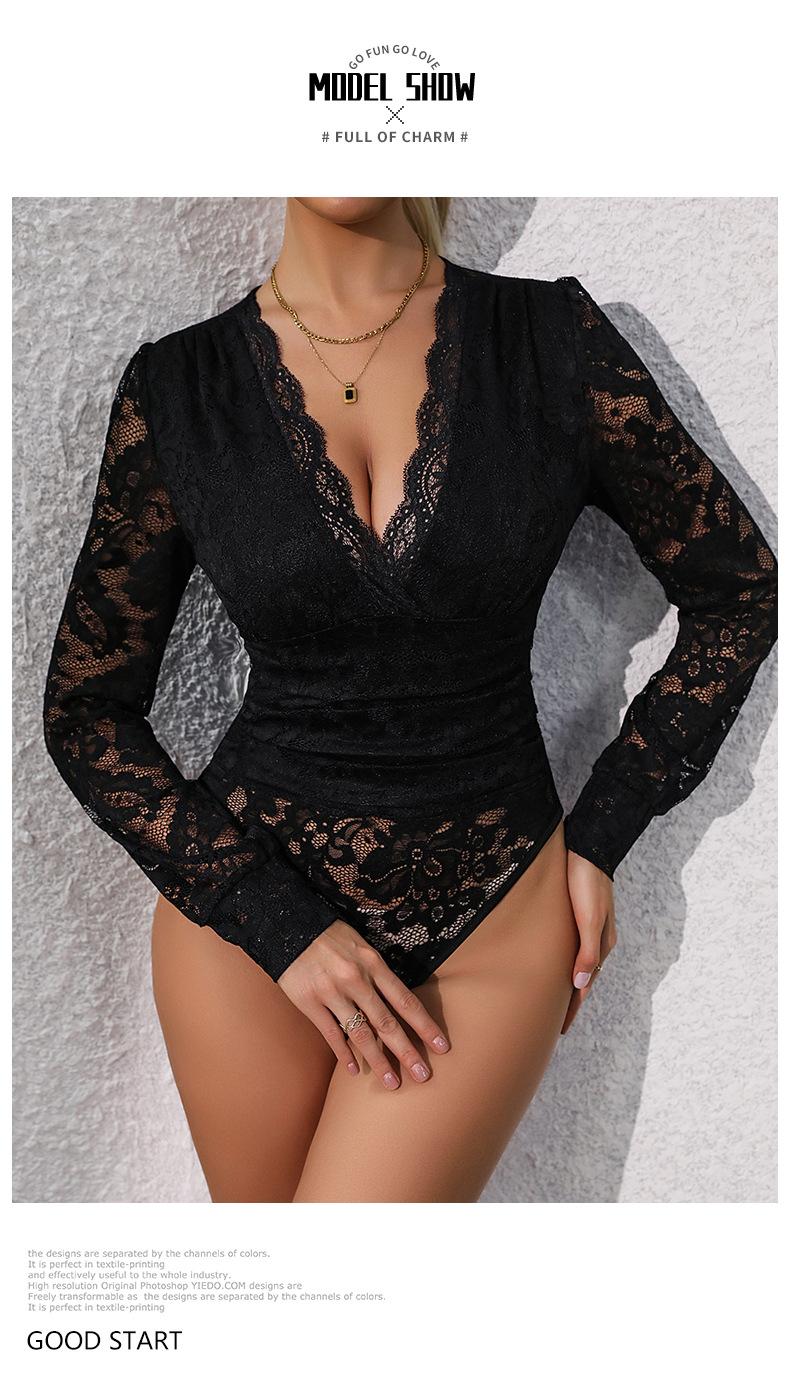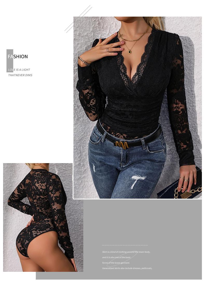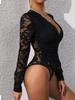 Mono Estilo Temperamento con Encaje Patchwork Primavera/Verano 2024 temu Amazon Bestseller Cuello en V Color Sólido Una Pieza
