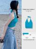 Camisola de Punto Dulce Chica Caliente Dopamina con Cuello Halter para Mujer, Ropa Exterior de Verano de Alta Gama, Top Corto sin Mangas y sin Espalda