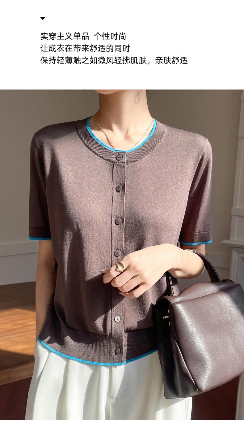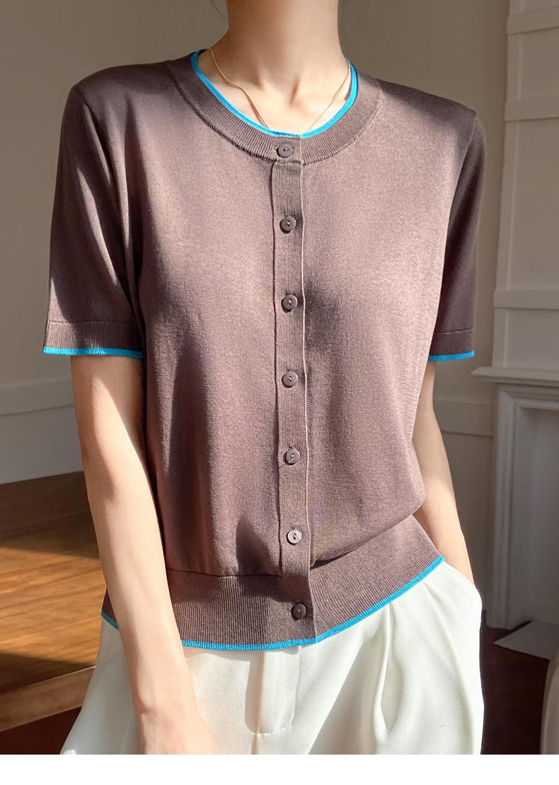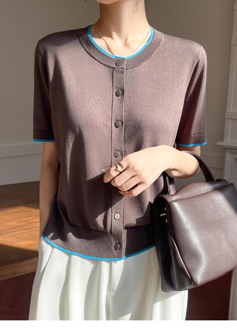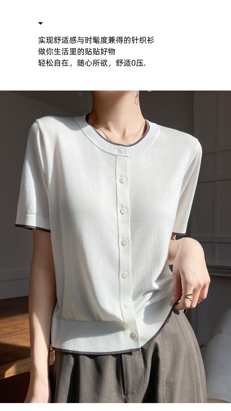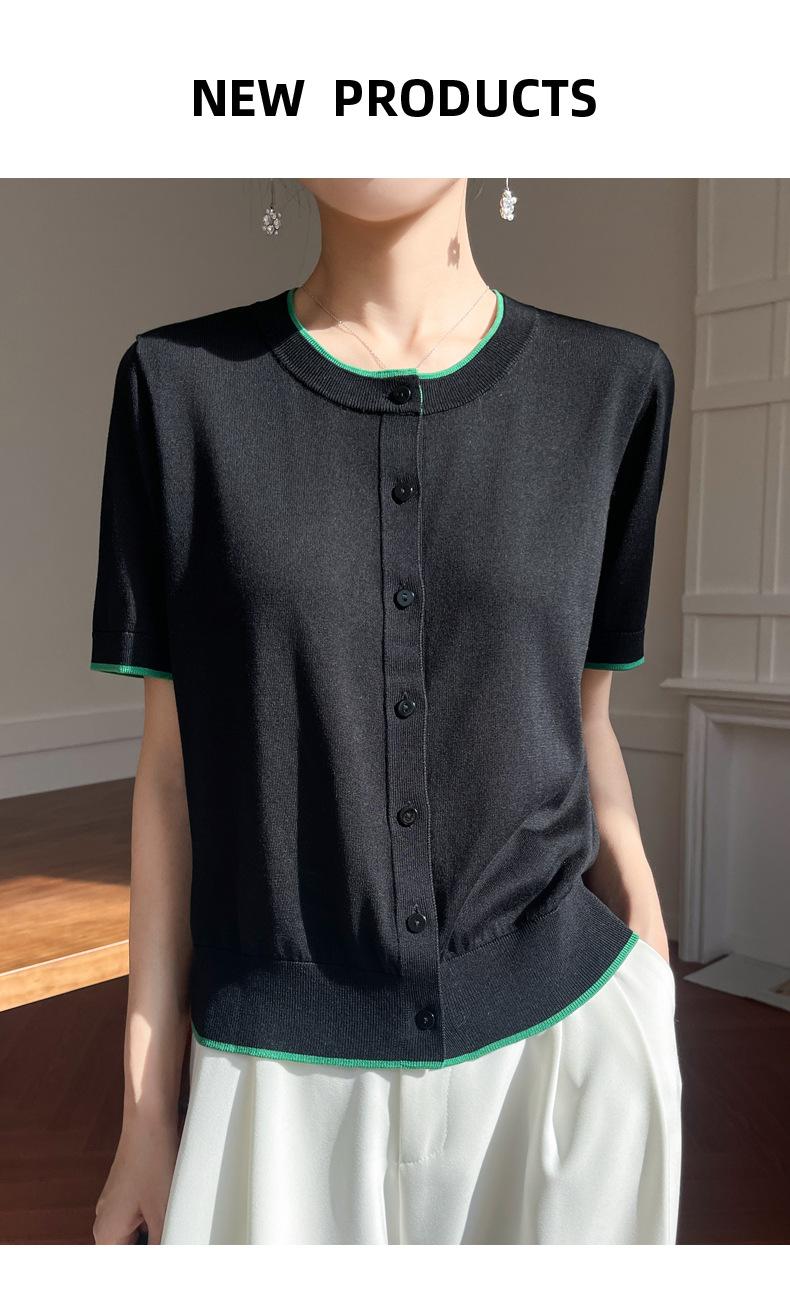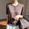 Cárdigan de punto de manga corta con cuello redondo de Tencel Lyocell nuevo para primavera y verano 2025, holgado, con bloques de color y diseño de falsa pieza doble para mujer
