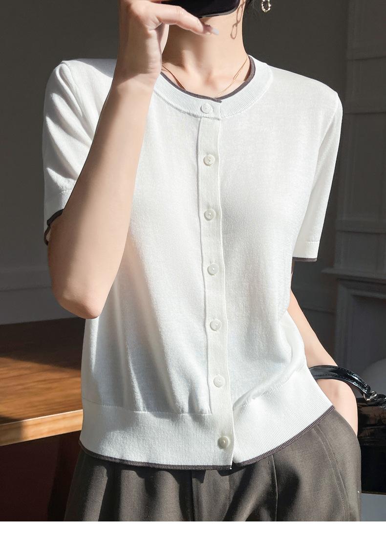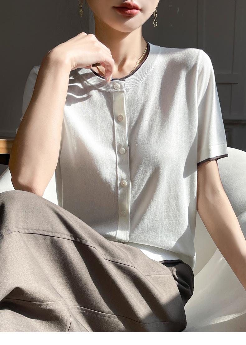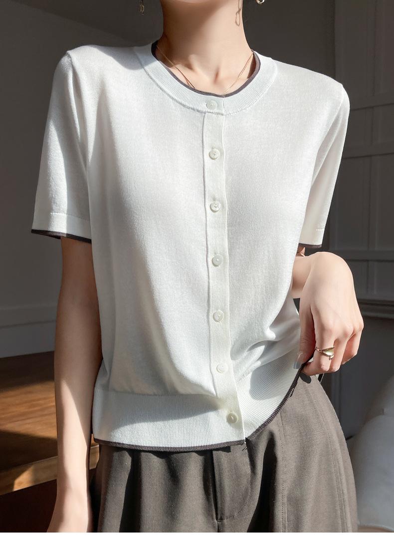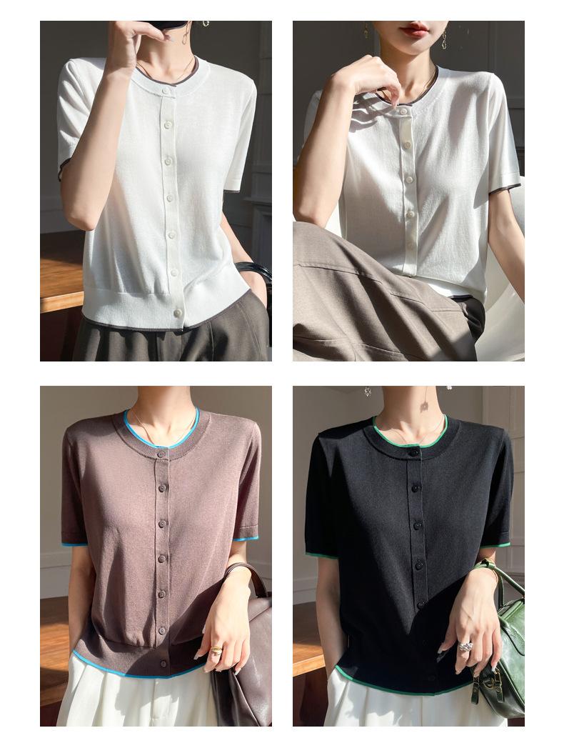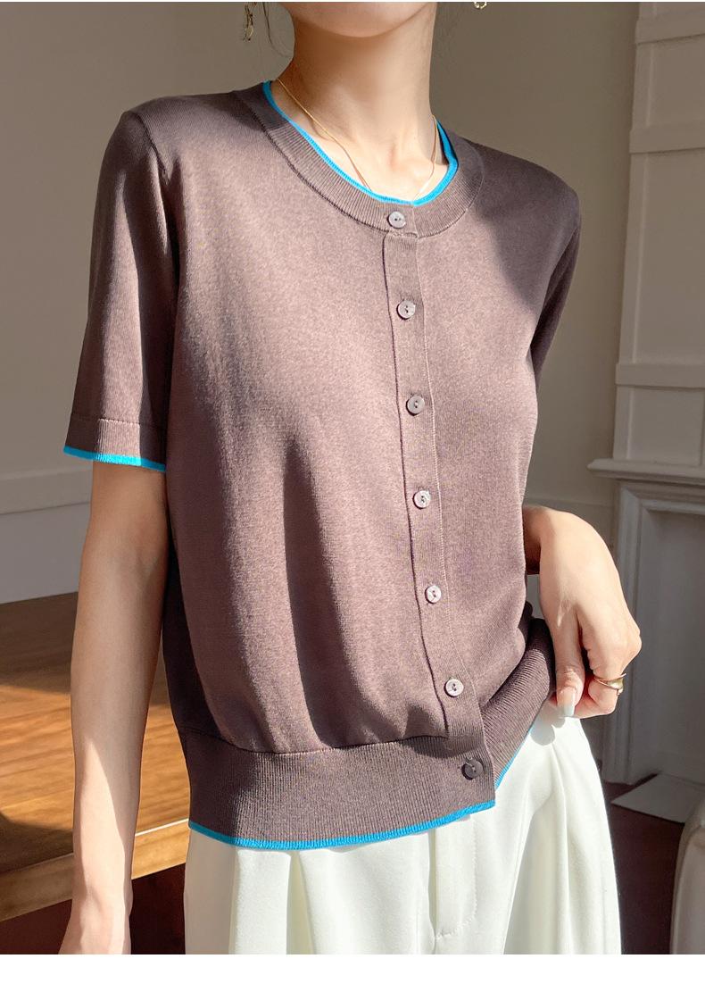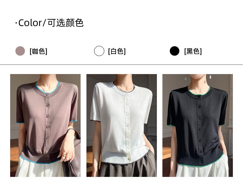 Cárdigan de punto de manga corta con cuello redondo de Tencel Lyocell nuevo para primavera y verano 2025, holgado, con bloques de color y diseño de falsa pieza doble para mujer