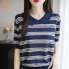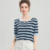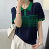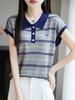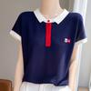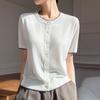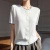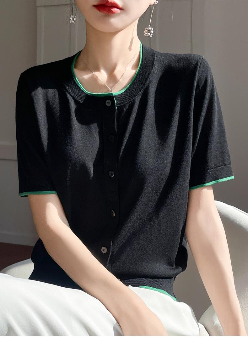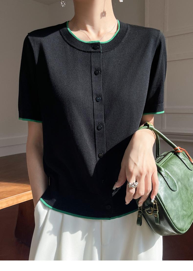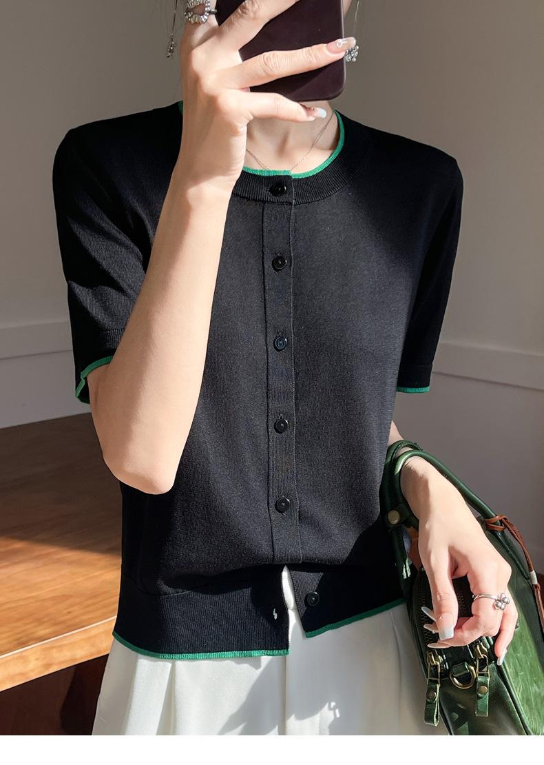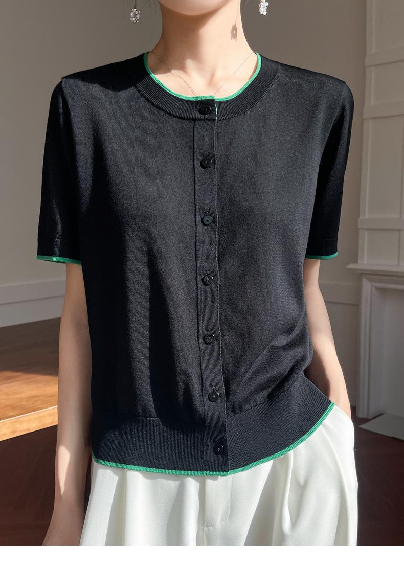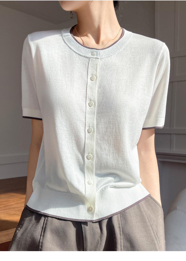 Cárdigan de punto de manga corta con cuello redondo de Tencel Lyocell nuevo para primavera y verano 2025, holgado, con bloques de color y diseño de falsa pieza doble para mujer
