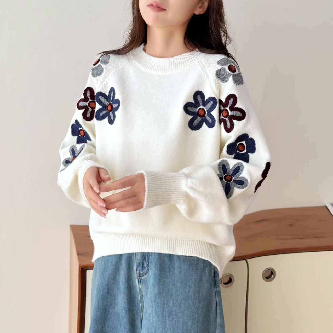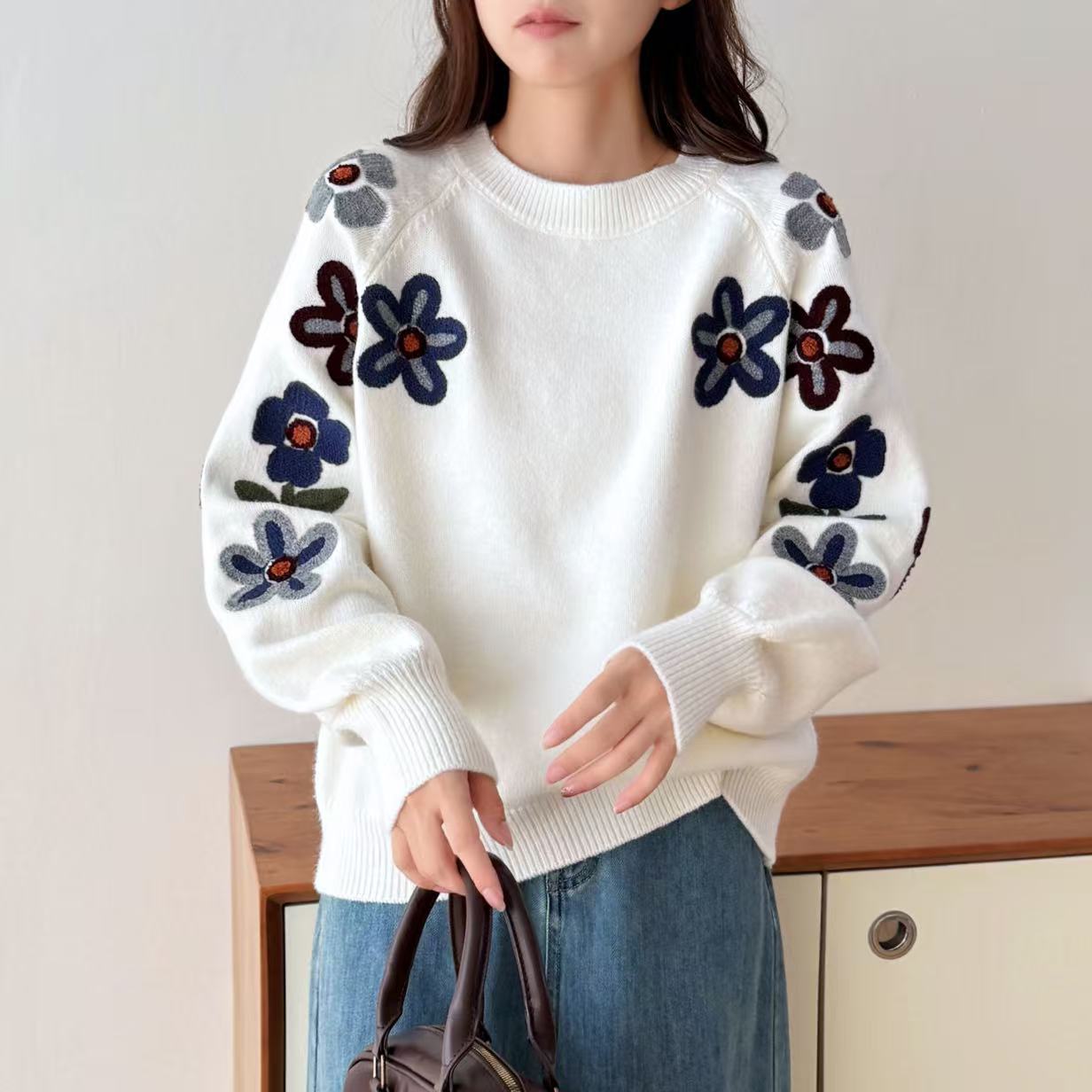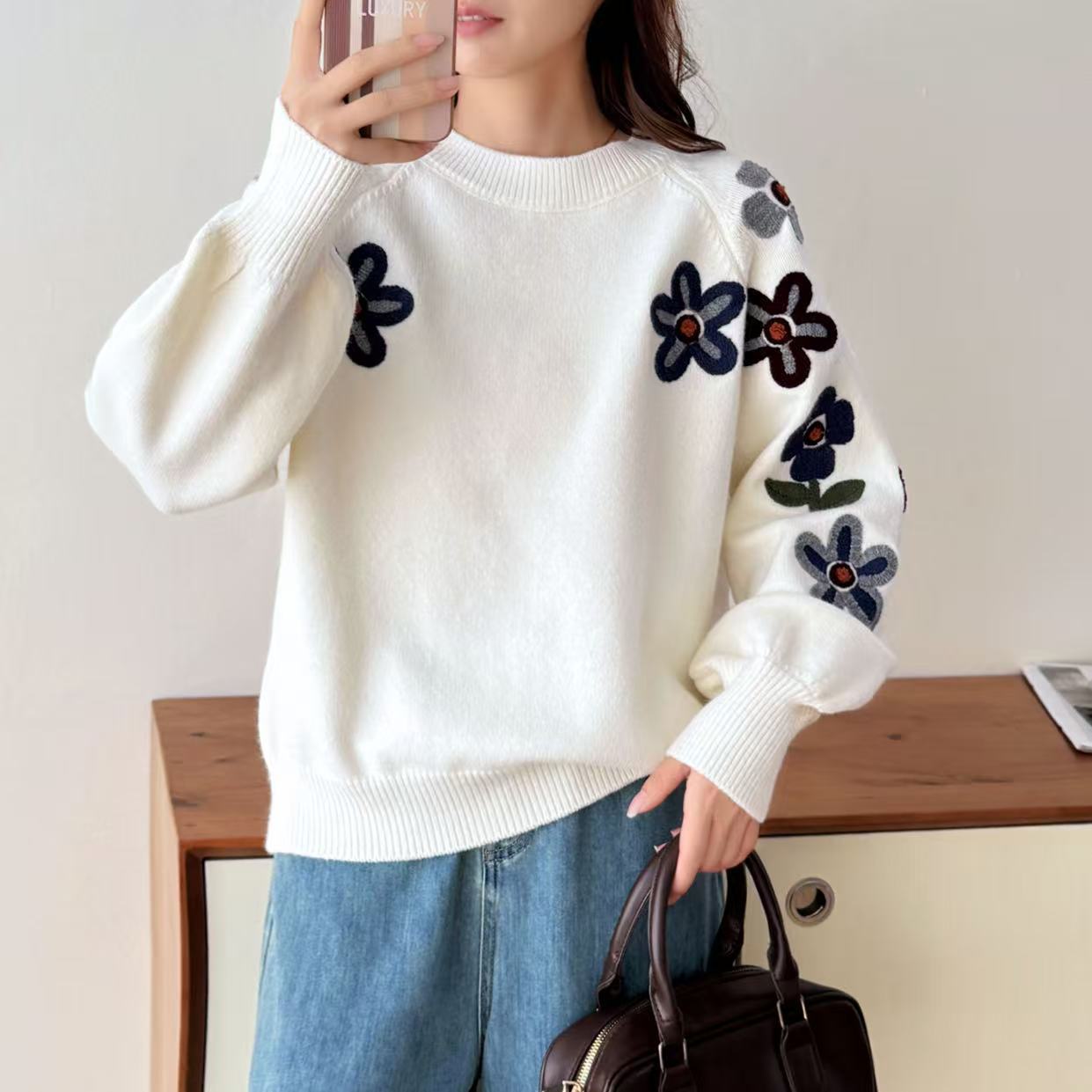 Suéter de Otoño e Invierno 2025 de Nuevo Estilo a la Moda con Bordado Pesado de Alta Calidad para Mujer Más Fácil de Combinar Reductor de Edad y Adelgazante Suéter Estilo Coreano