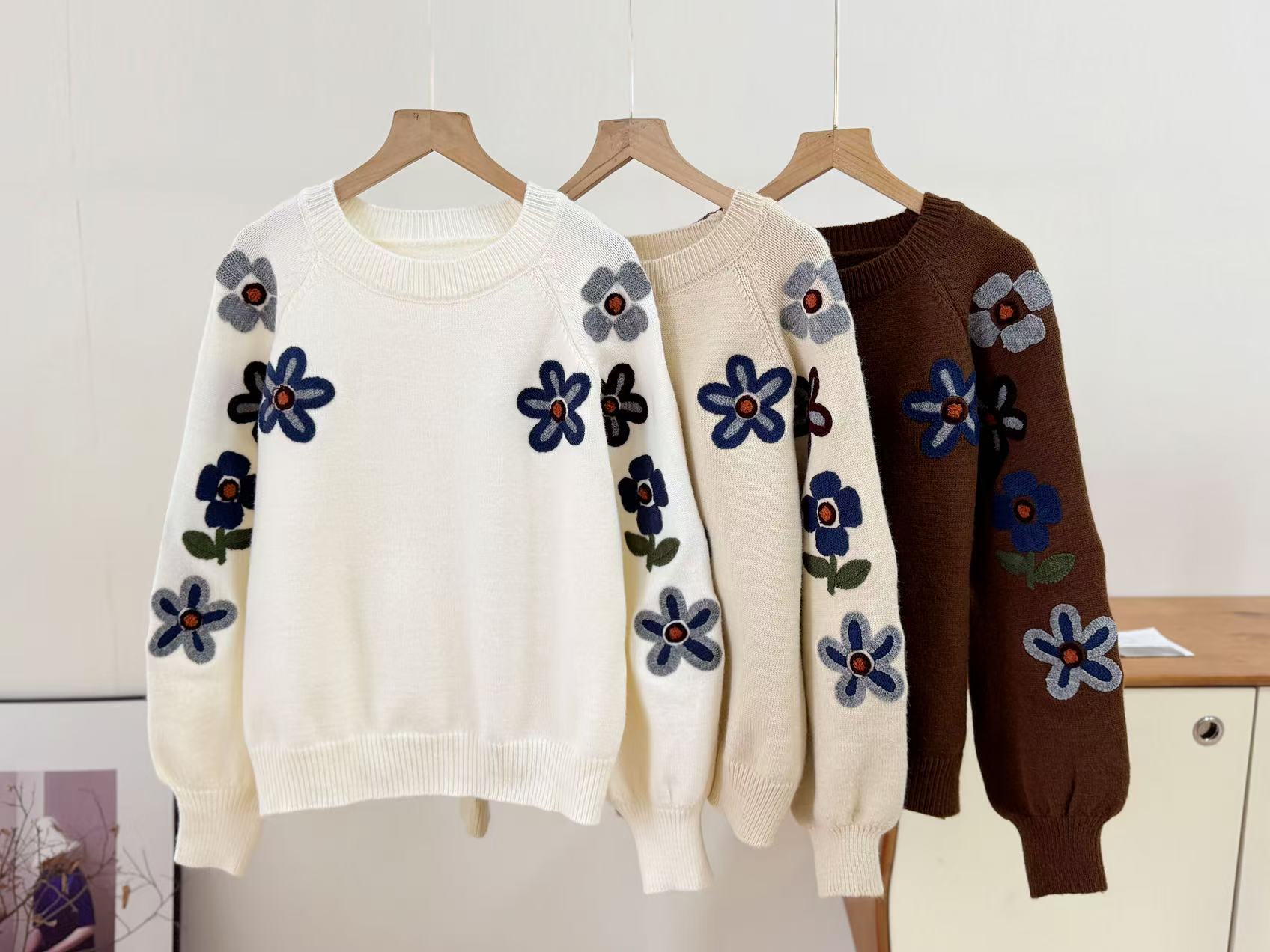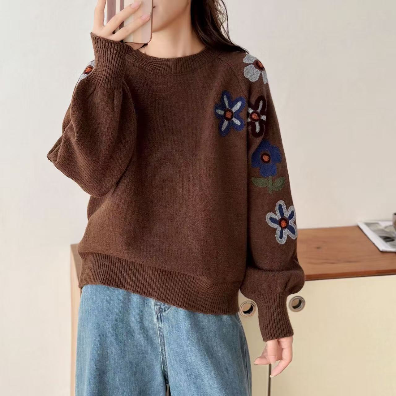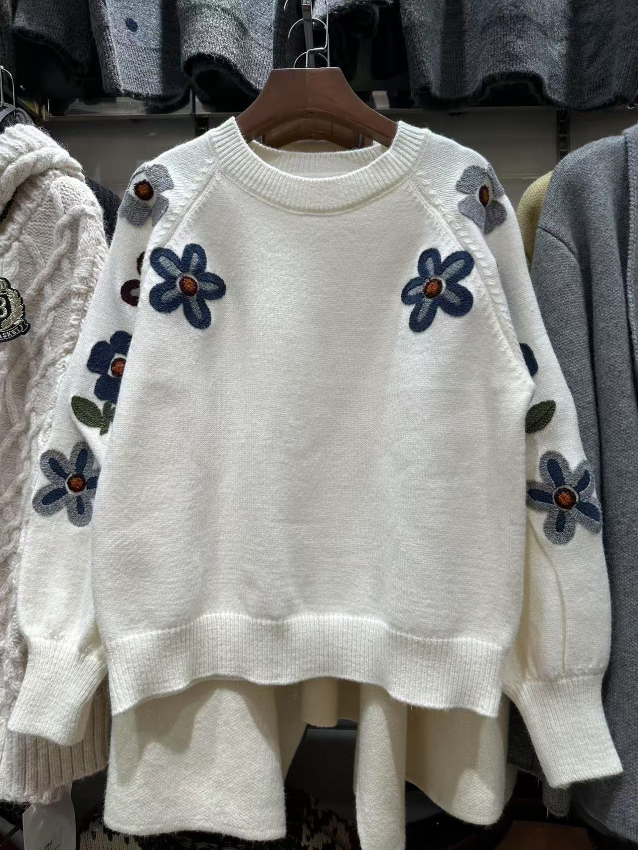 Suéter de Otoño e Invierno 2025 de Nuevo Estilo a la Moda con Bordado Pesado de Alta Calidad para Mujer Más Fácil de Combinar Reductor de Edad y Adelgazante Suéter Estilo Coreano