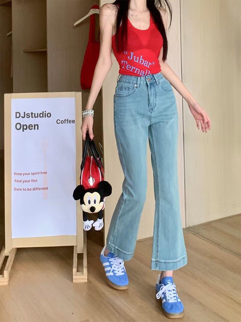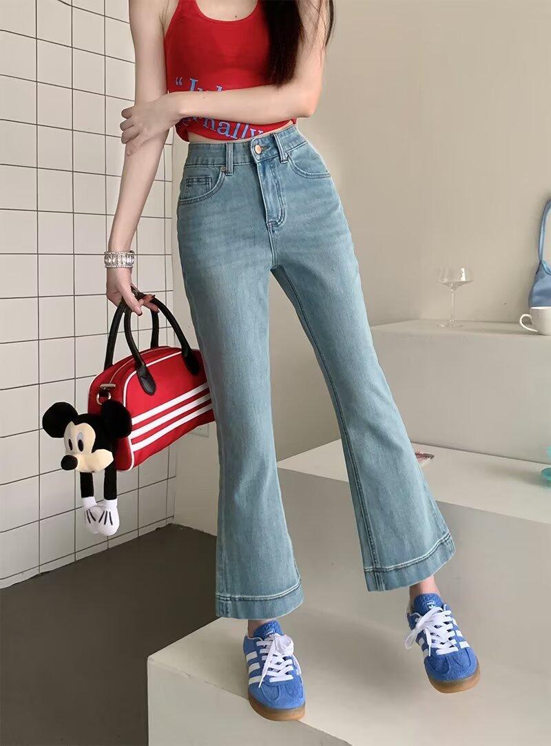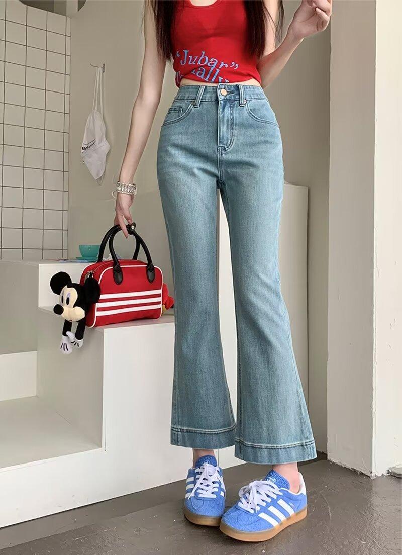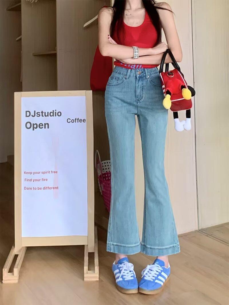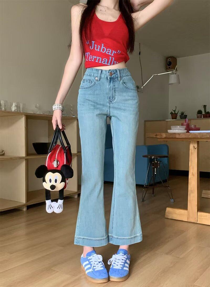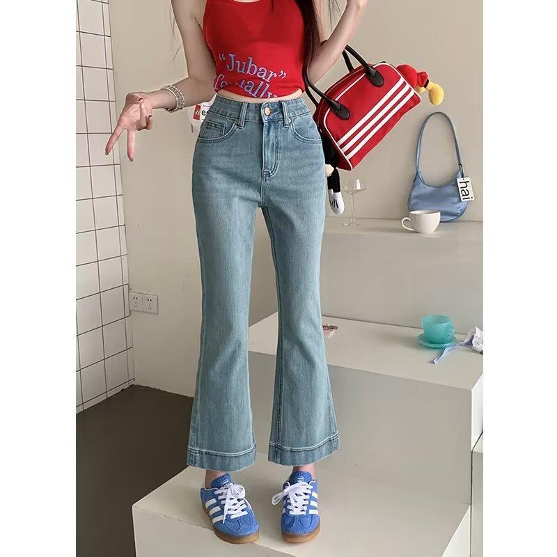Jeans Micro-La de Cintura Alta para Mujer Verano 2025 Delgados Figura de Pera Talla Grande Adelgazantes Recortados Acampanados