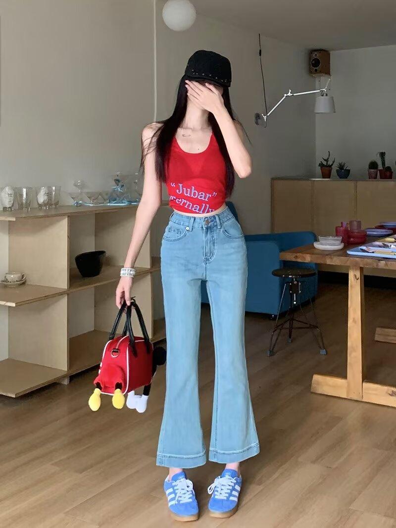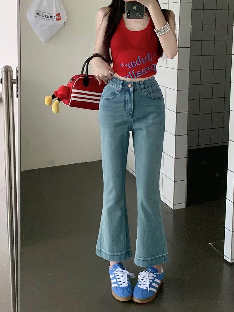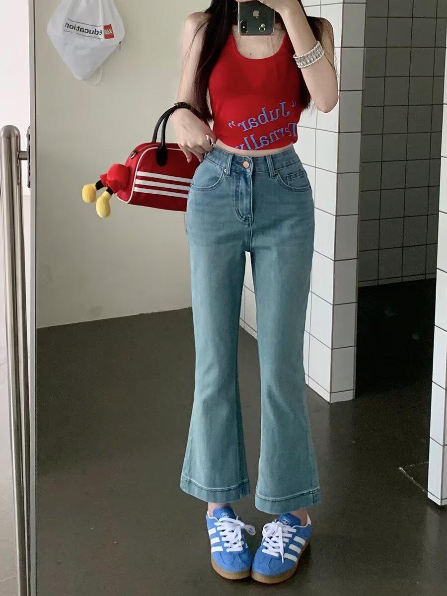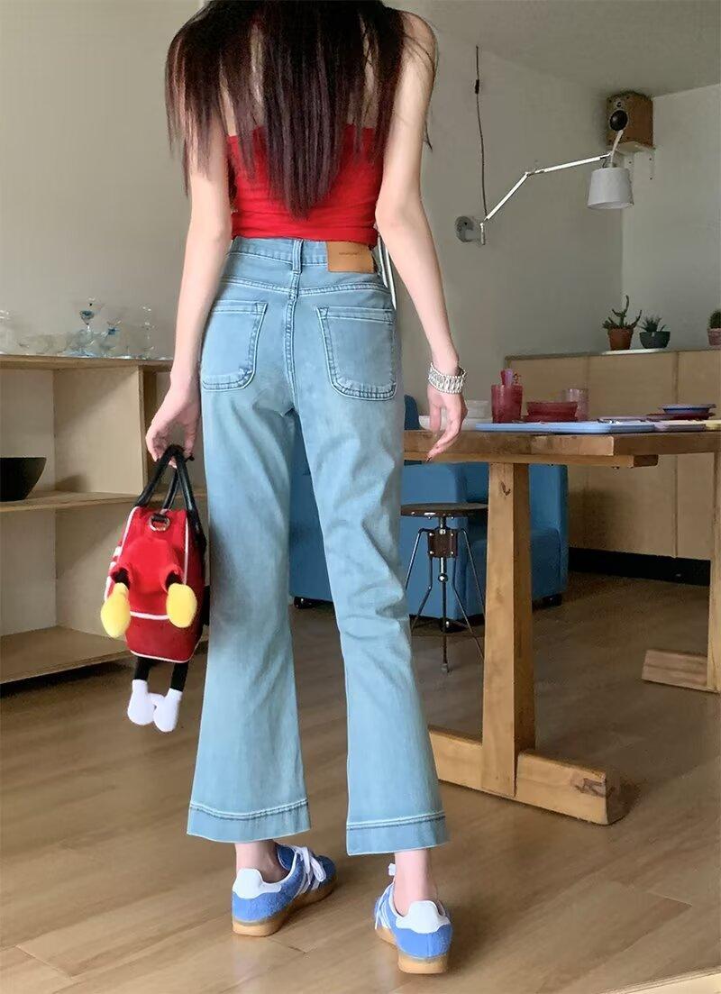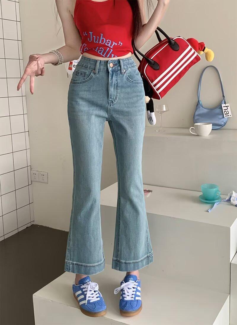 Jeans Micro-La de Cintura Alta para Mujer Verano 2025 Delgados Figura de Pera Talla Grande Adelgazantes Recortados Acampanados