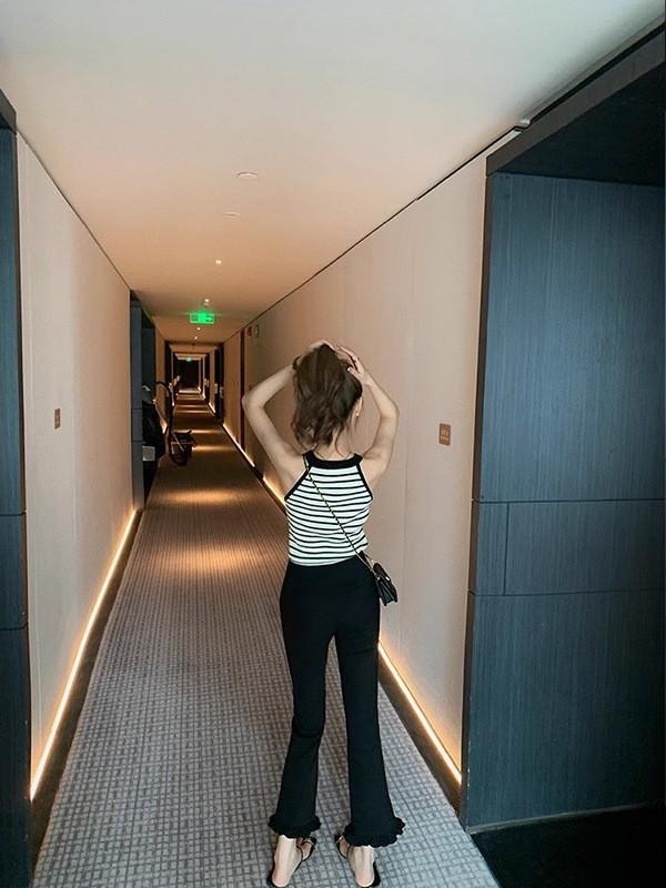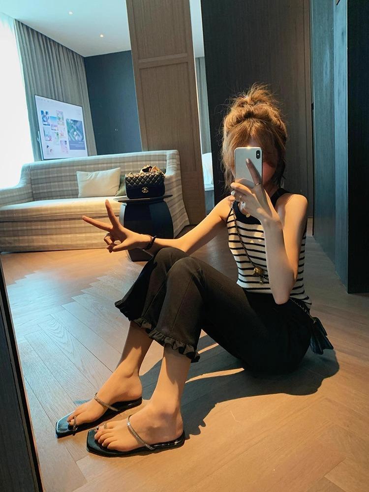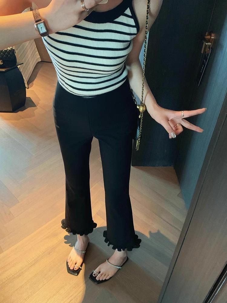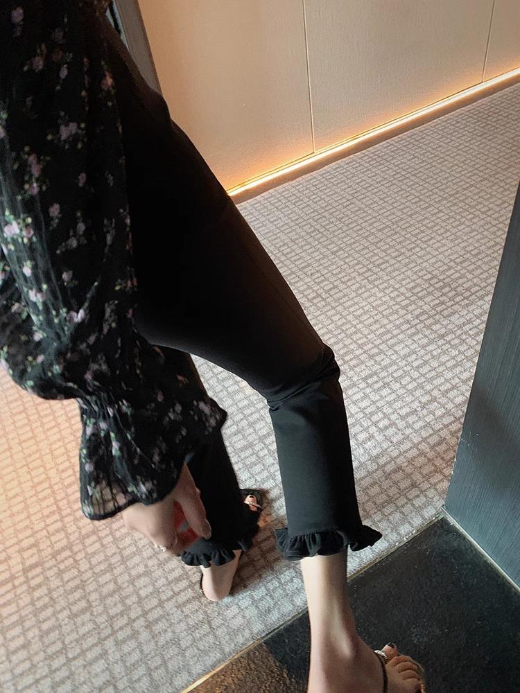¡Delgado y Elegante! Pantalones Acampanados Cortos con Volantes Modernos y Cómodos 2025 Nuevos Pantalones Negros Elásticos Casuales Adelgazantes para Mujer