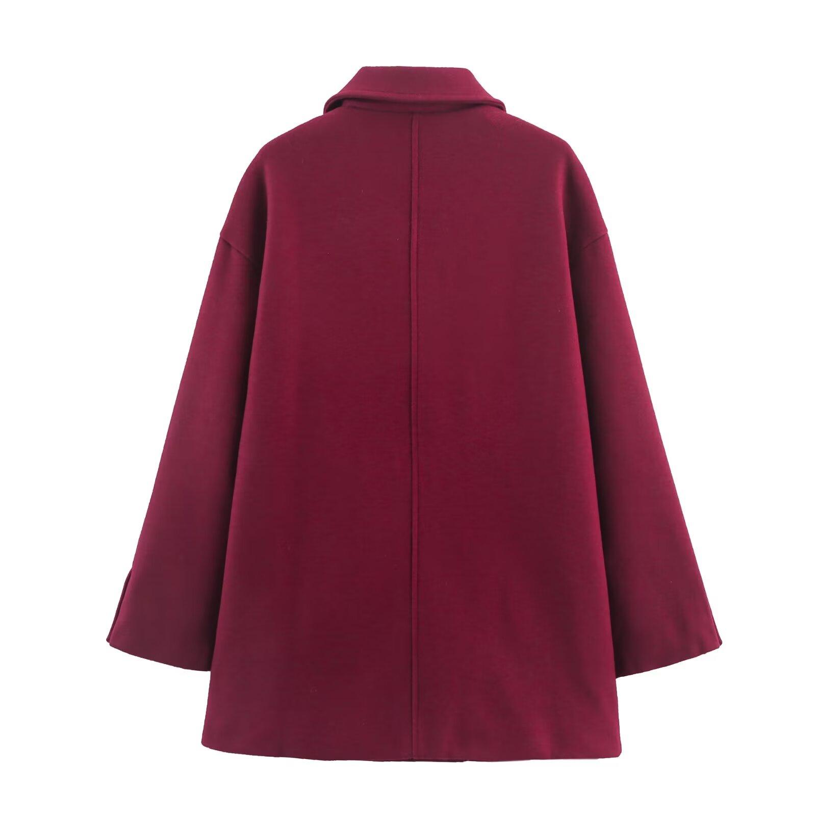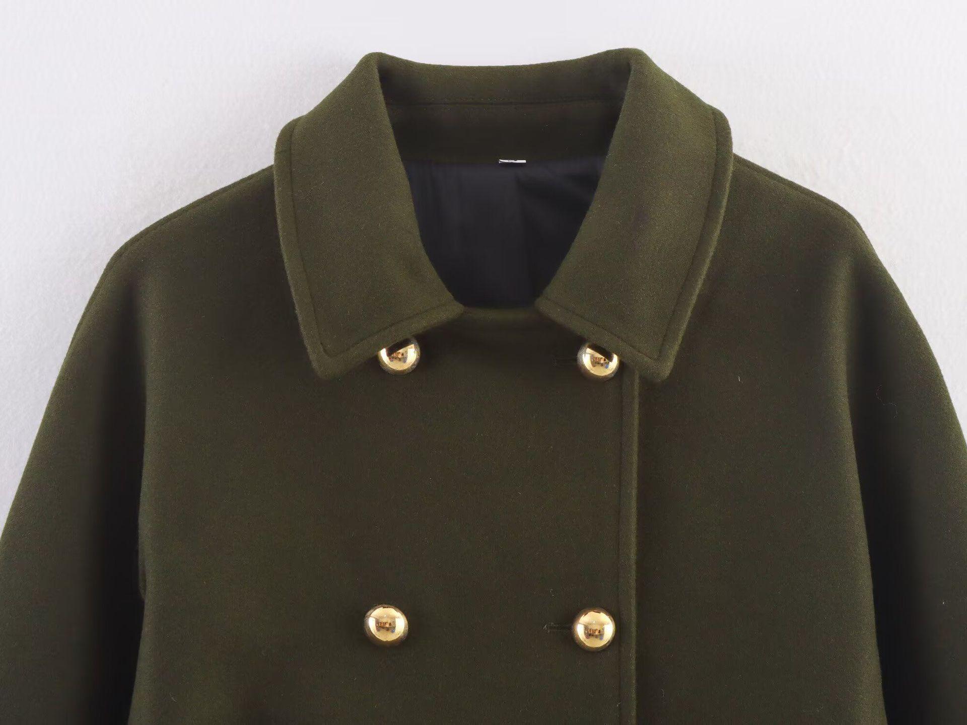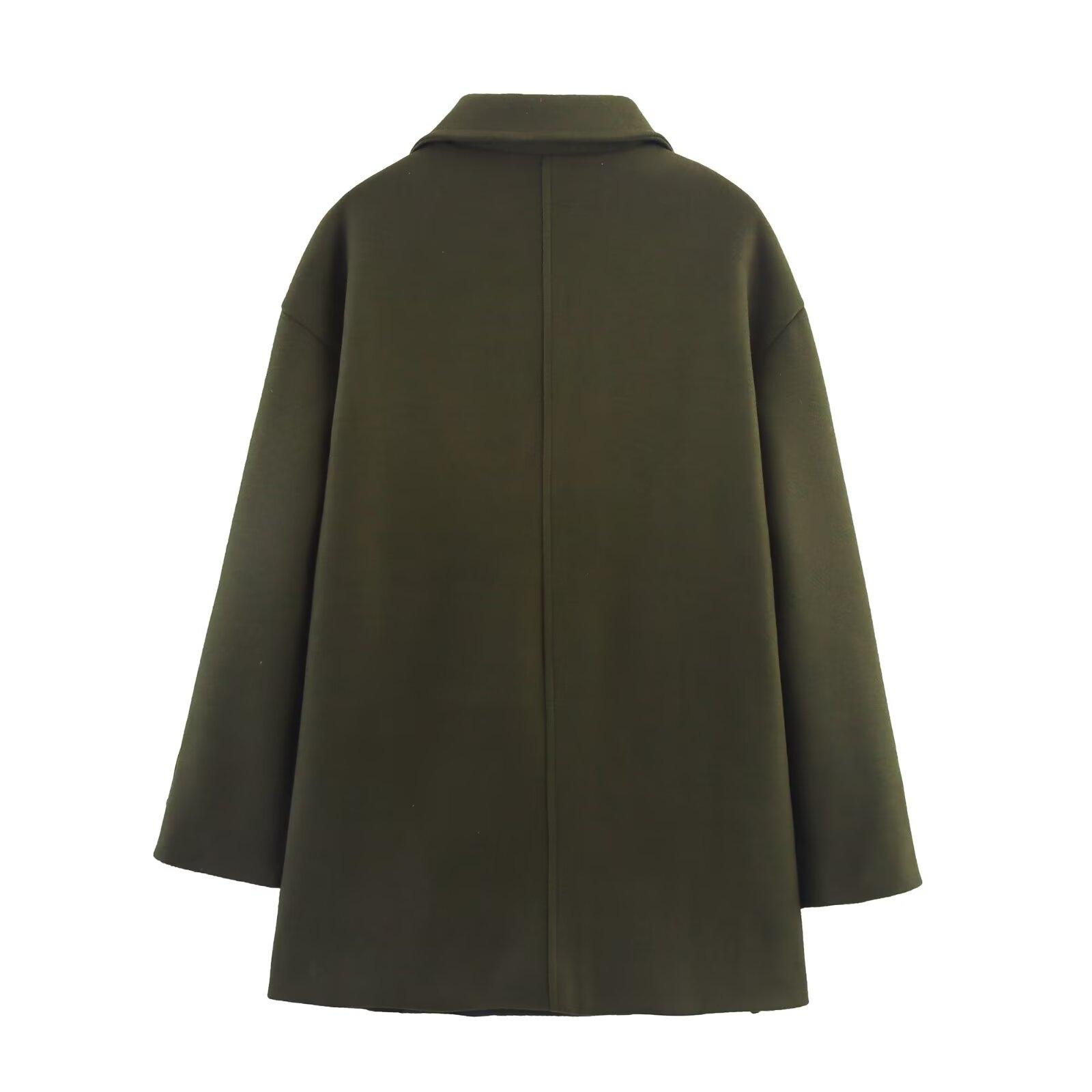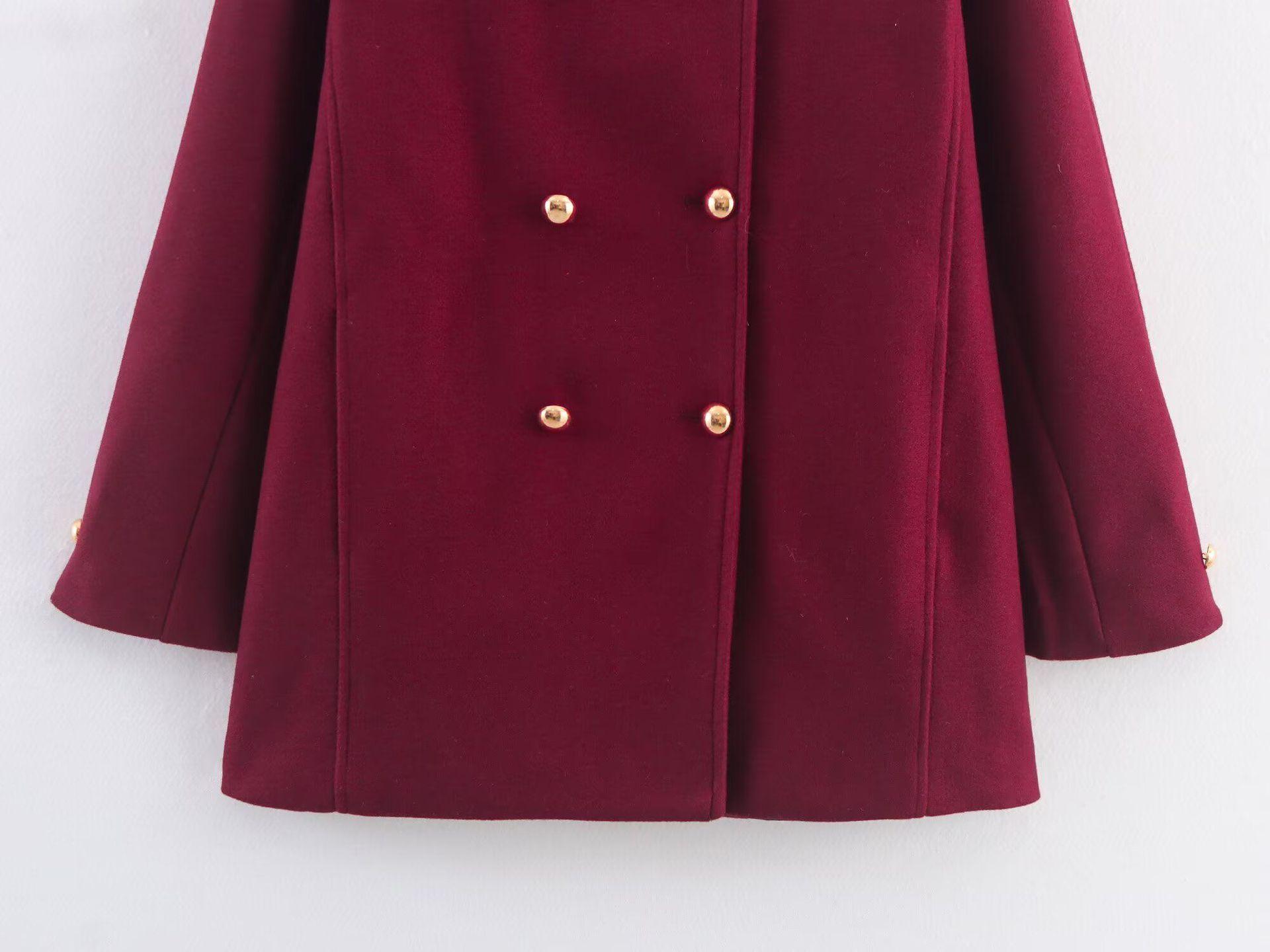 Ropa de mujer de comercio exterior transfronterizo de Amazon 2025 invierno nueva moda abrigo de solapa cálido engrosado de doble botonadura bicolor