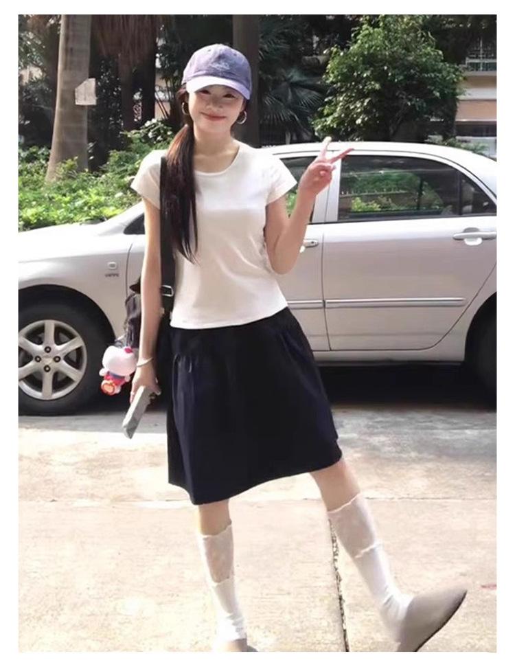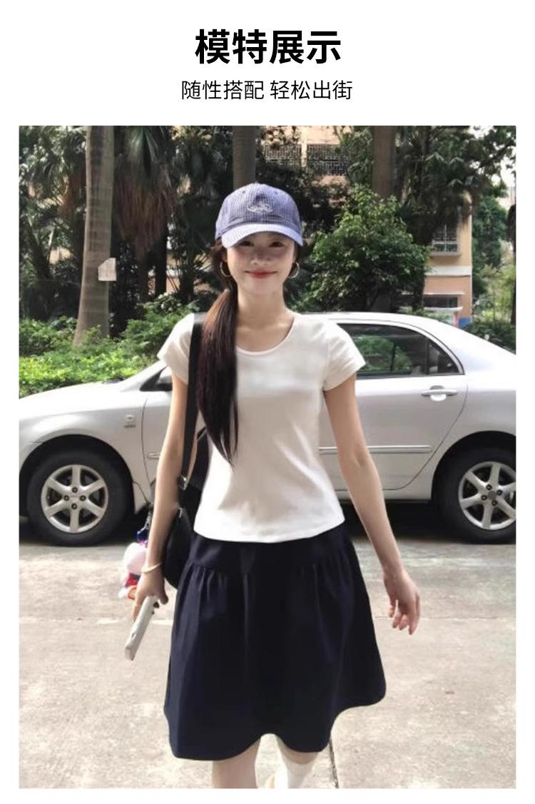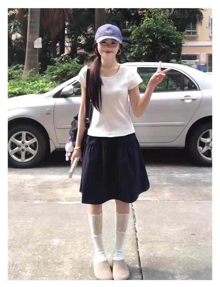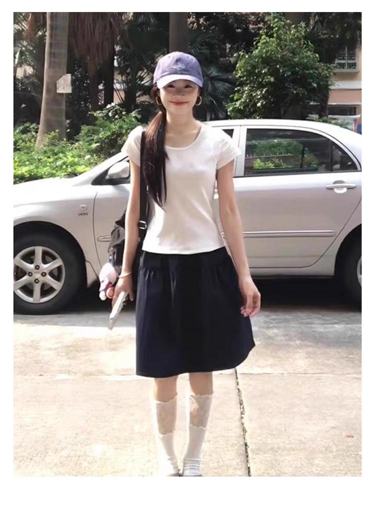 Falda Corta Azul Marino Transfronteriza Miu Línea A para Mujer Verano Estilo Universitario 2025 Nuevo Popular Estilo Hot Falda Versátil