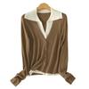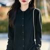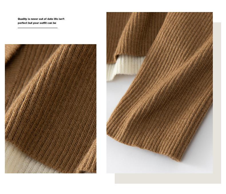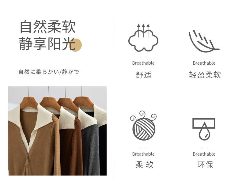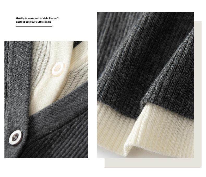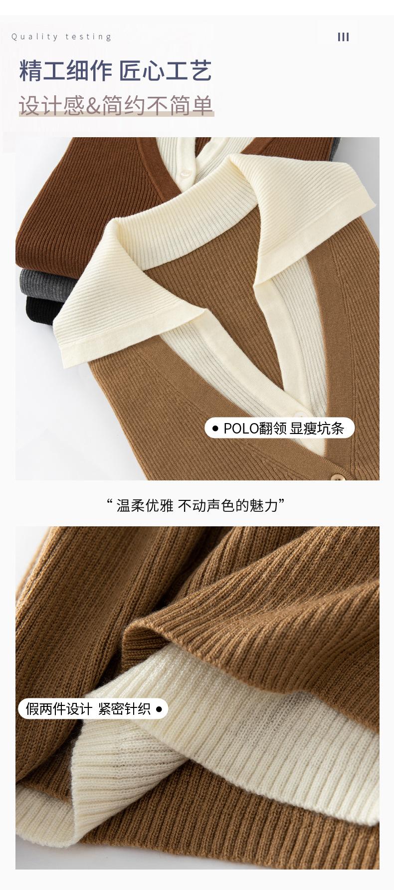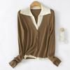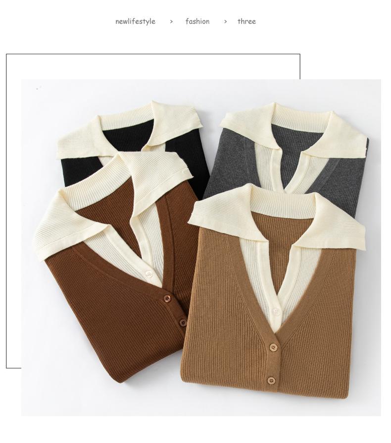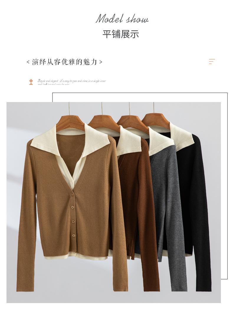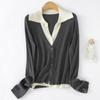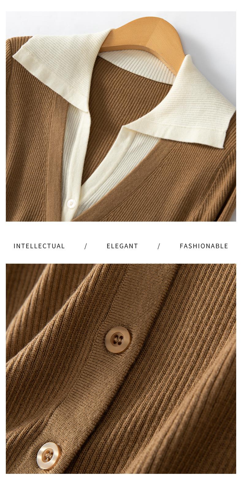 Cárdigan de punto de lana peinada nuevo de primavera y verano 2025 con solapa, manga larga, diseño con sentido del color a juego, top de mujer de dos piezas falsas
