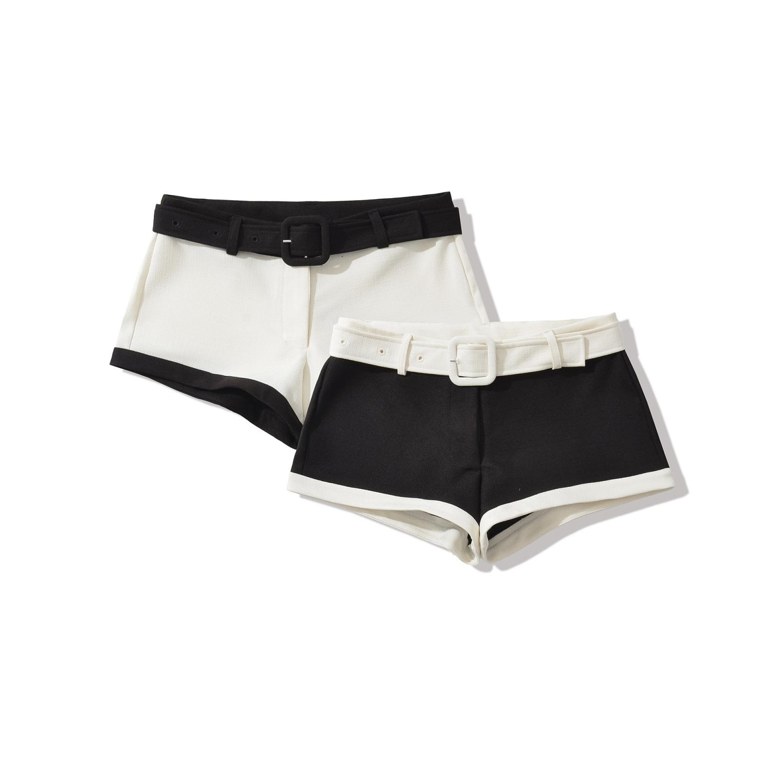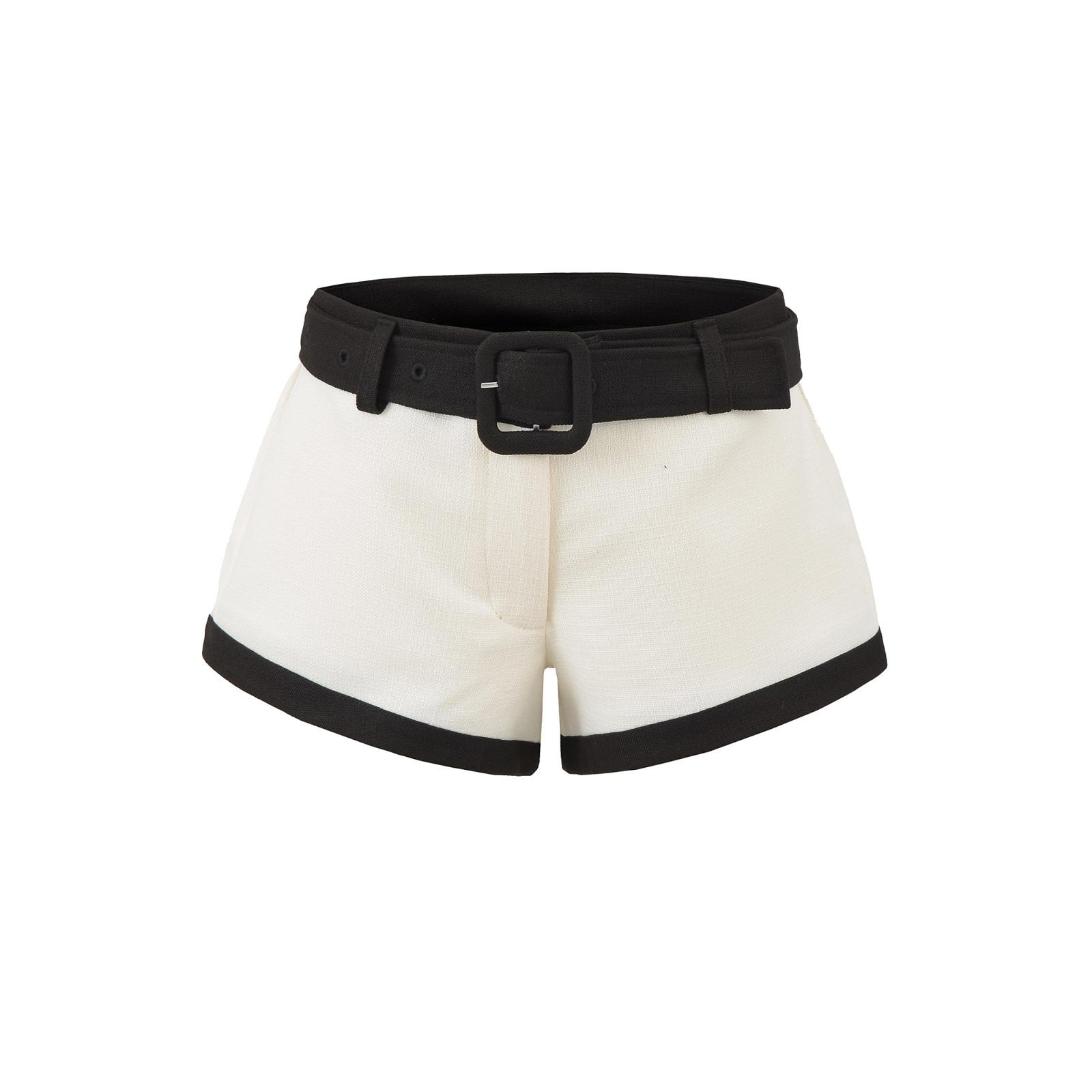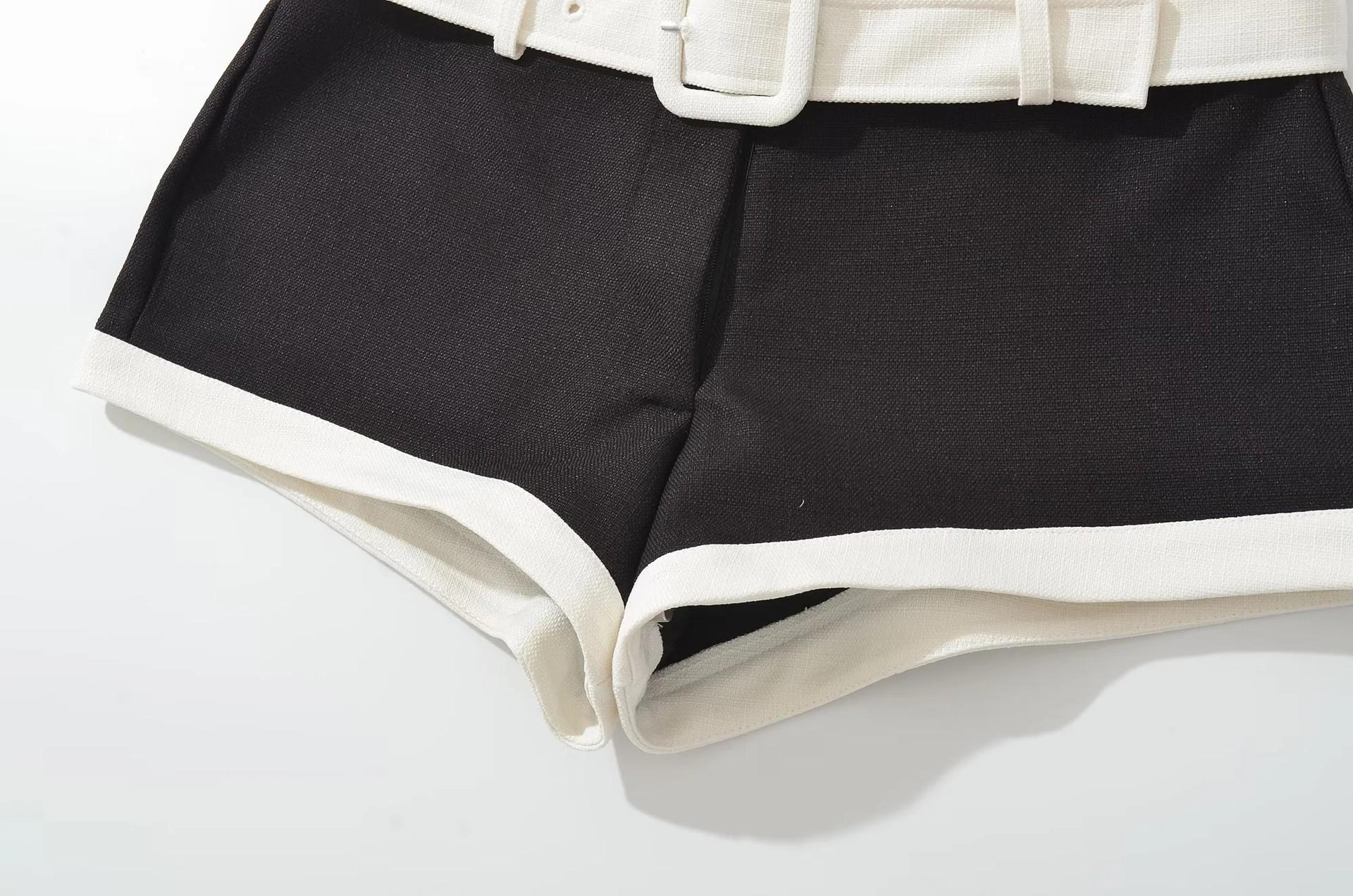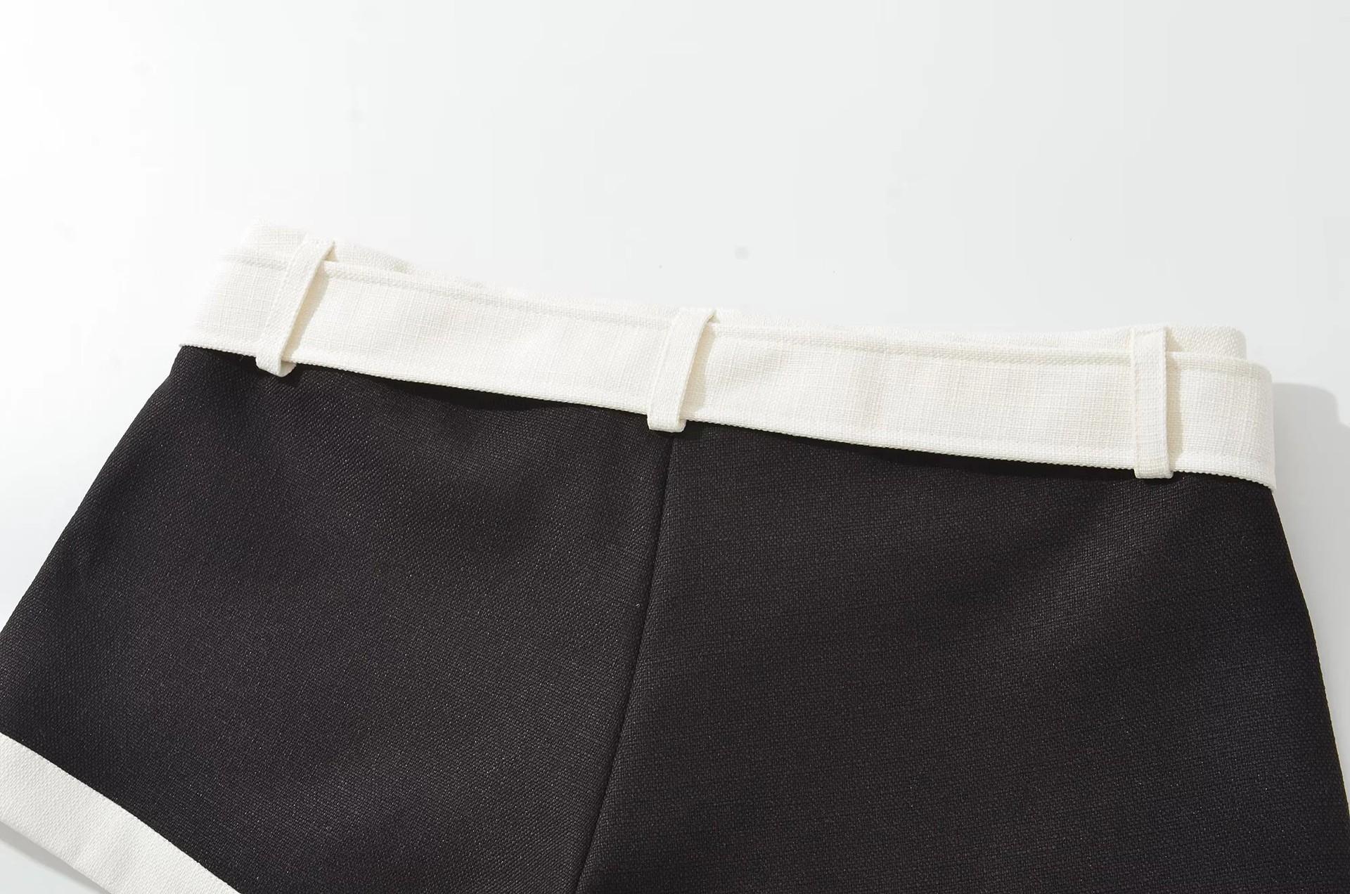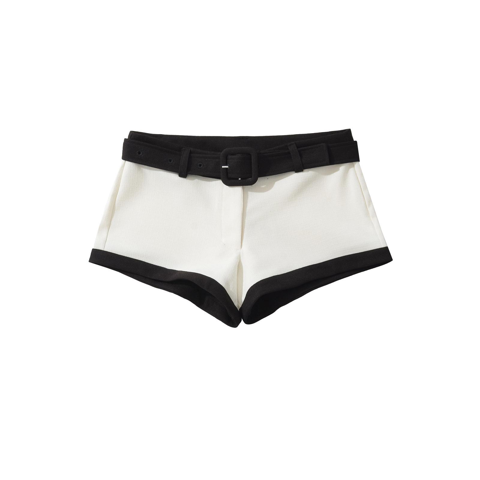Ins puro y sexy chica caliente bloque de color shorts cortos mujer 2025 verano nuevo cintura baja con cinturón pantalones calientes que abrazan la cadera