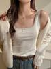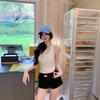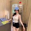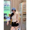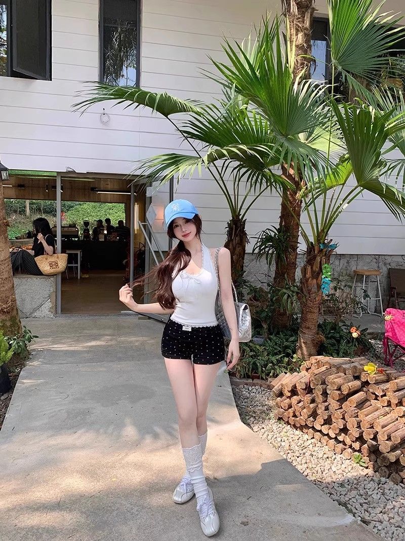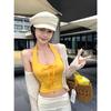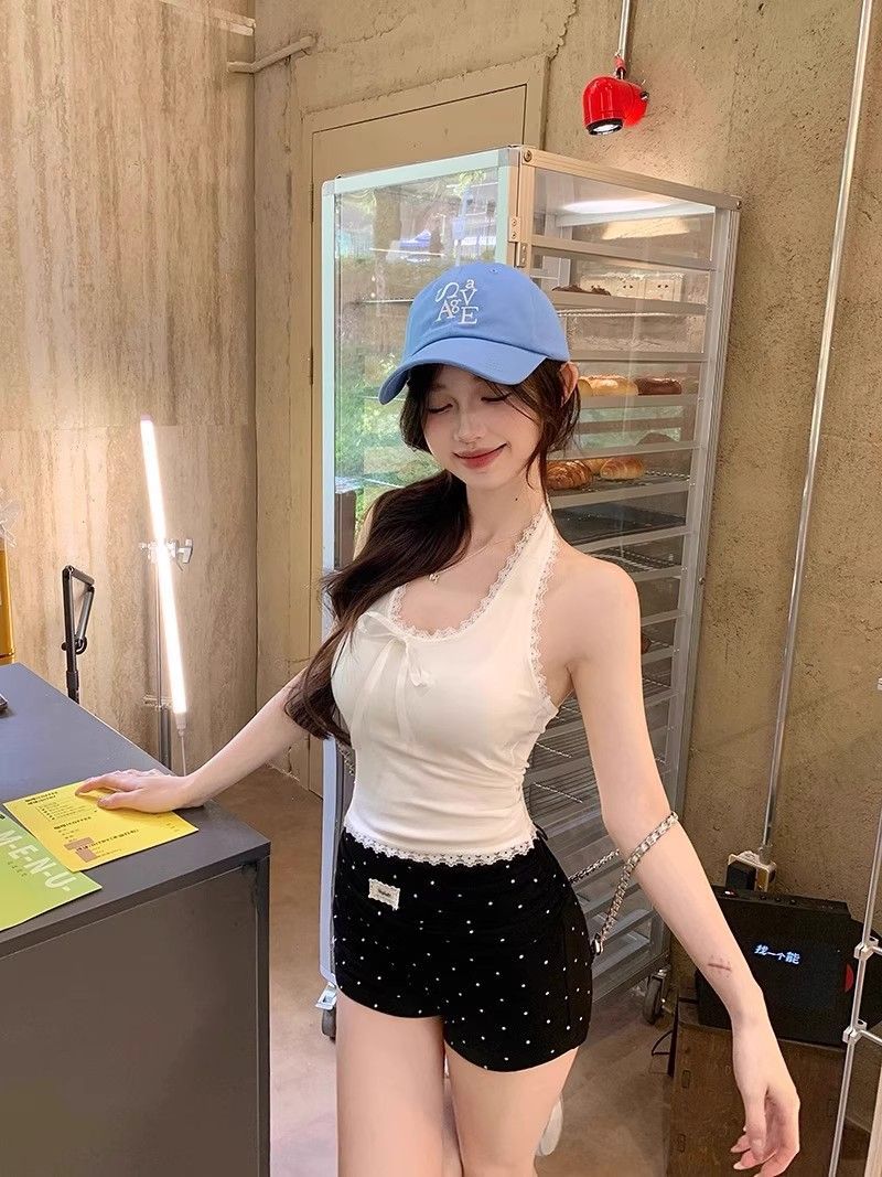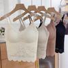 Camisola halter de encaje blanco para mujer, estilo nuevo de primavera y verano con sujetador acolchado todo en uno, top sin mangas con espalda hermosa