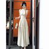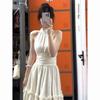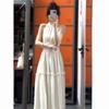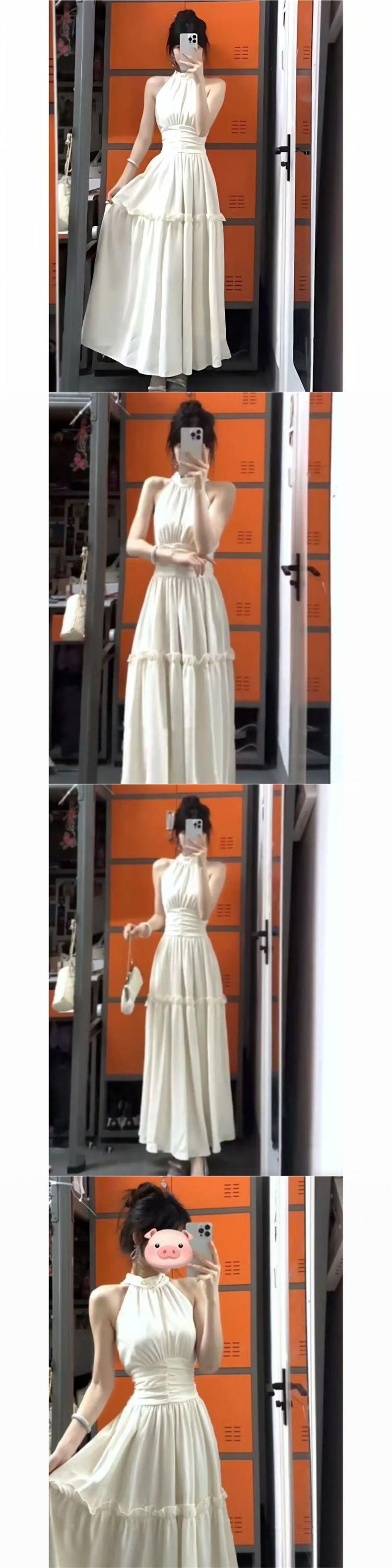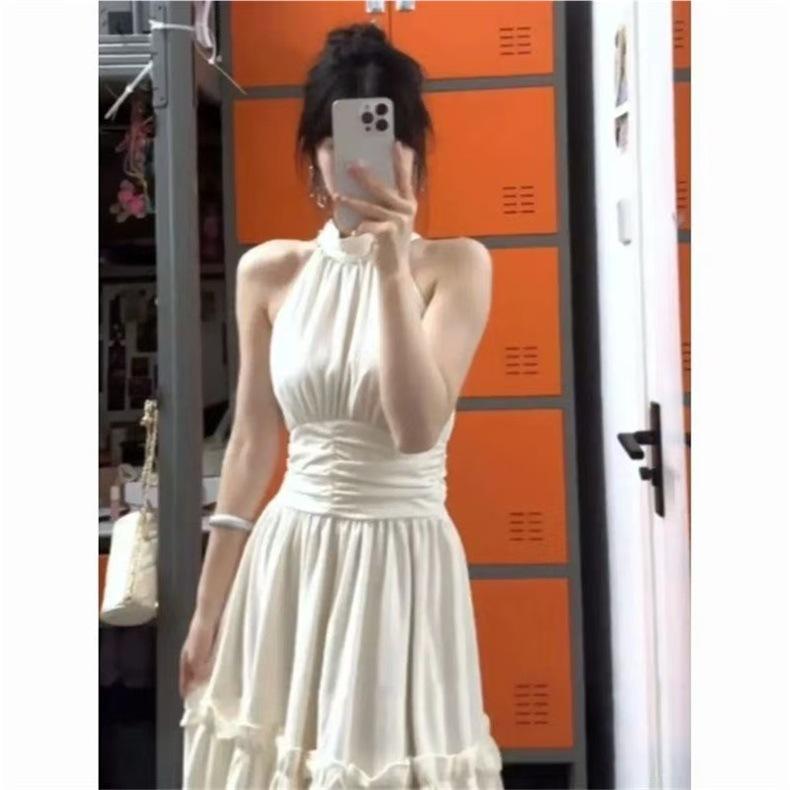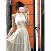 Vestido halter único y hermoso estilo Hepburn francés con temperamento ceñido a la cintura para mujer 2025 verano nuevo vestido largo blanco luz de luna