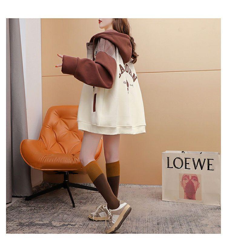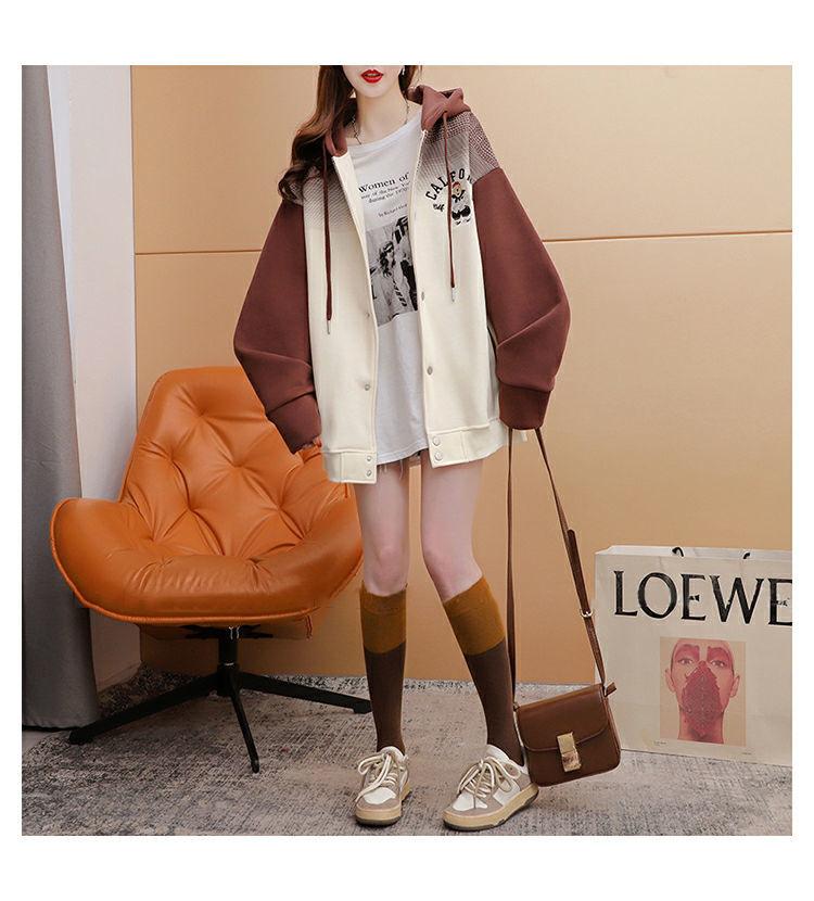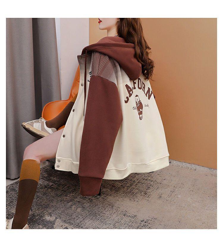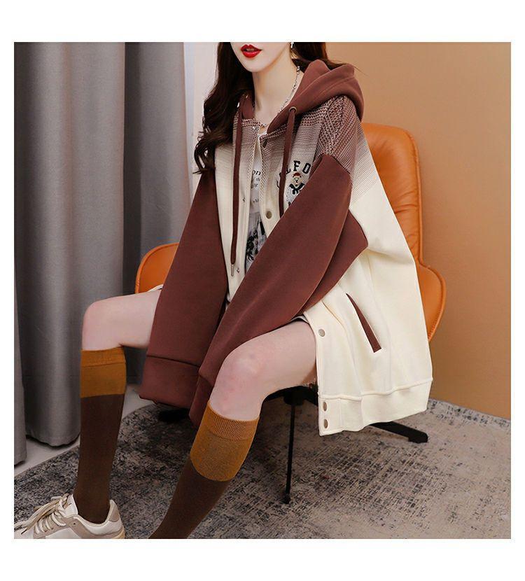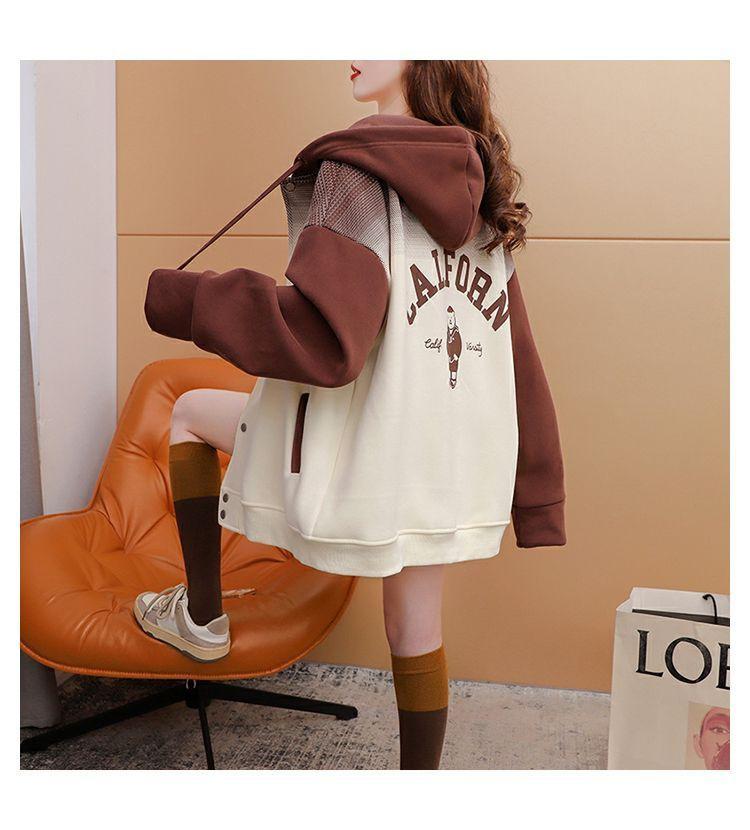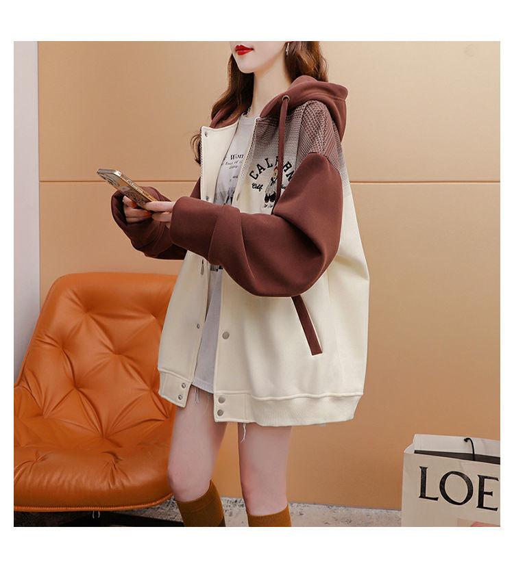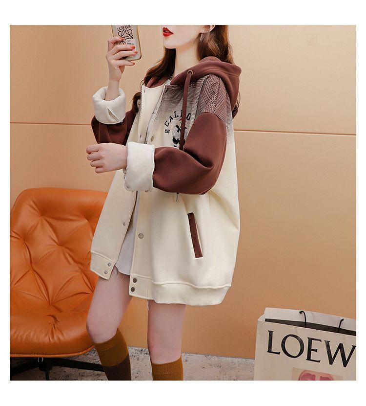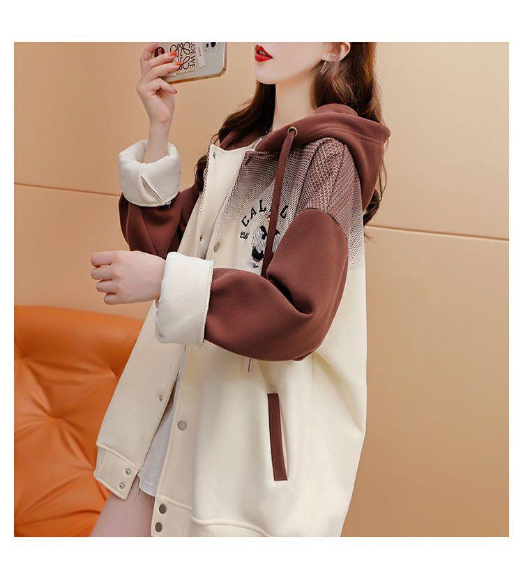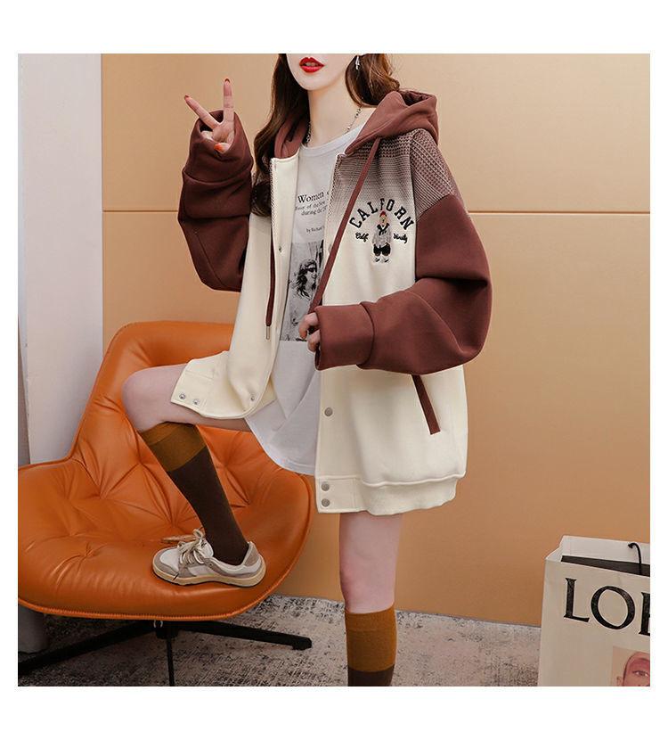 Cárdigan Sudadera con Capucha de Terciopelo Grueso para Mujer 2022 Nuevo Otoño e Invierno Holgado Casual Estilo Coreano Chaqueta Cálida y Cómoda