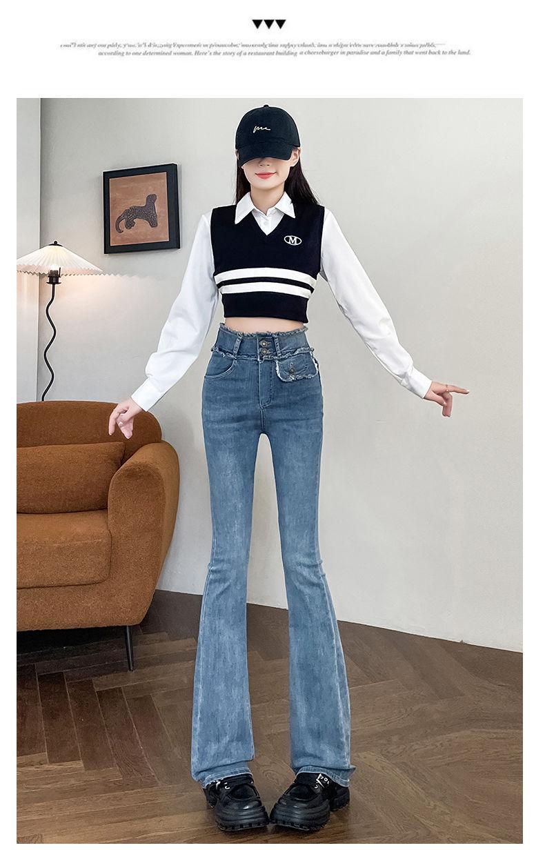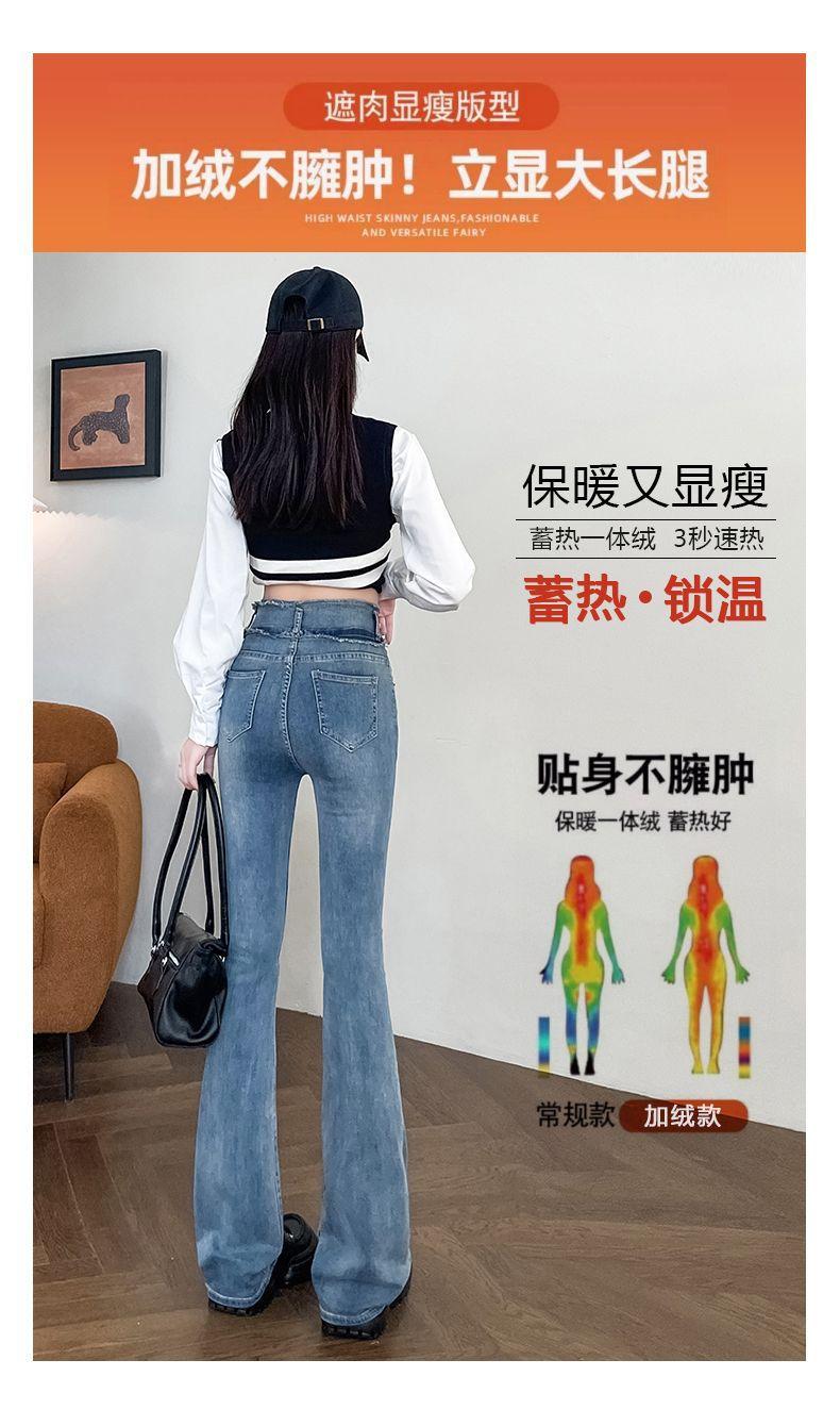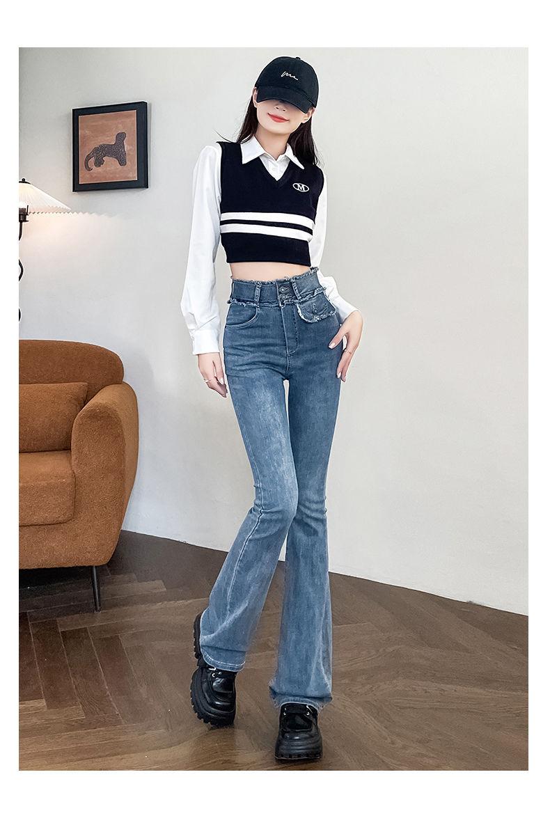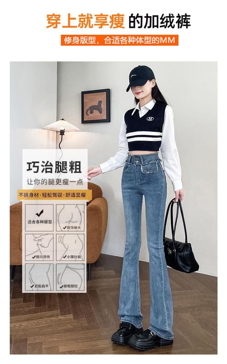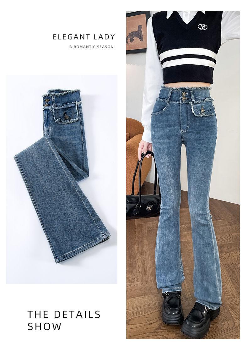 Jeans Vintage de Cintura Alta con Borde de Piel Microacampanados para Mujer Otoño Nuevo Elásticos Ajustados Altos Slim-fit Pantalones Trompeta de Herradura