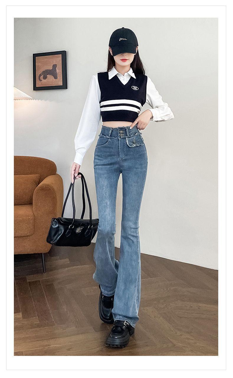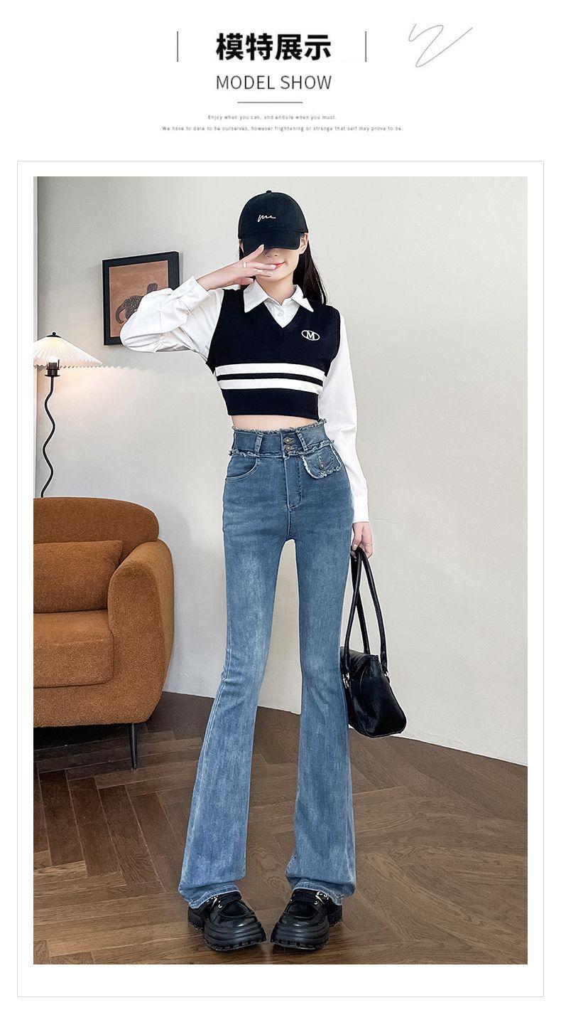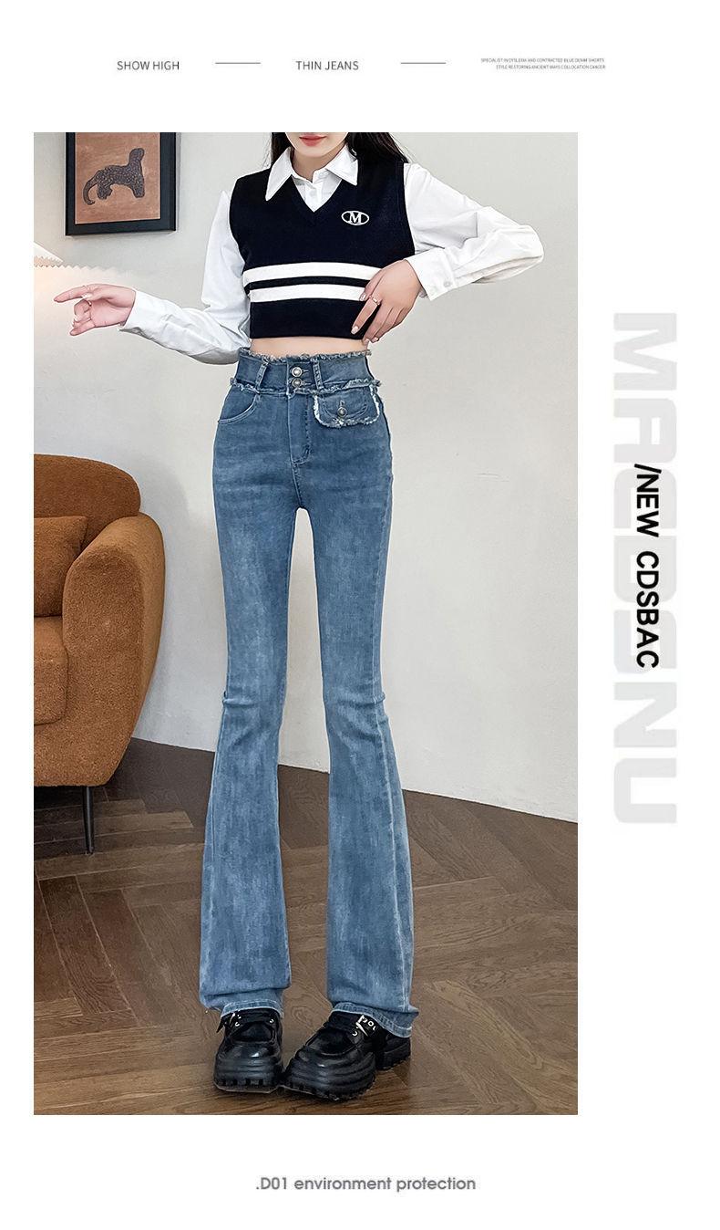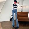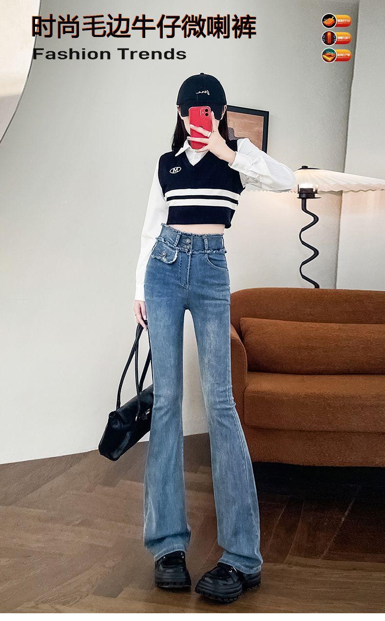 Jeans Vintage de Cintura Alta con Borde de Piel Microacampanados para Mujer Otoño Nuevo Elásticos Ajustados Altos Slim-fit Pantalones Trompeta de Herradura