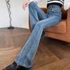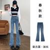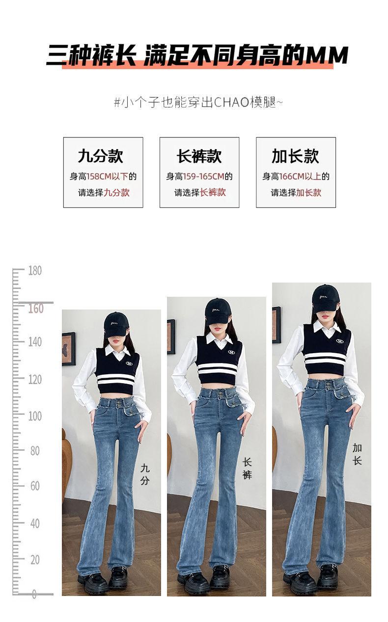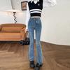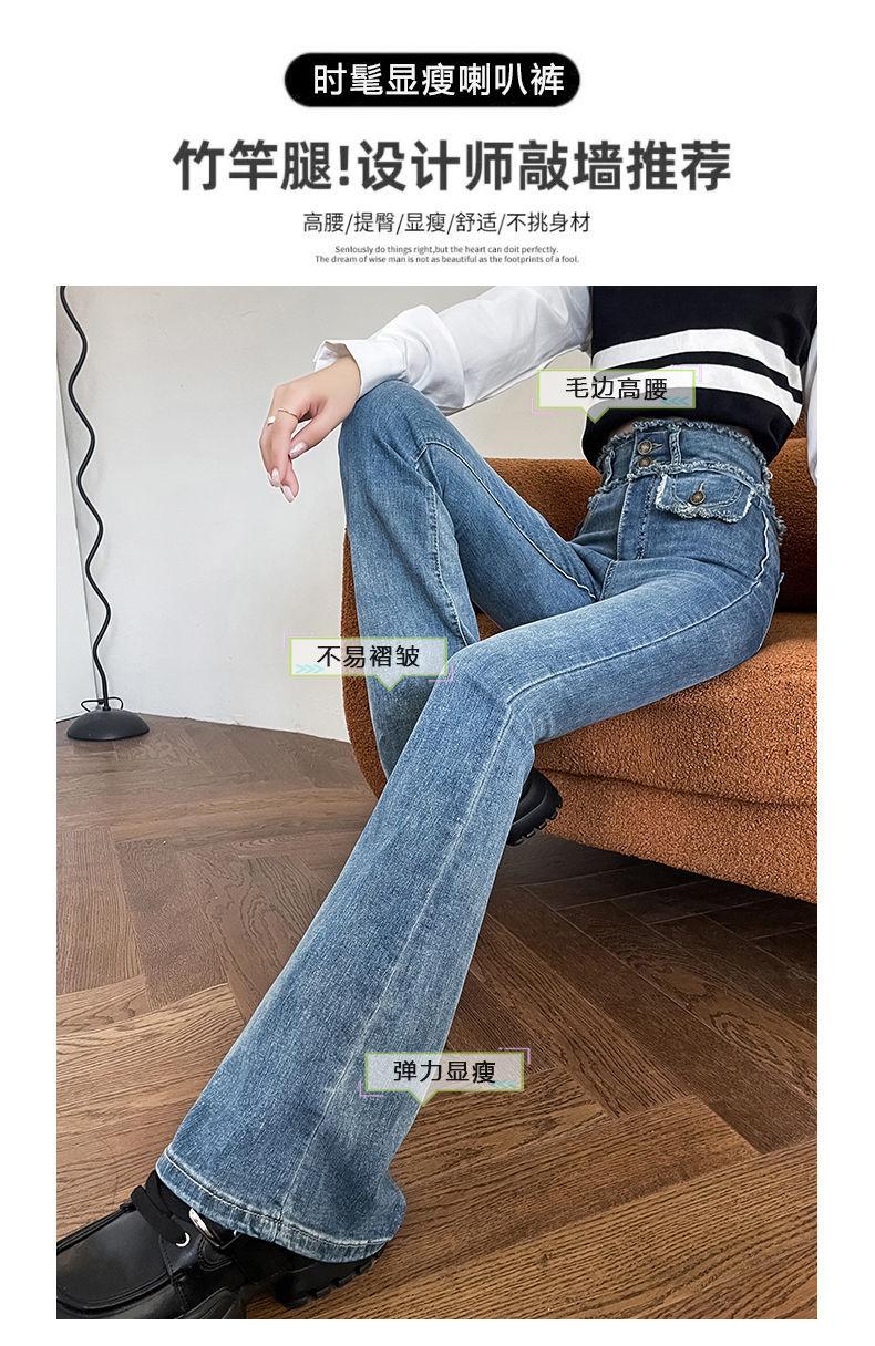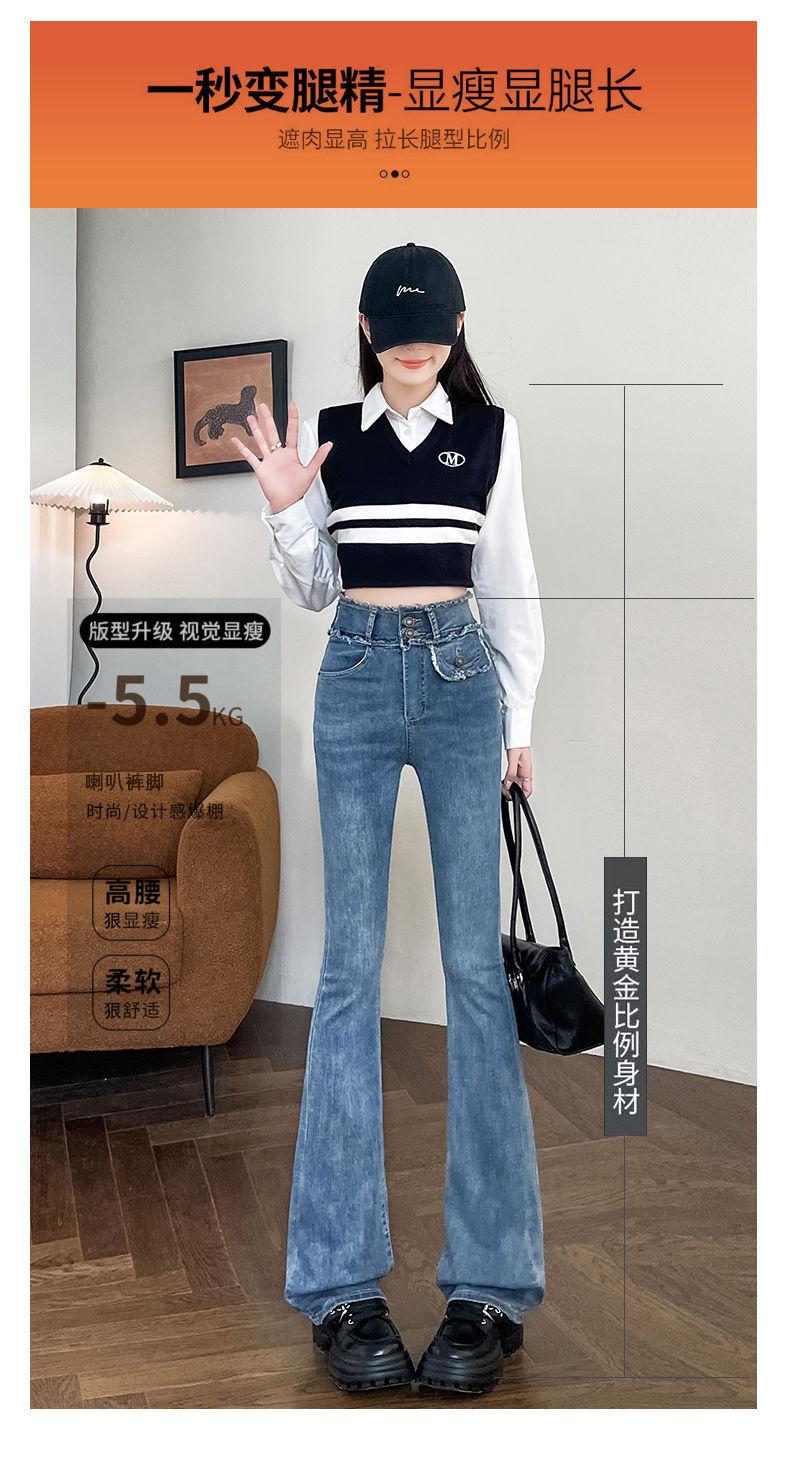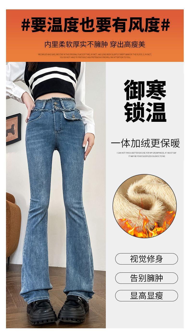Jeans Vintage de Cintura Alta con Borde de Piel Microacampanados para Mujer Otoño Nuevo Elásticos Ajustados Altos Slim-fit Pantalones Trompeta de Herradura