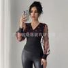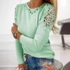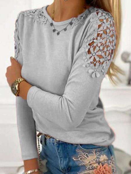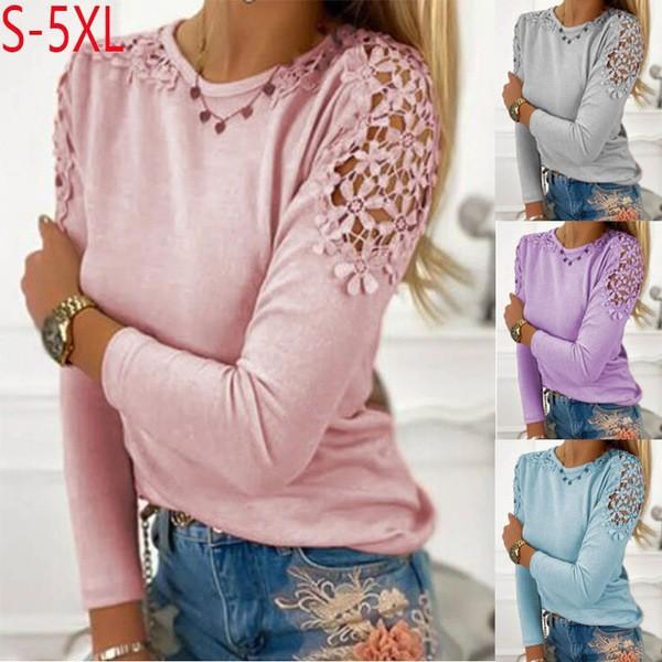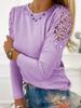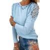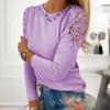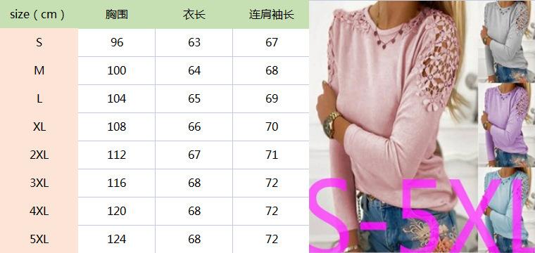 Europeo y Americano Transfronterizo 2024 Otoño Nuevo Amazon Aliexpress Color Sólido Slim Encaje Calado Camiseta de Manga Larga en Stock