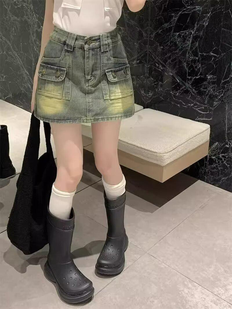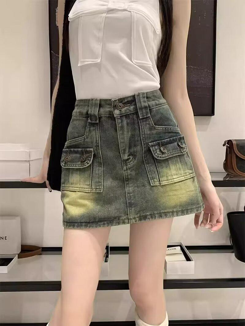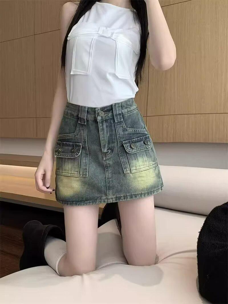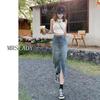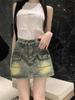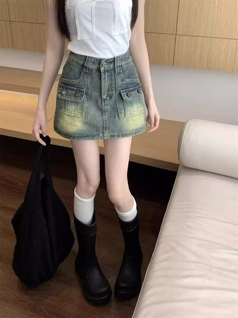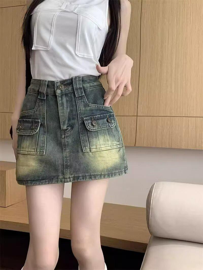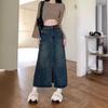 Falda vaquera azul vintage de media longitud para mujer, estilo Spice Girl americano, de primavera y verano, con cintura alta y antideslizante.