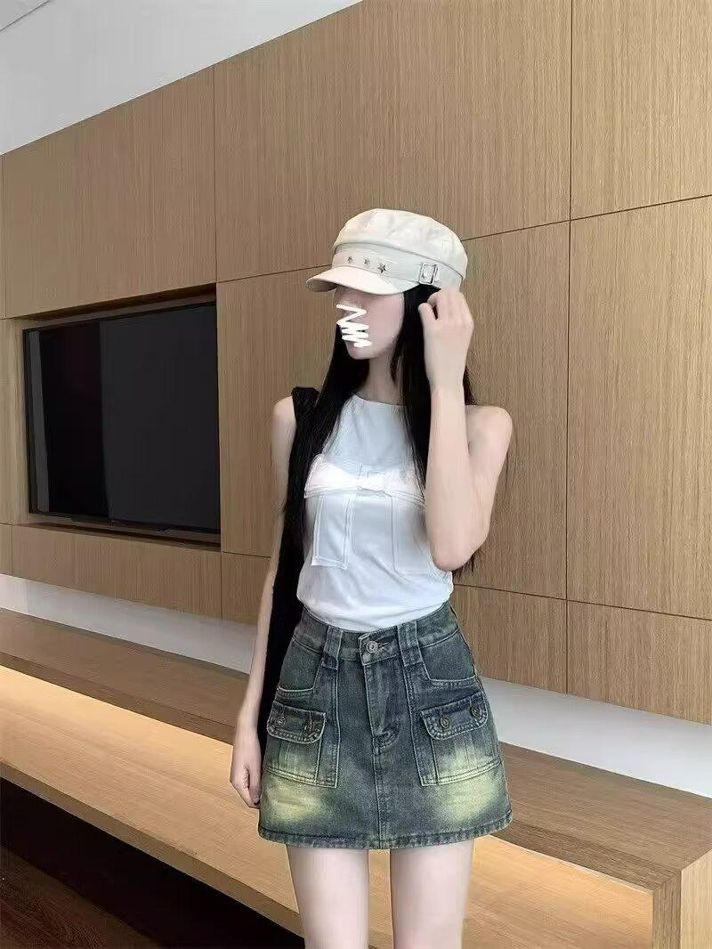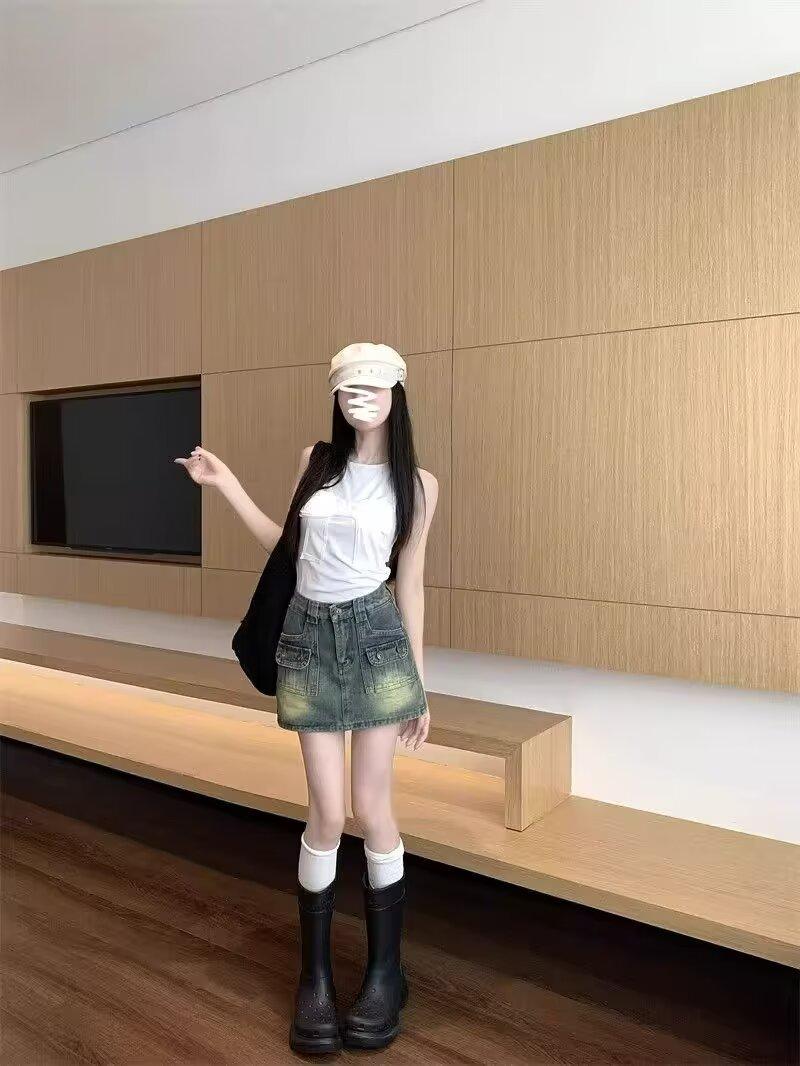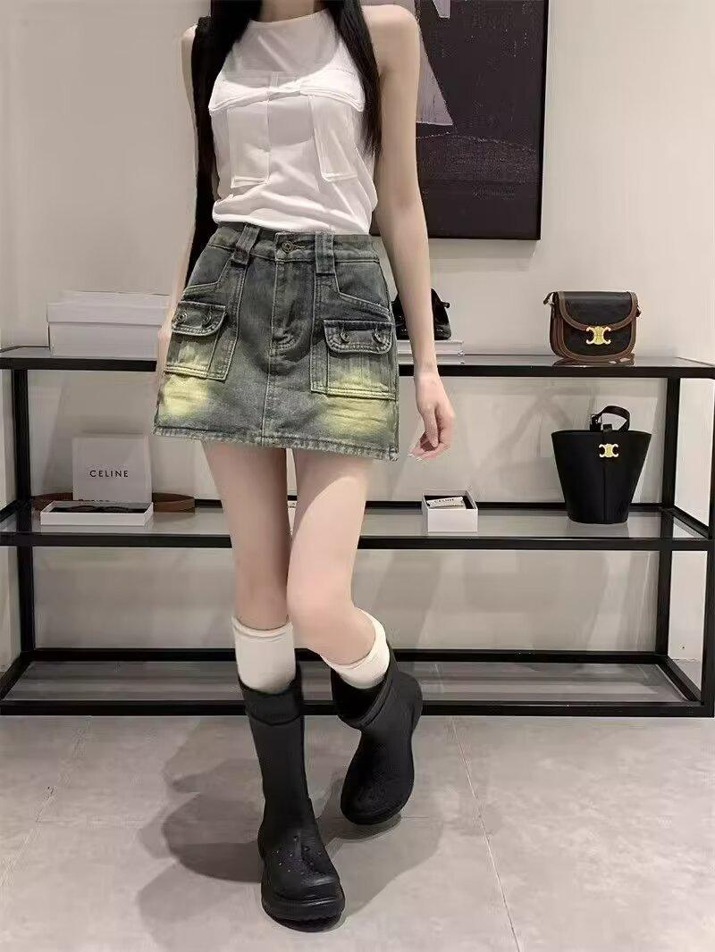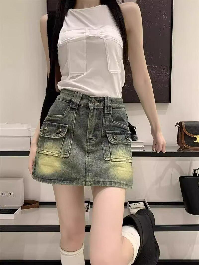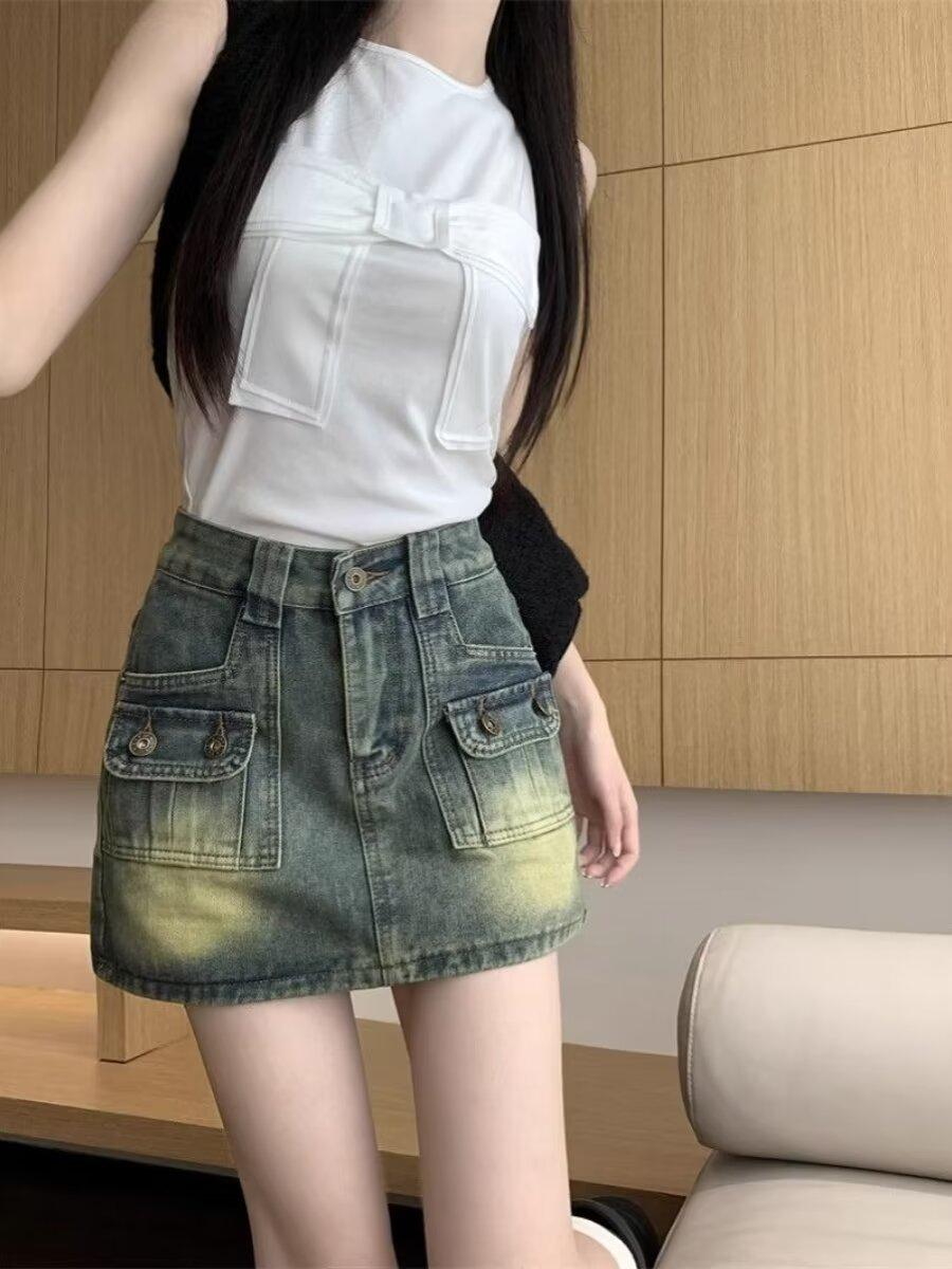 Falda vaquera azul vintage de media longitud para mujer, estilo Spice Girl americano, de primavera y verano, con cintura alta y antideslizante.