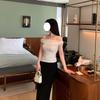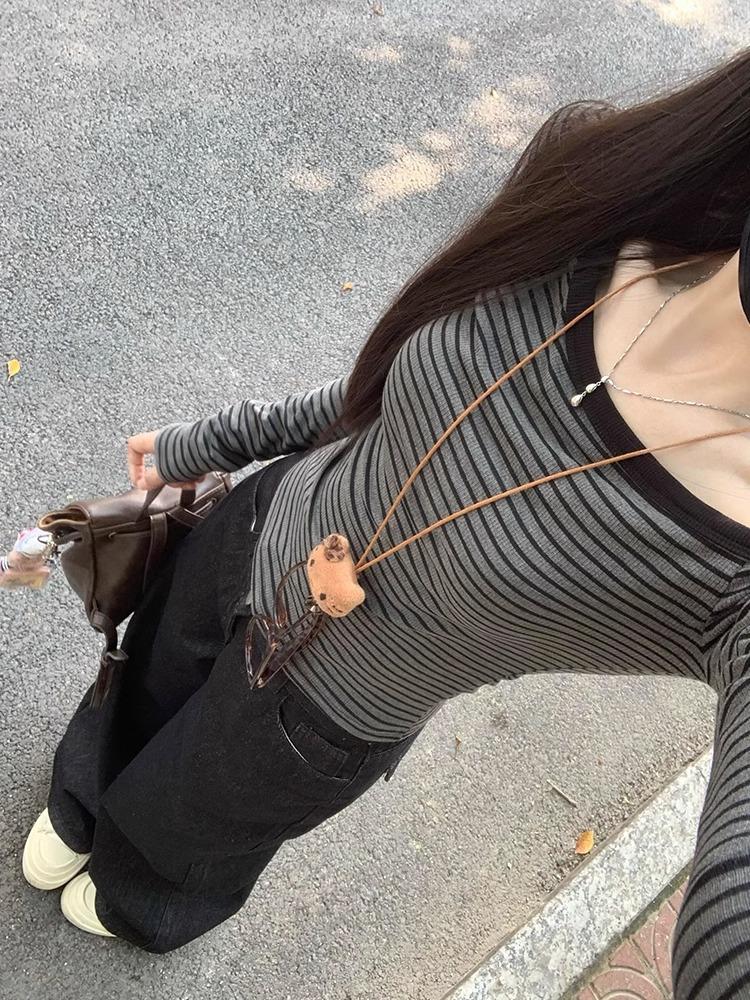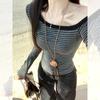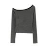 Chica Sexy Una Palabra Cuello Oblicuo Base Hombro Top Mujer 2025 Primavera Rayado Ins Ajustado Adelgazante Camiseta Manga Larga