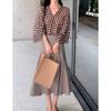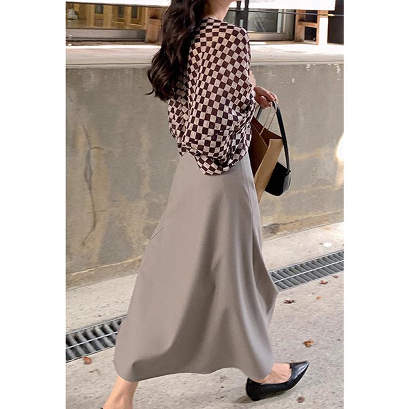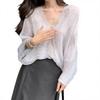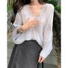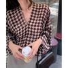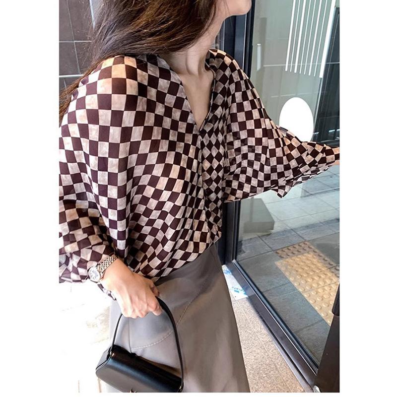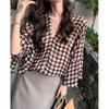 Diseño Sentido Cuadros Cuello en V Camisa Holgada Mujer Top Chic