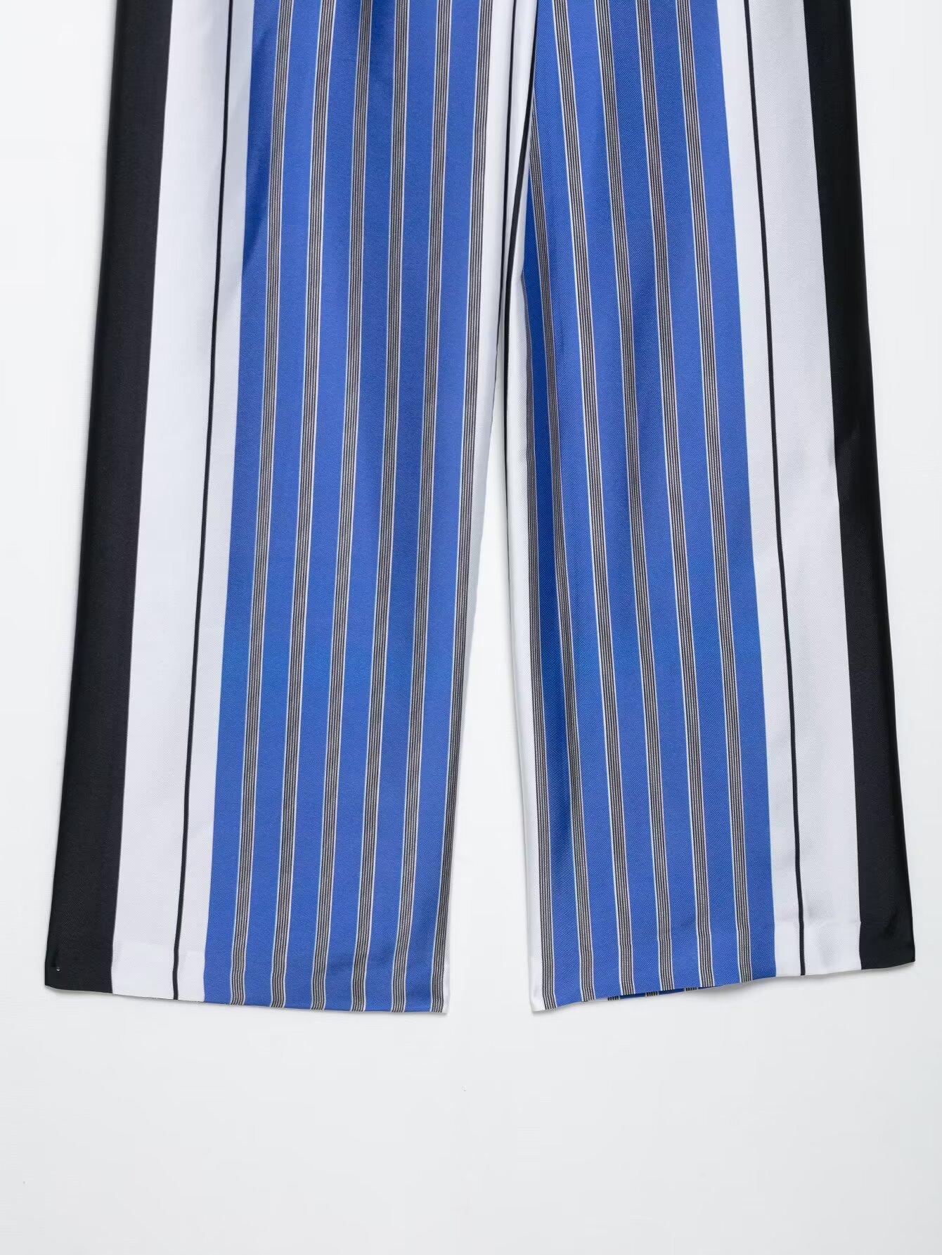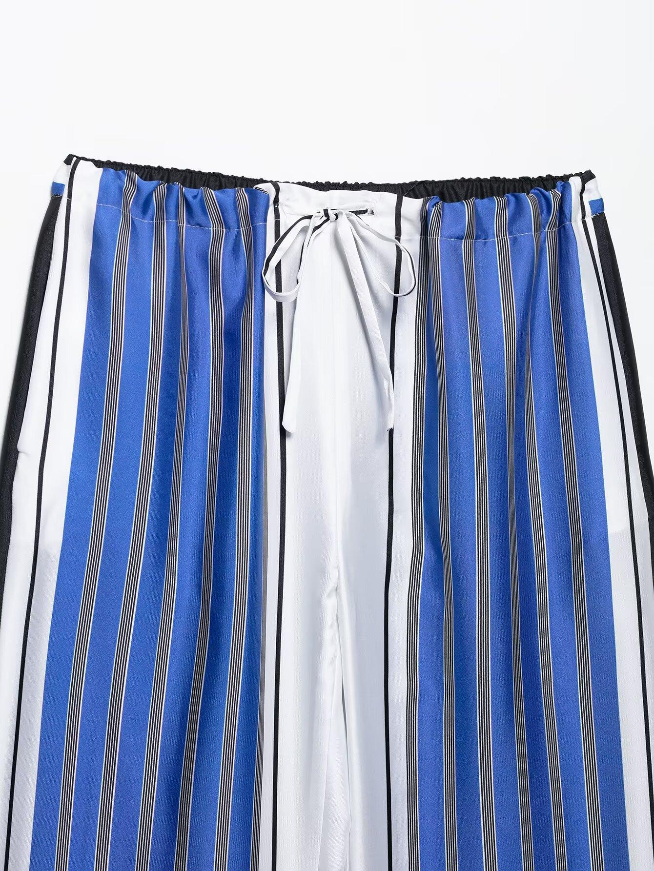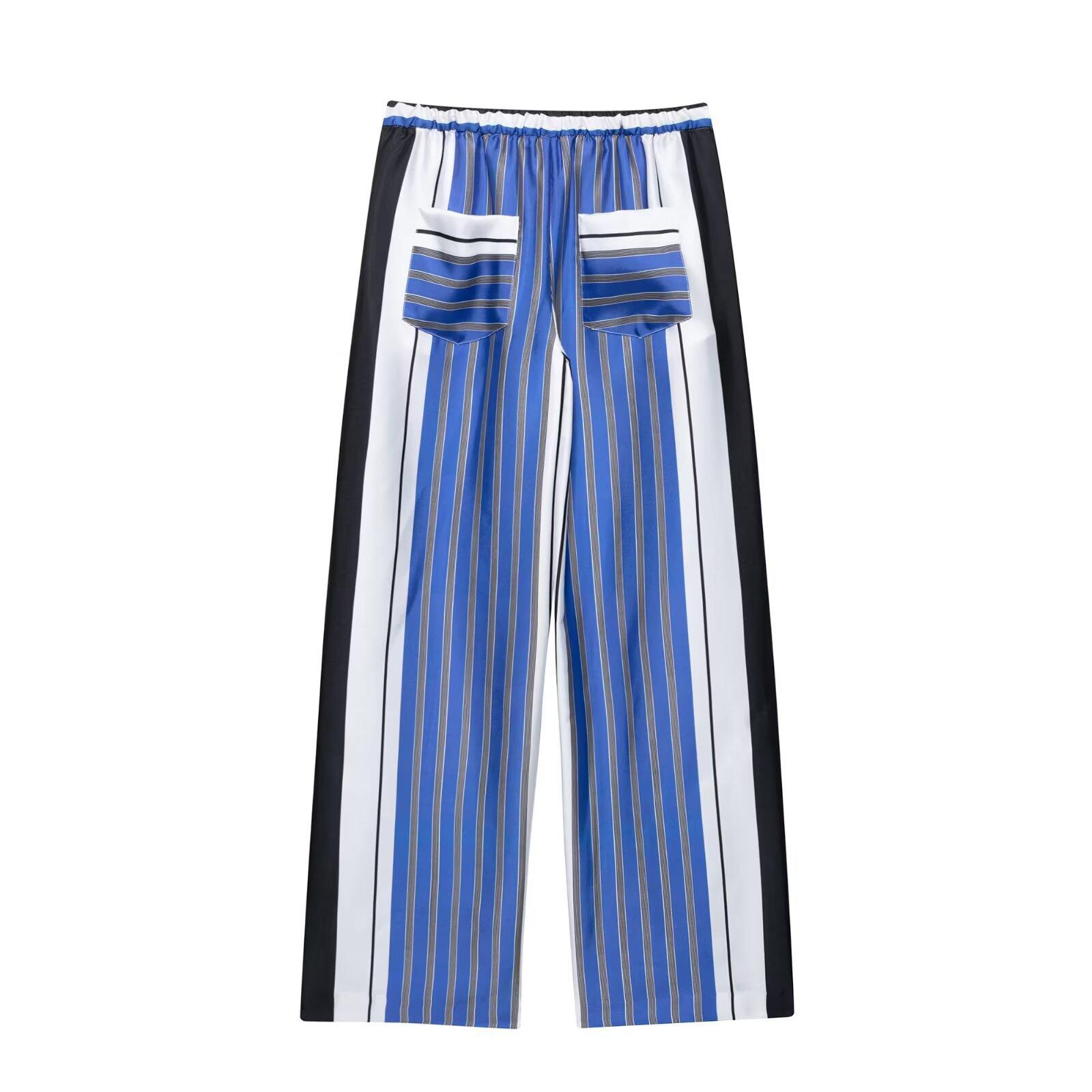 Venta al por mayor de comercio exterior transfronterizo Primavera y Verano 2025 Estilo europeo y americano Pantalones rectos casuales de pierna ancha a rayas sueltos de cintura elástica para mujer