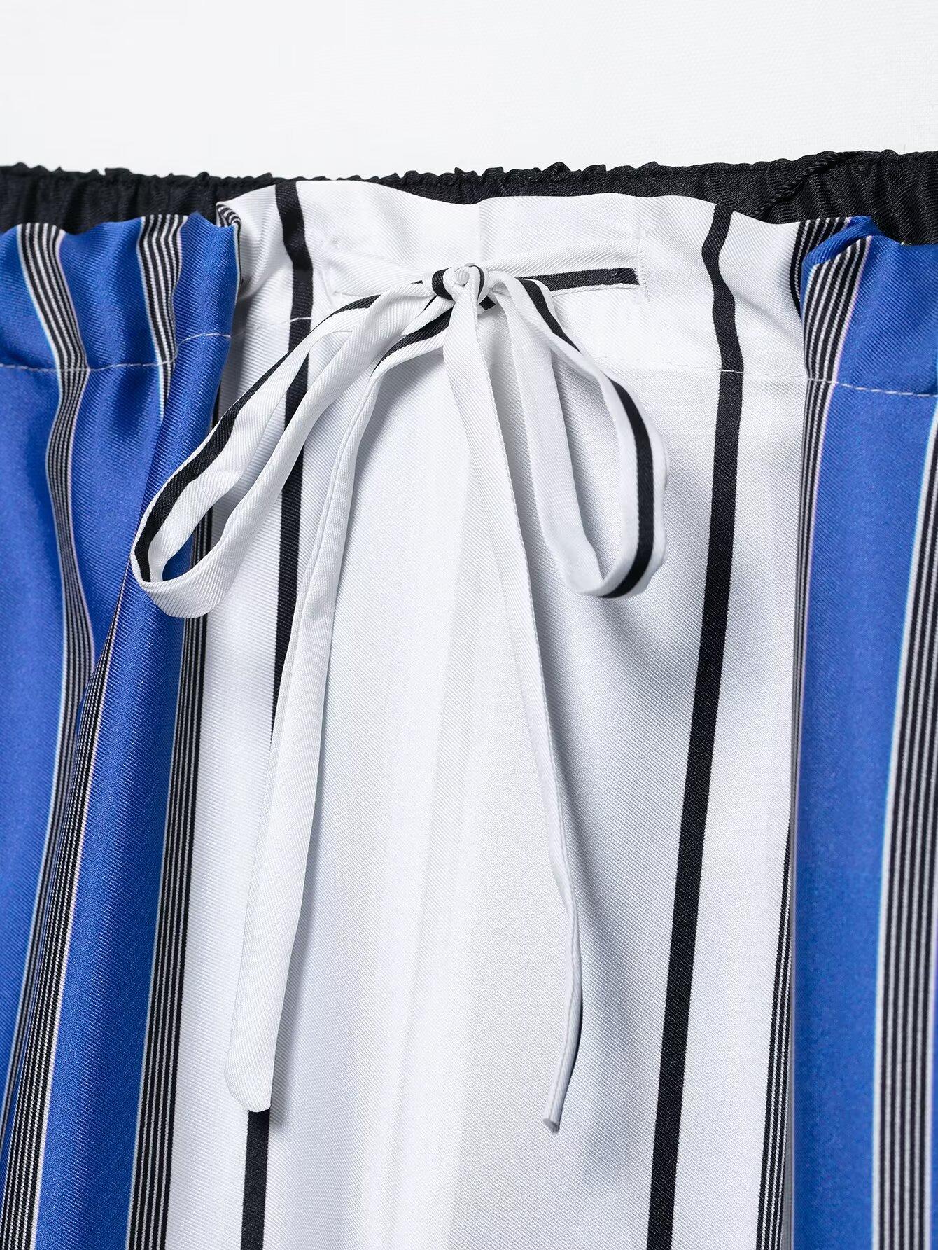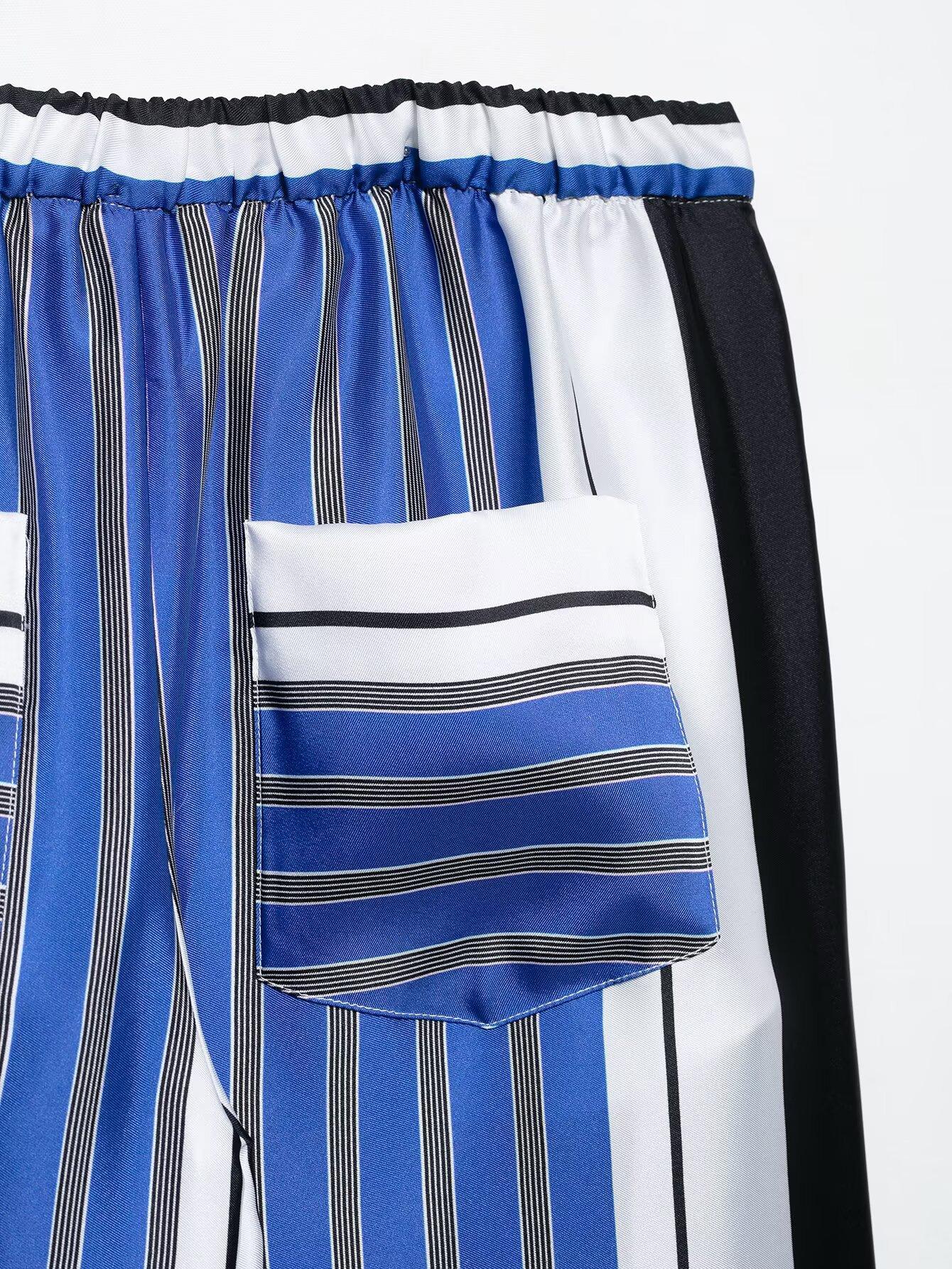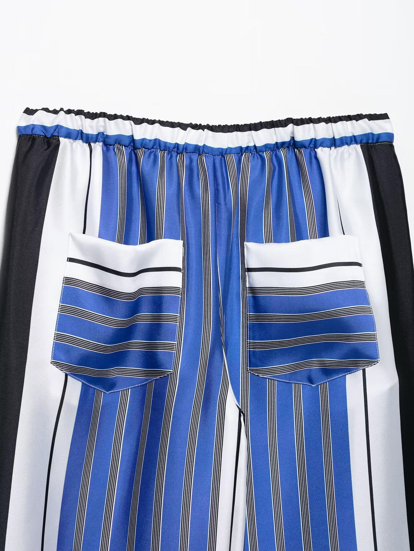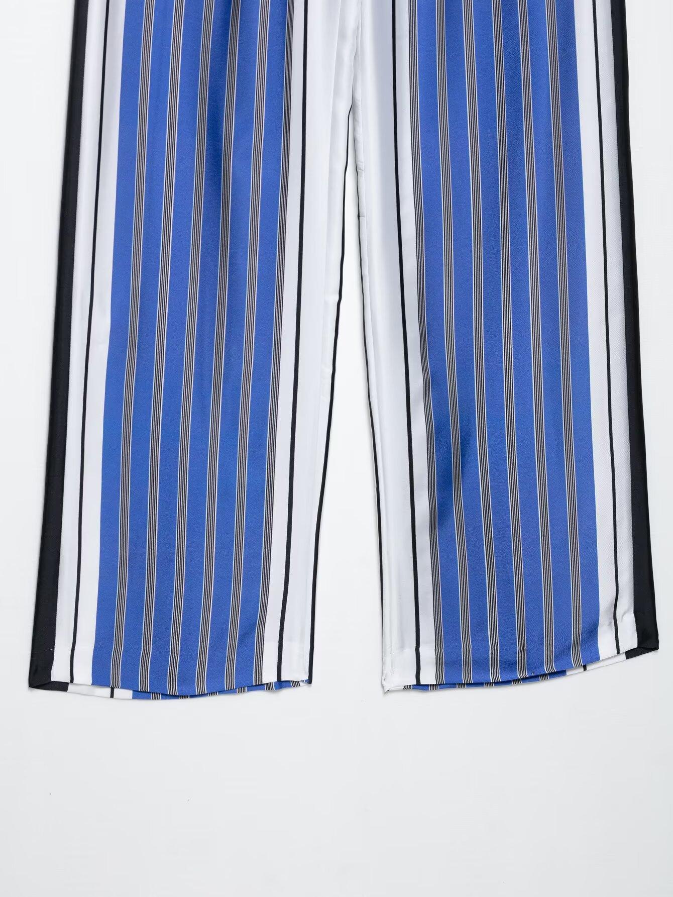 Venta al por mayor de comercio exterior transfronterizo Primavera y Verano 2025 Estilo europeo y americano Pantalones rectos casuales de pierna ancha a rayas sueltos de cintura elástica para mujer