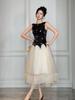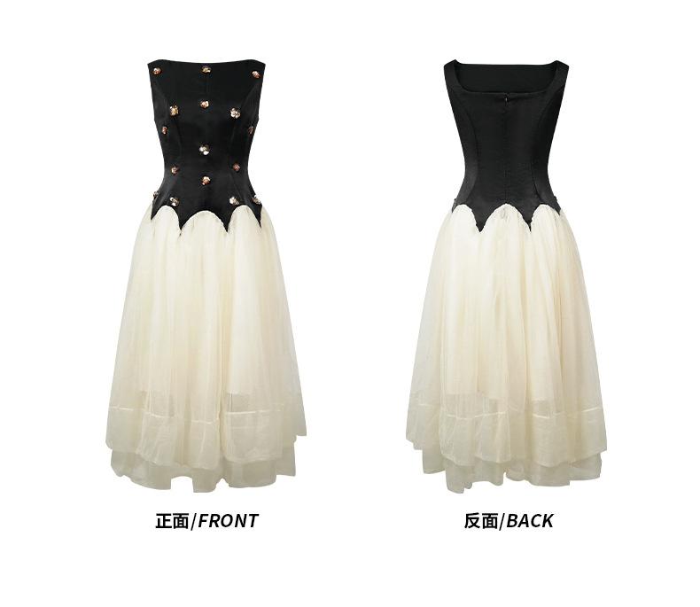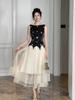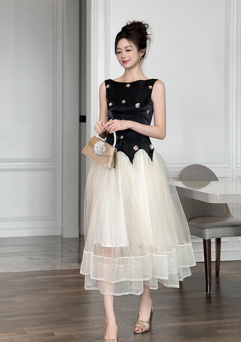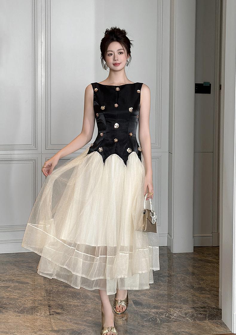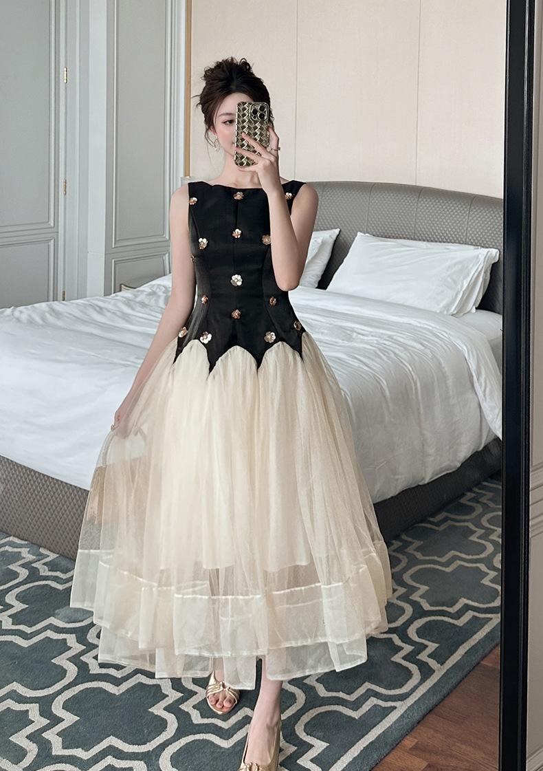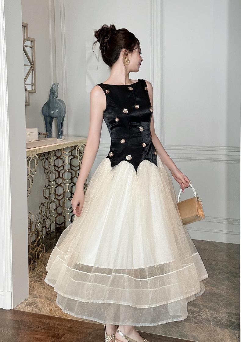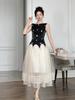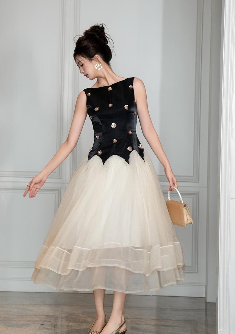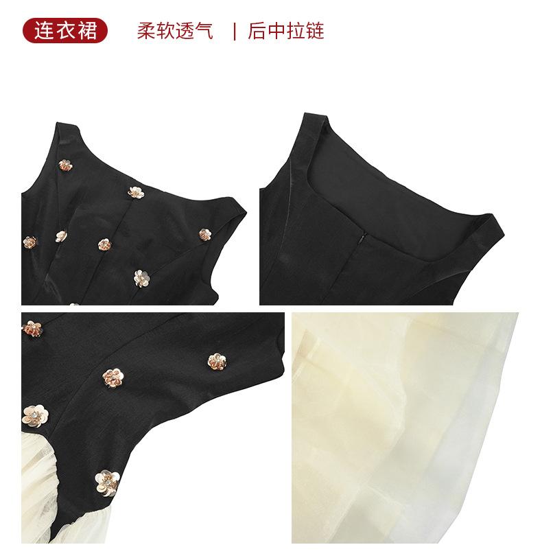 Vestido de verano con diseño de flores estéreo y malla empalmada, serie Miu, sin mangas, 9765