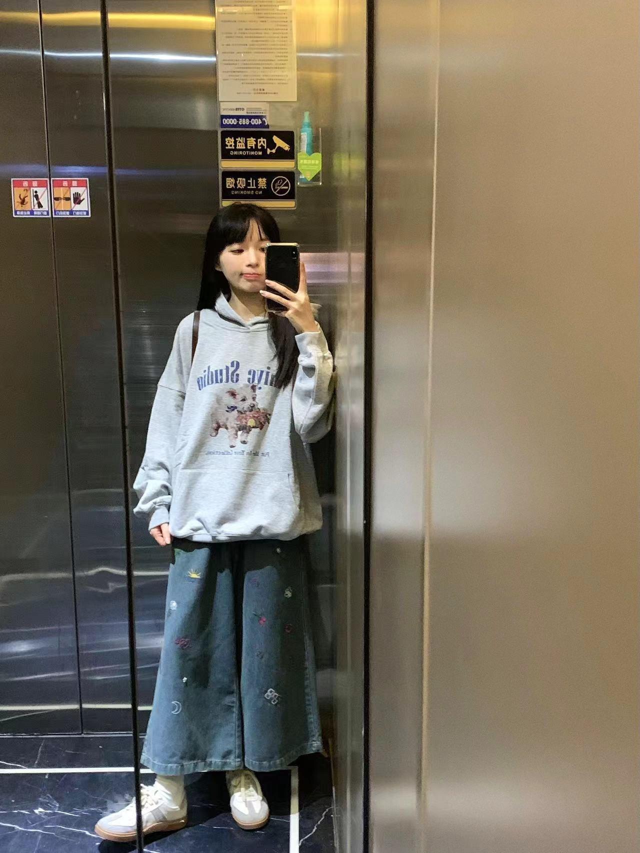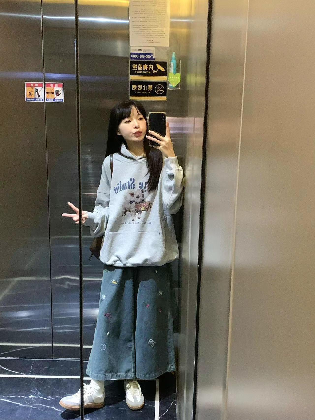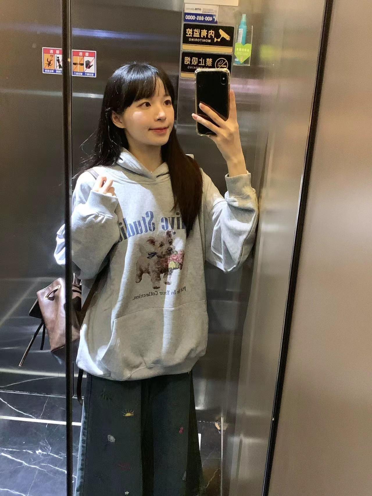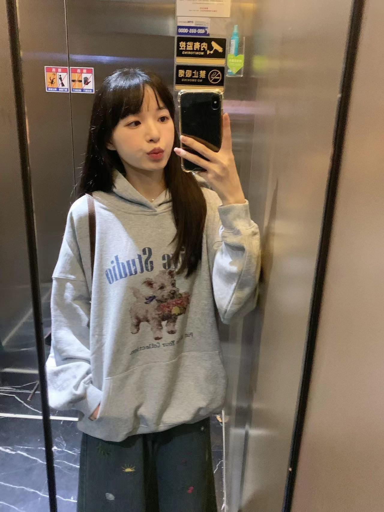 Sudadera con capucha distintiva y linda Sudadera con capucha para mujer Estampada de alta gama Largo medio Neutral