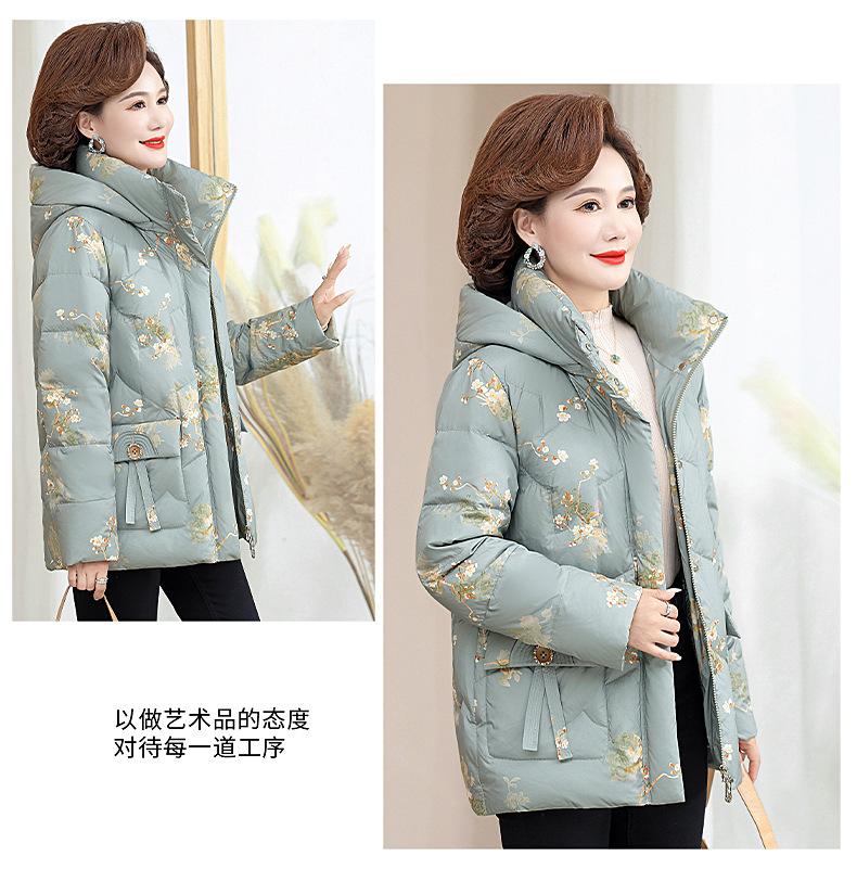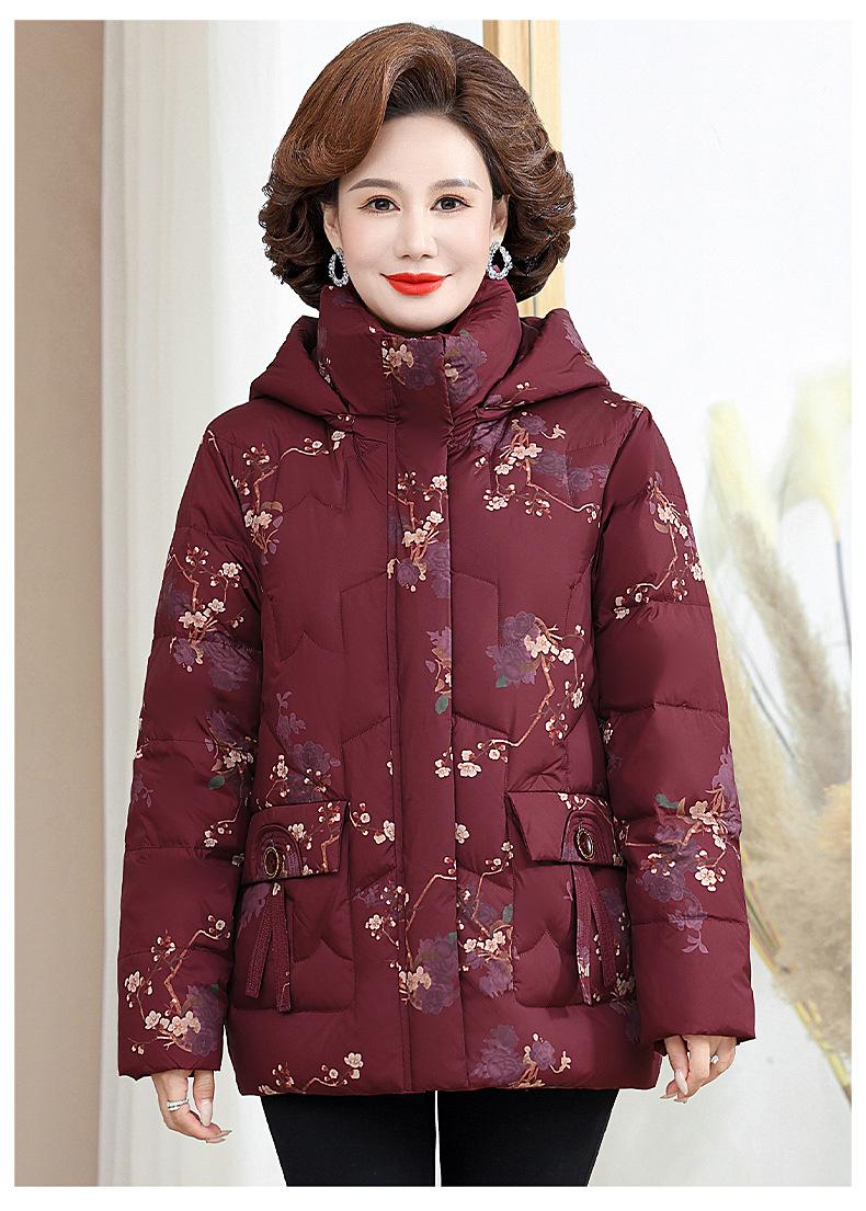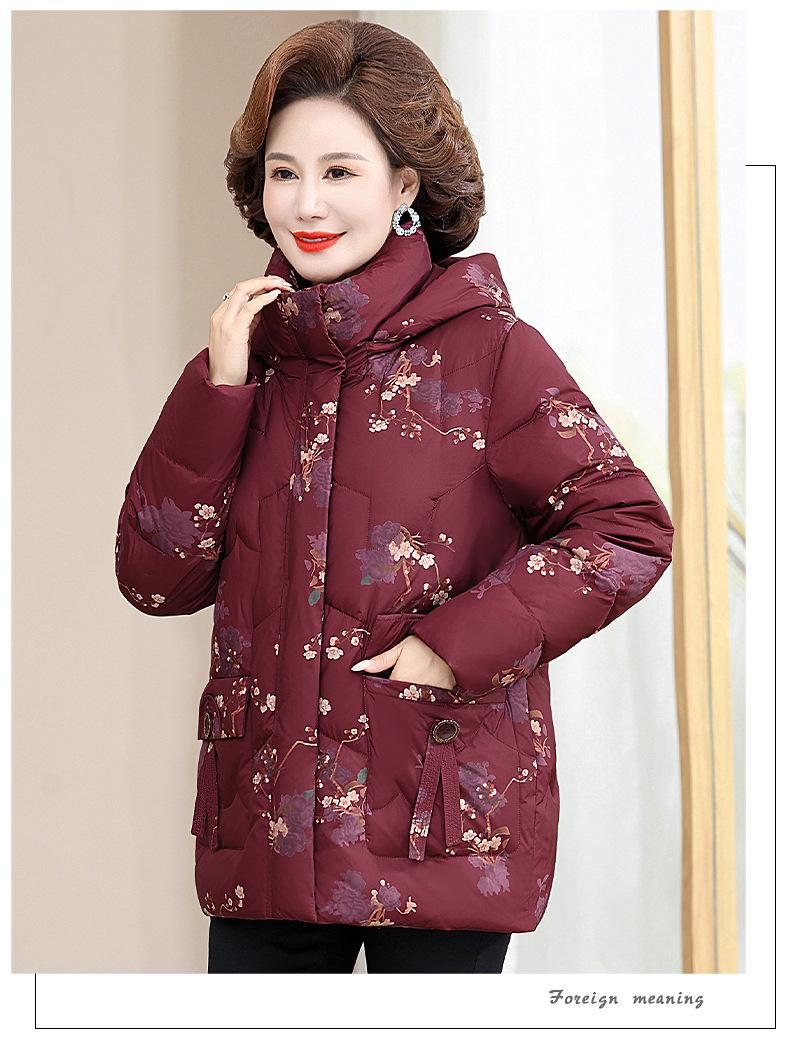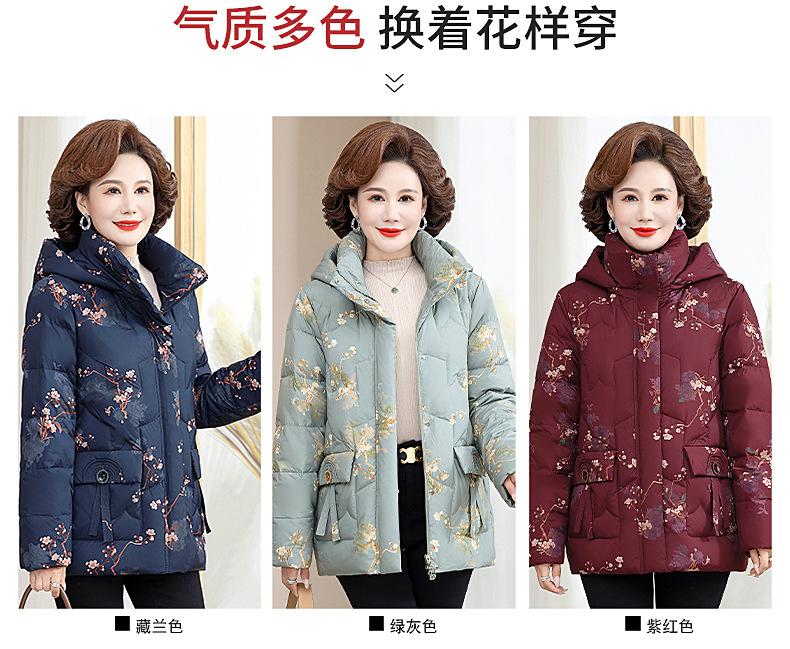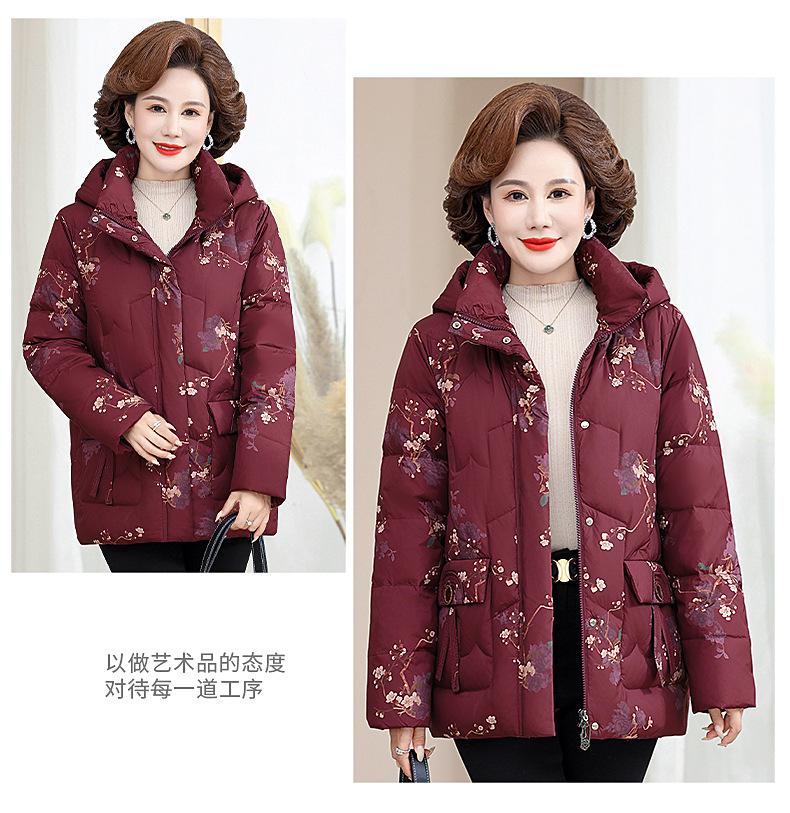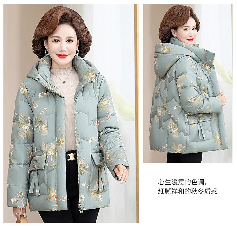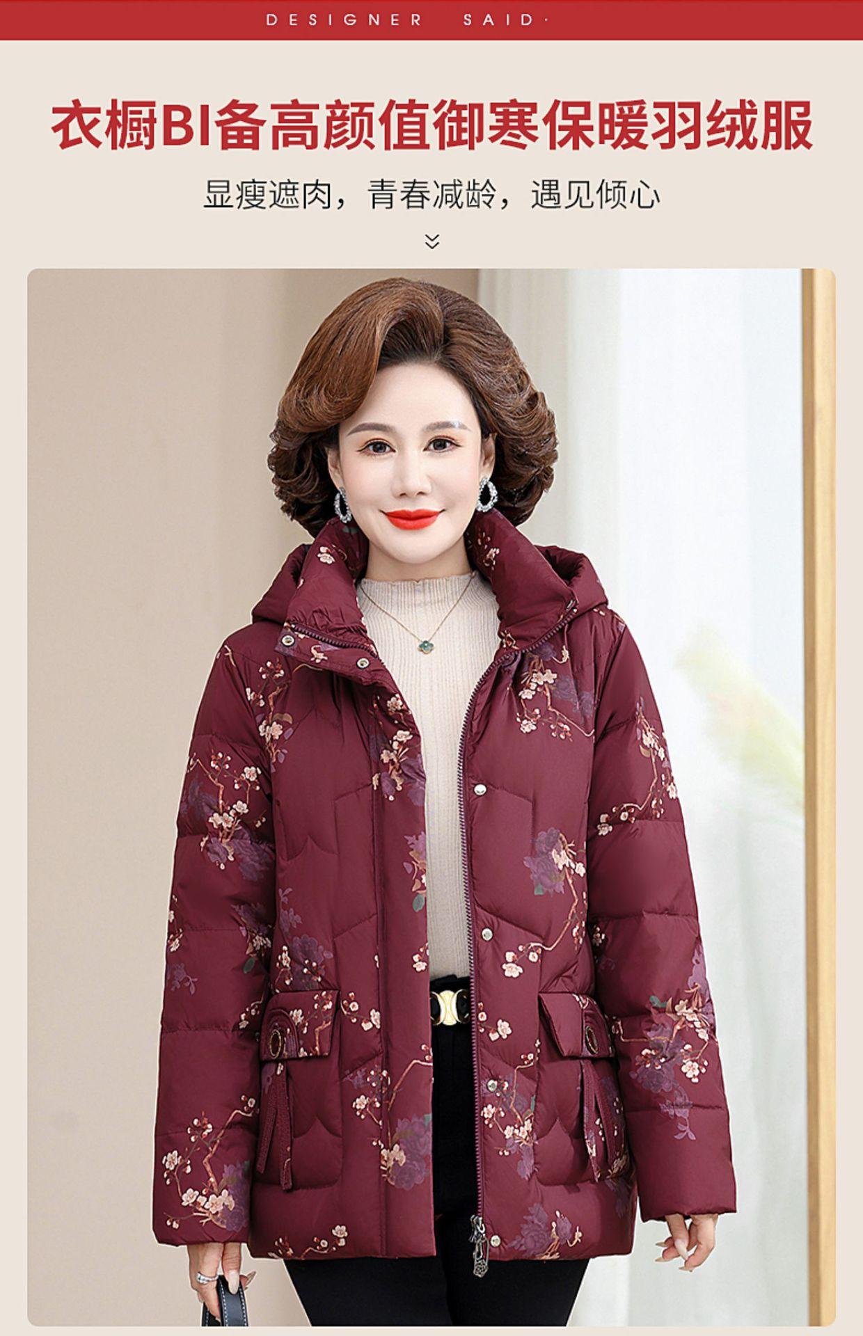 Chamarra de Plumón de Madre Nieve para Mujer Corta con Capucha 2024 Nueva Moda Estilo Occidental Ropa de Invierno para Mediana Edad y Adulta Mayor Chamarra Acolchada