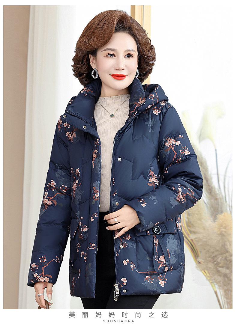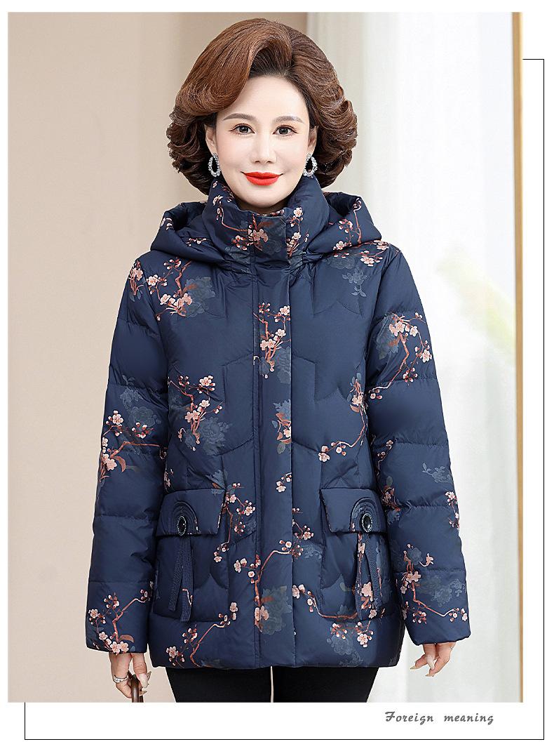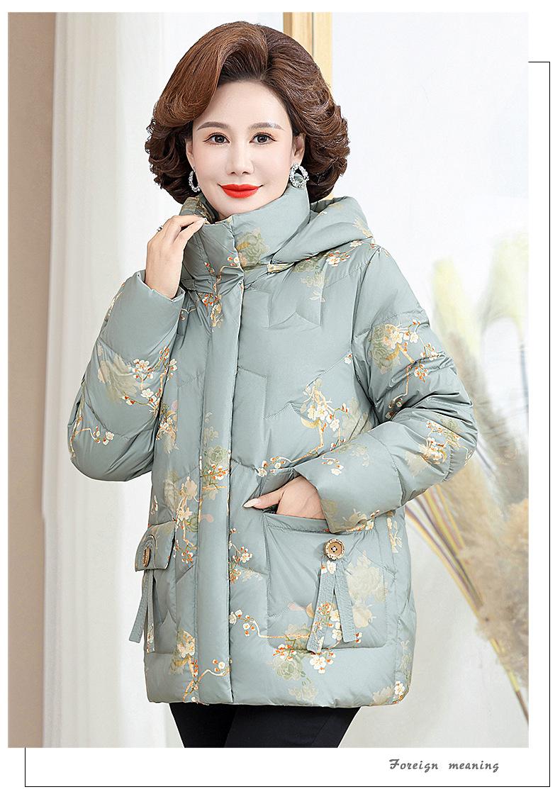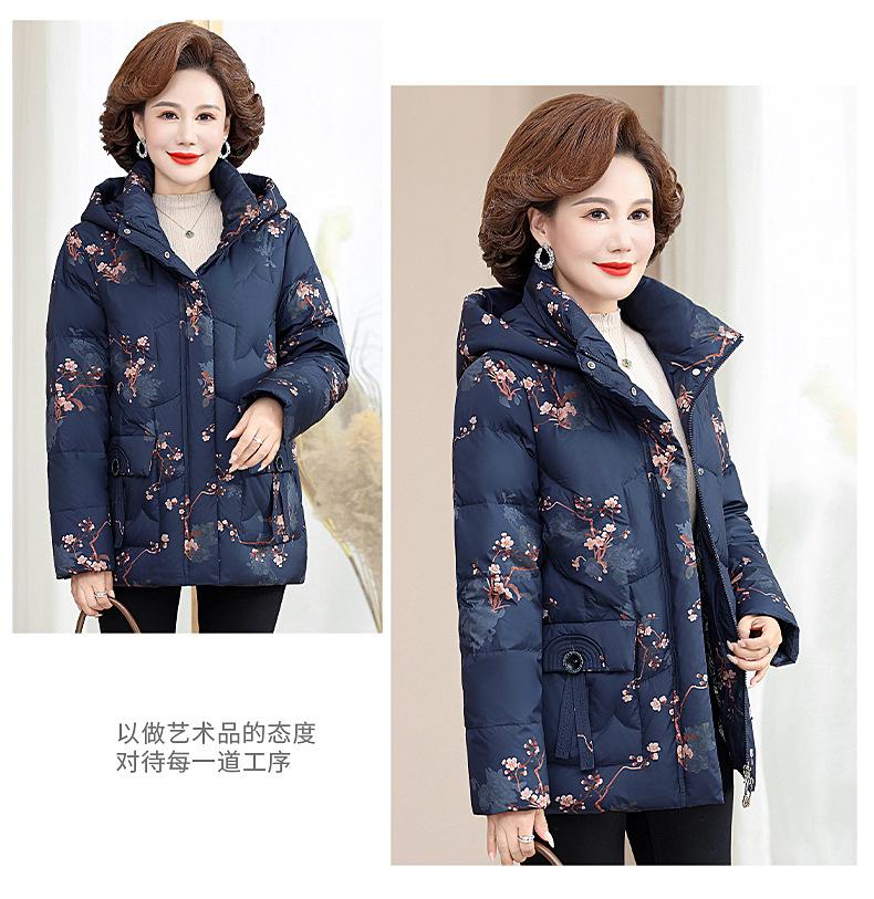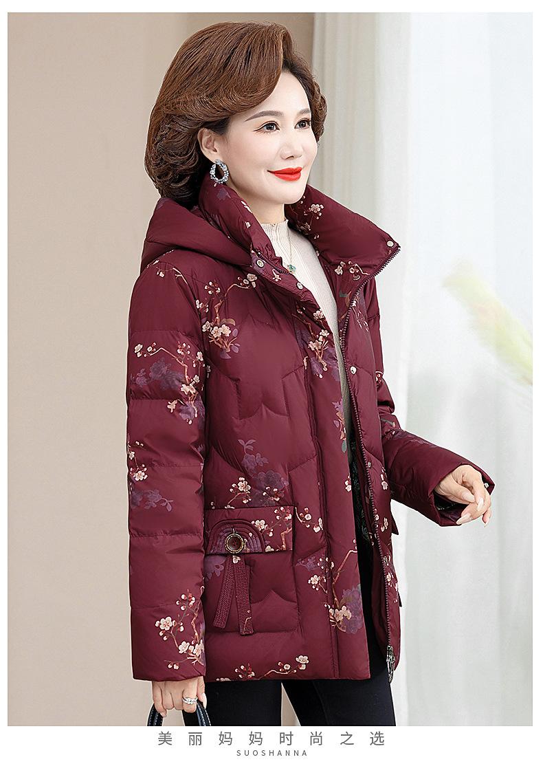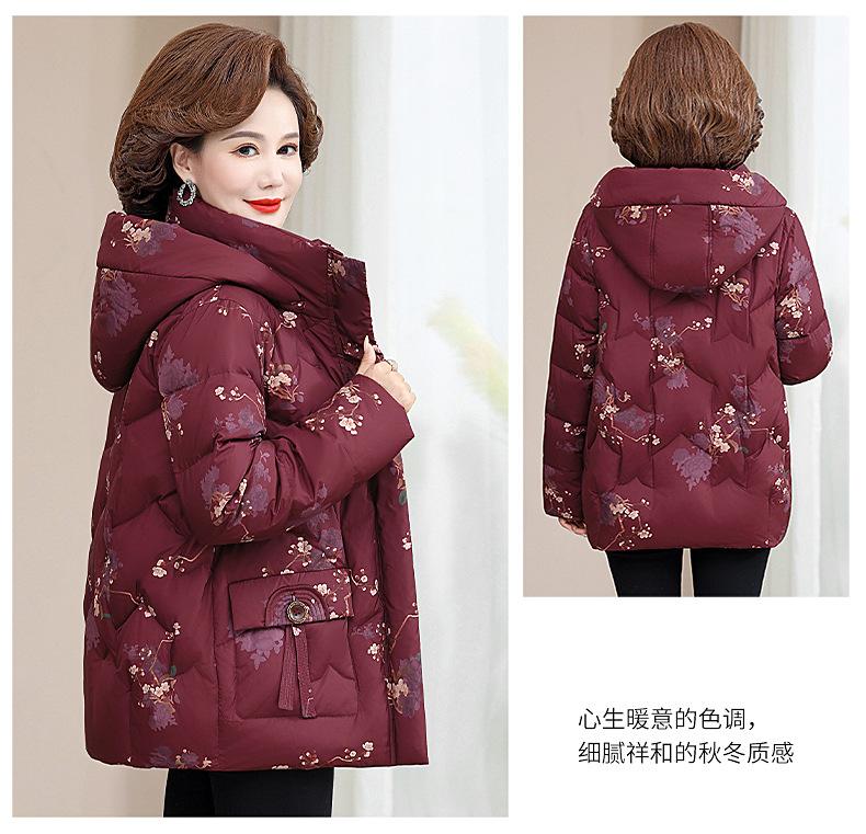 Chamarra de Plumón de Madre Nieve para Mujer Corta con Capucha 2024 Nueva Moda Estilo Occidental Ropa de Invierno para Mediana Edad y Adulta Mayor Chamarra Acolchada