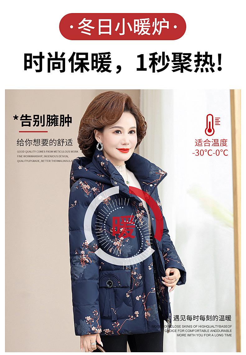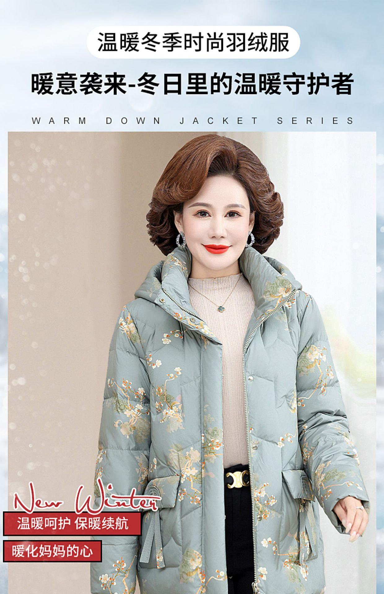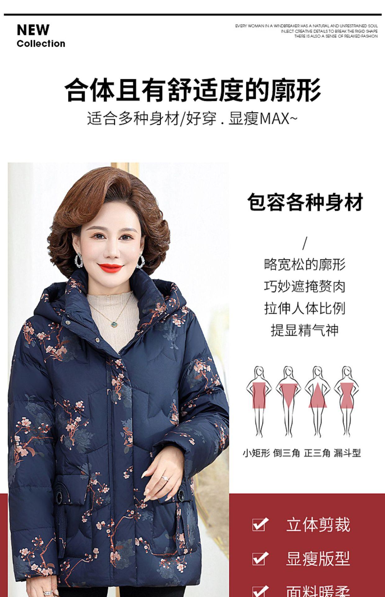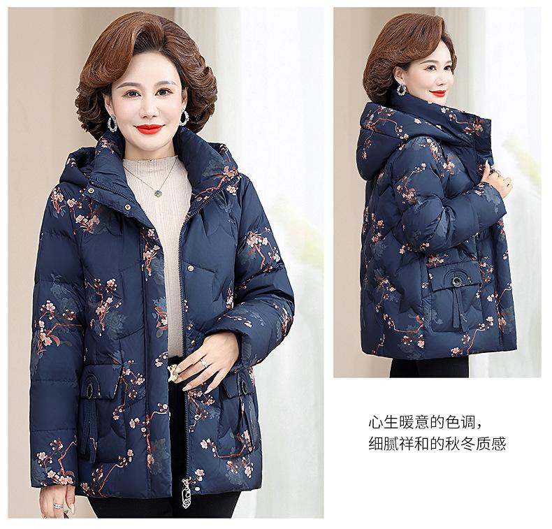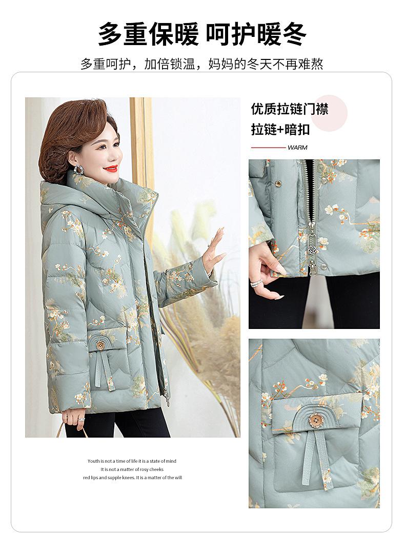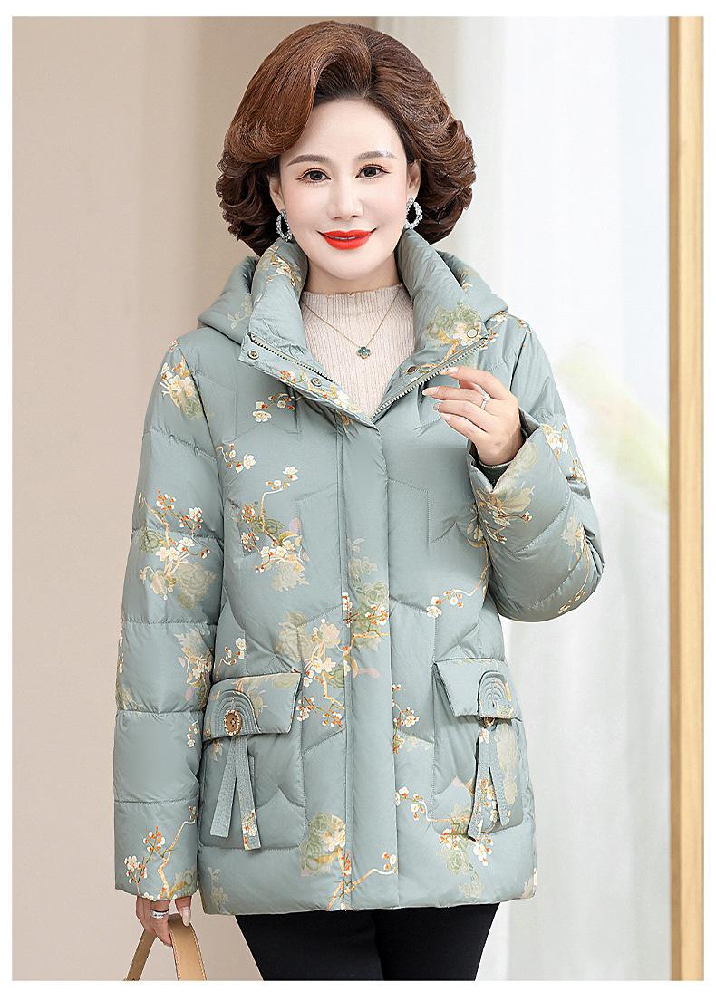 Chamarra de Plumón de Madre Nieve para Mujer Corta con Capucha 2024 Nueva Moda Estilo Occidental Ropa de Invierno para Mediana Edad y Adulta Mayor Chamarra Acolchada