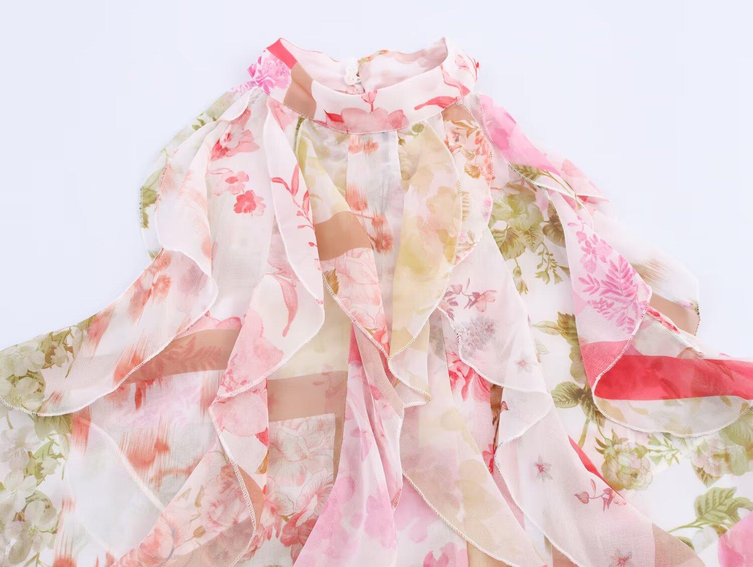 Comercio Exterior 2025 Verano Nuevo Estilo Europeo y Americano Estampado Floral Decoración en Capas Camisa Top de Mujer 2298125