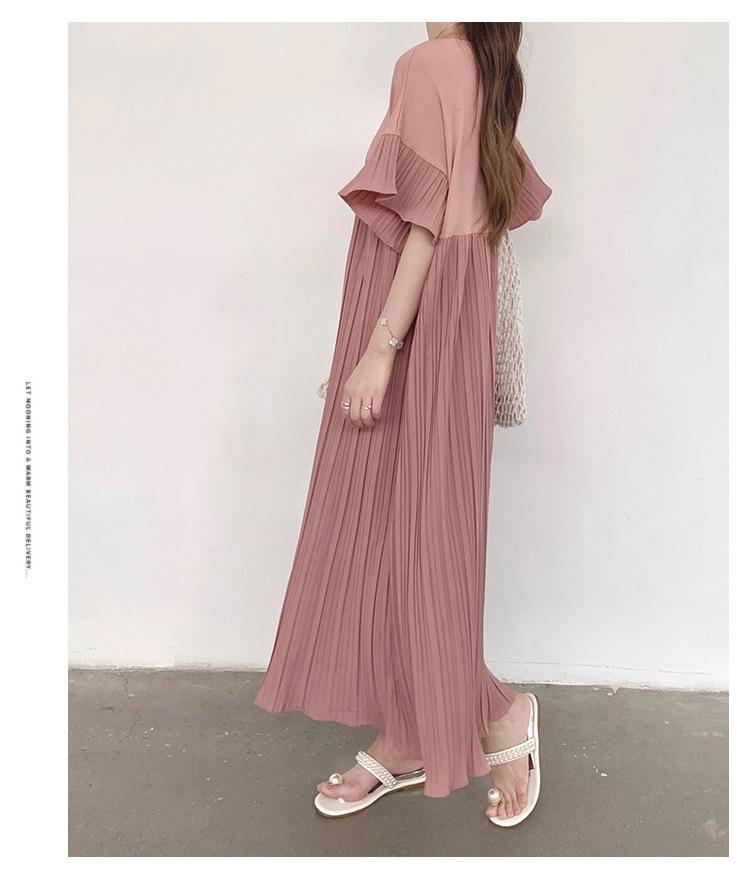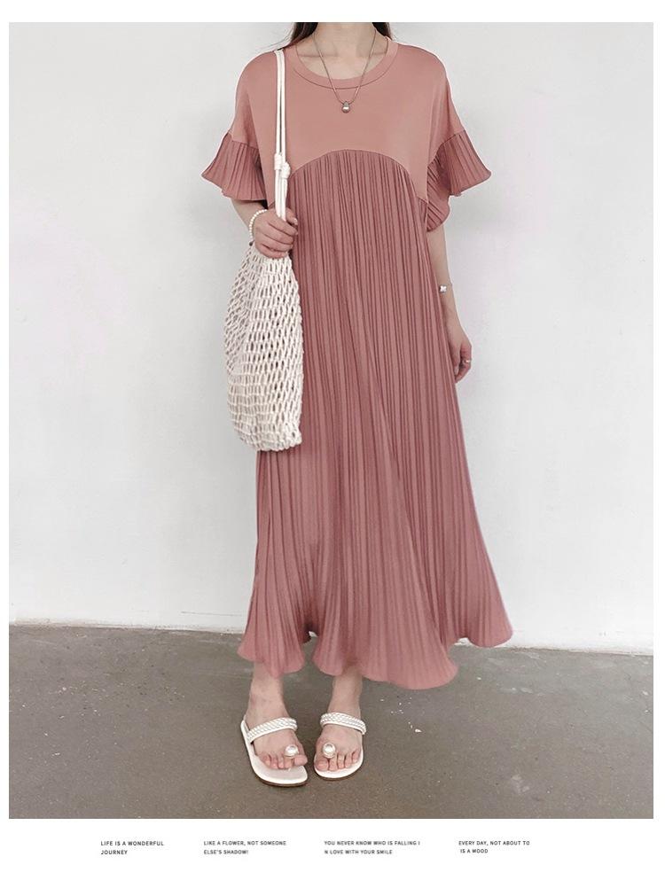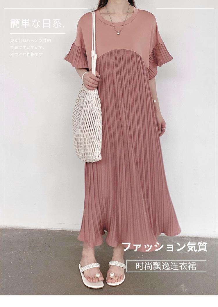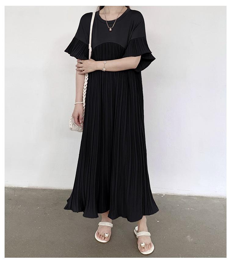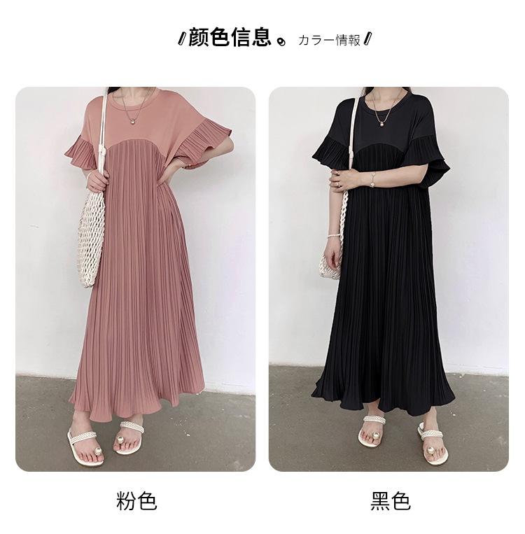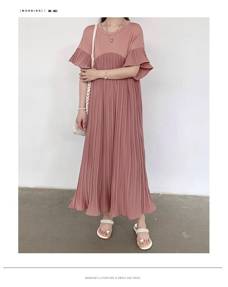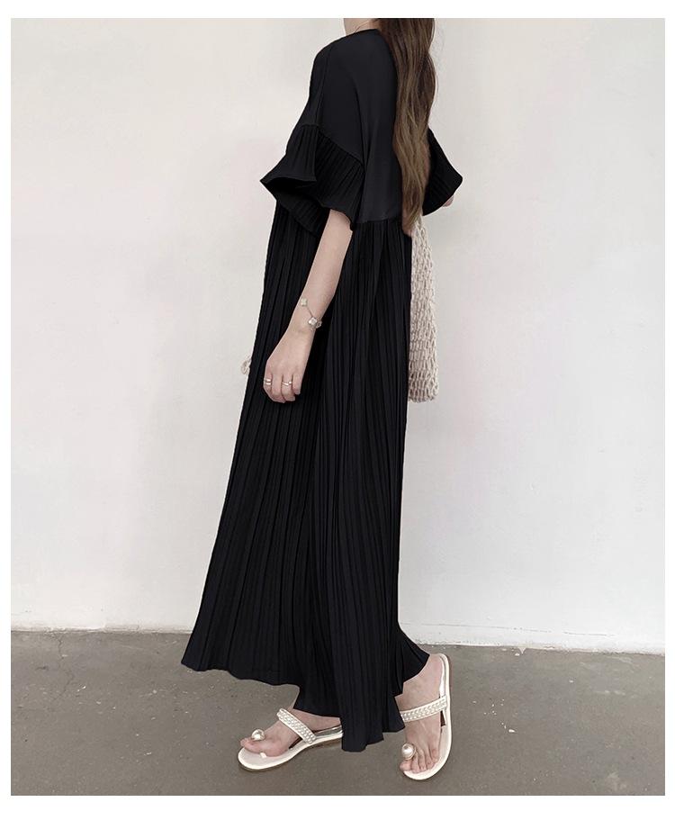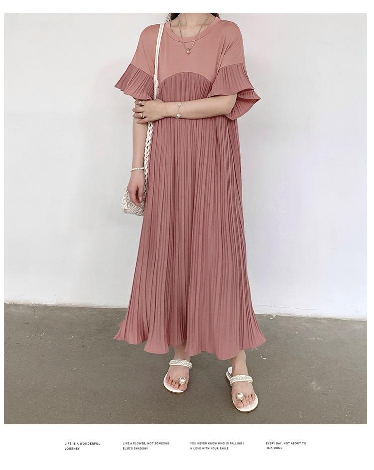 2025 Verano Nuevo Estilo Lotte Ins Japonés y Coreano Holgado Estilo Perezoso Costuras Plisadas Manga Volante Vestido Largo para Mujer