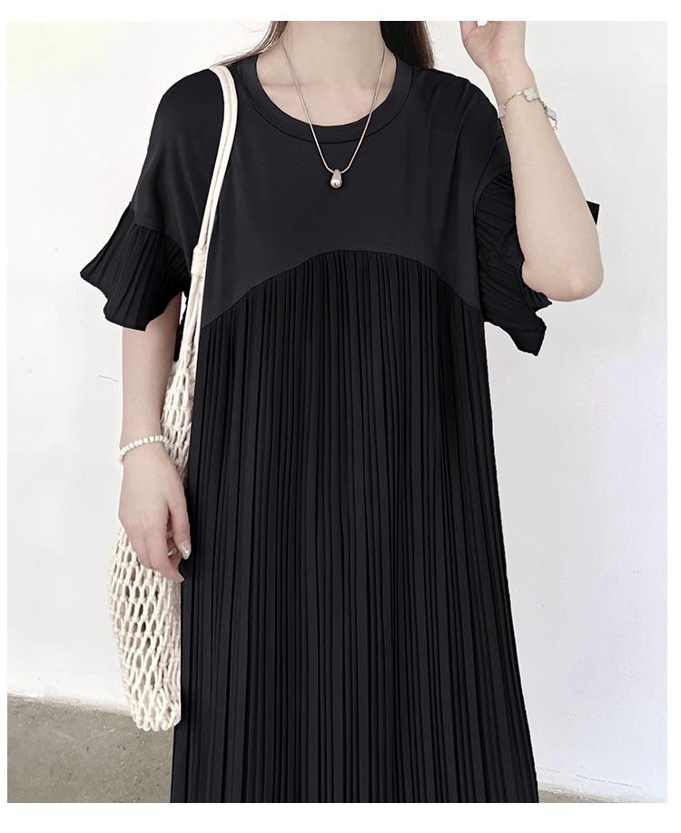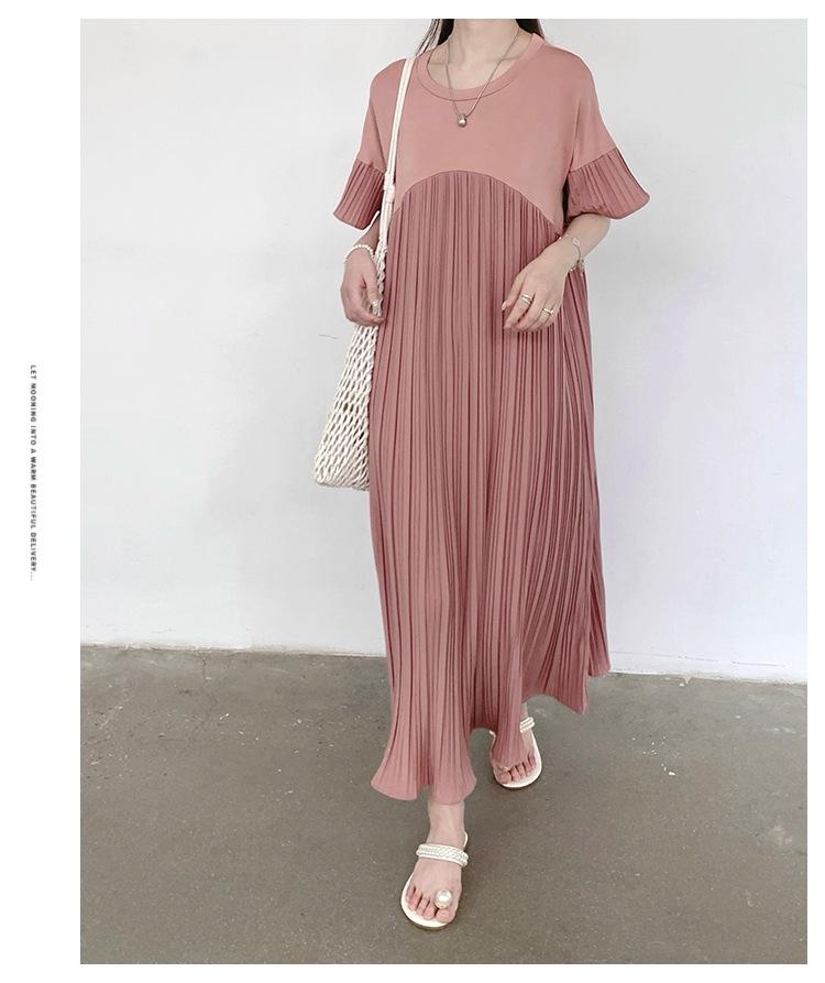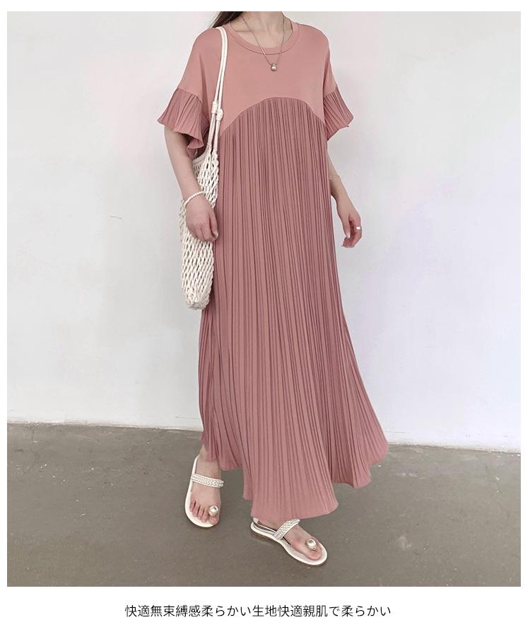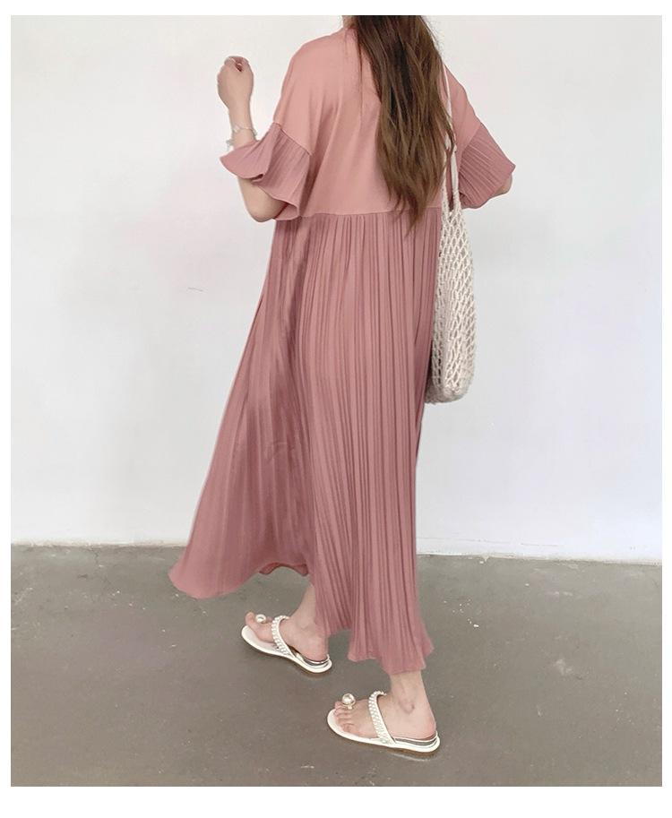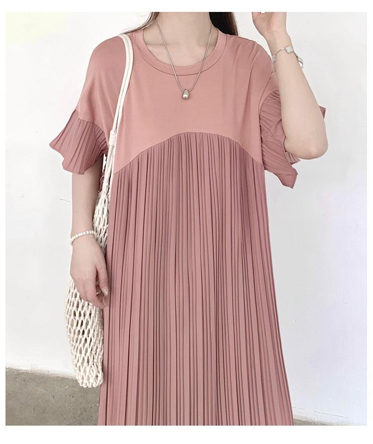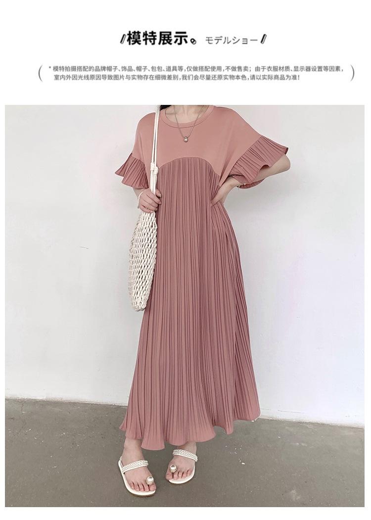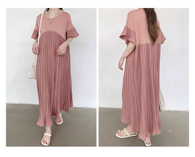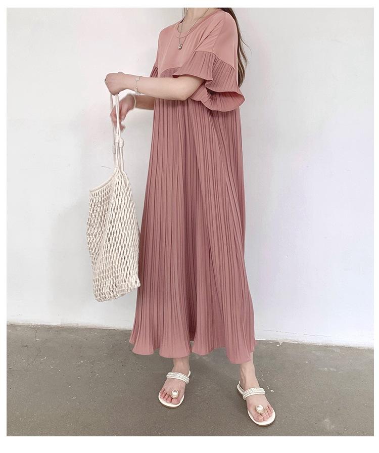 2025 Verano Nuevo Estilo Lotte Ins Japonés y Coreano Holgado Estilo Perezoso Costuras Plisadas Manga Volante Vestido Largo para Mujer