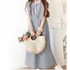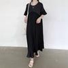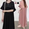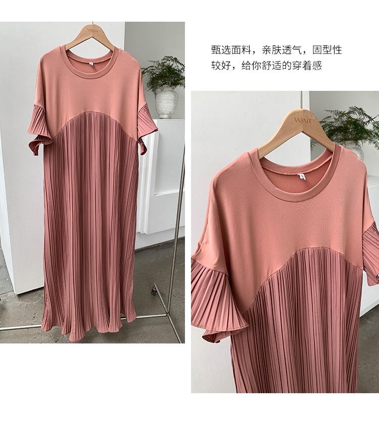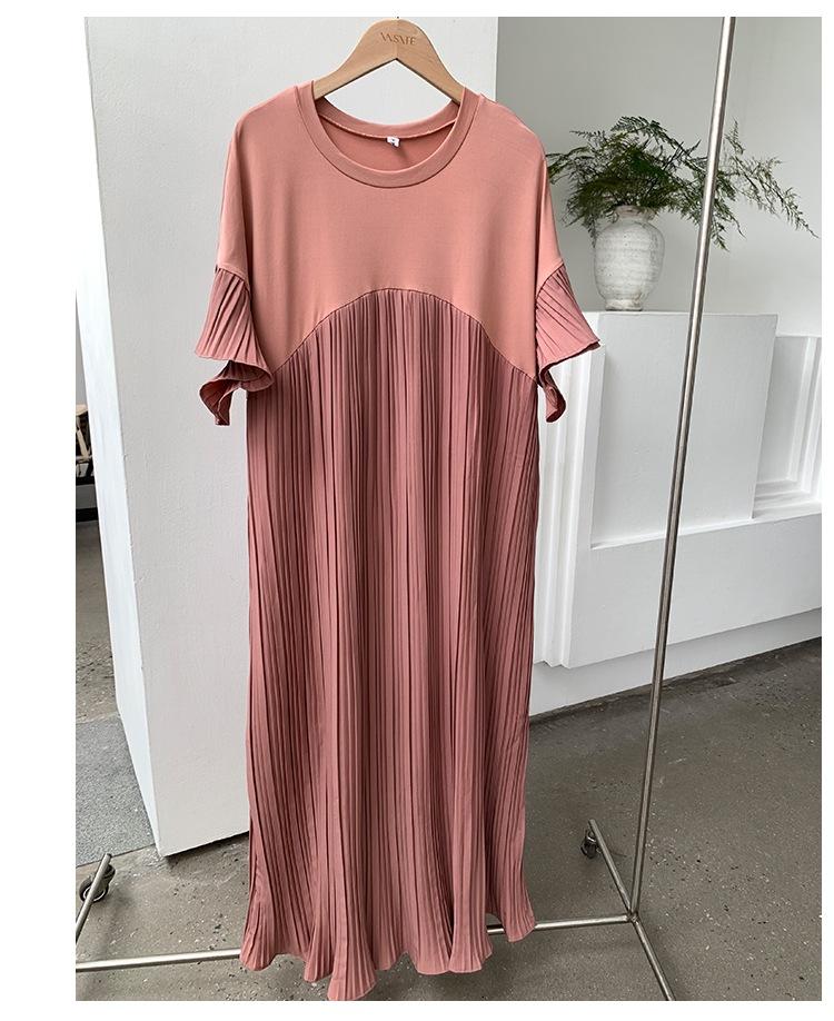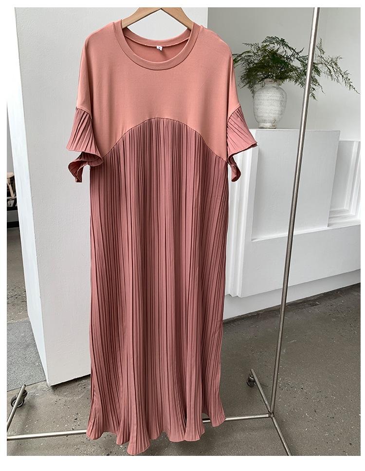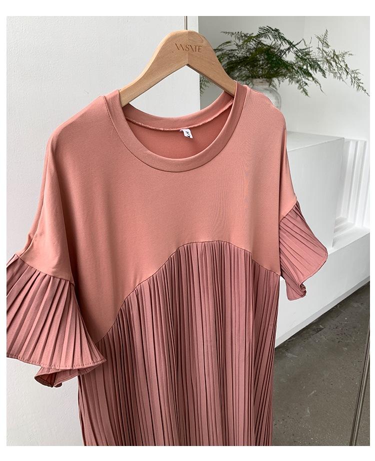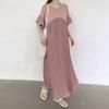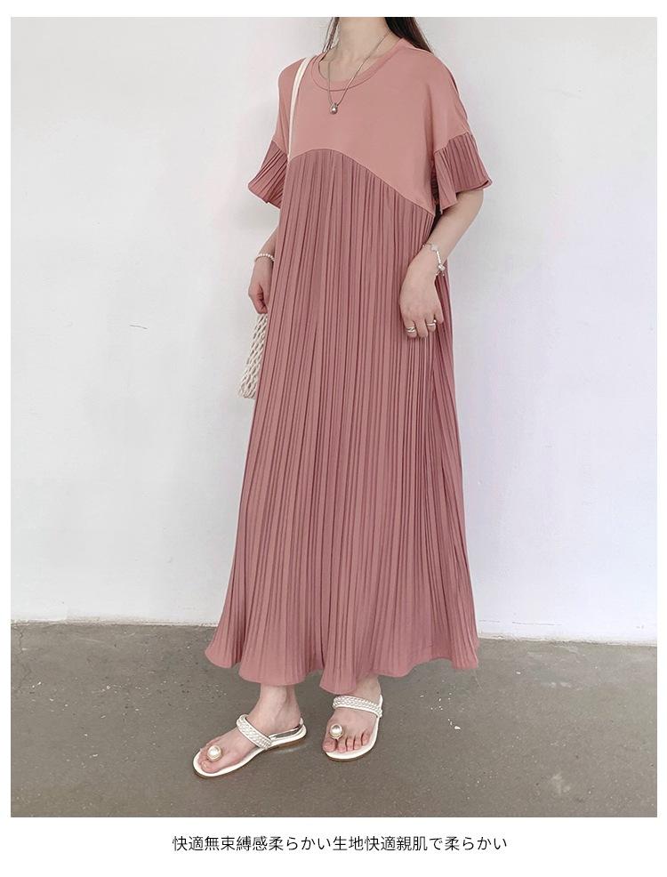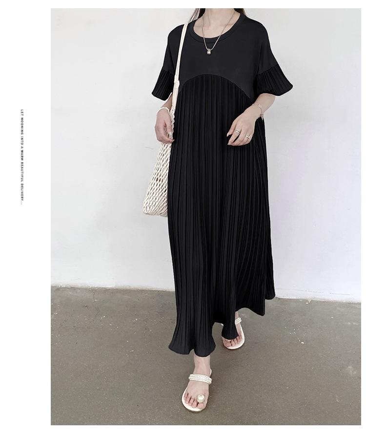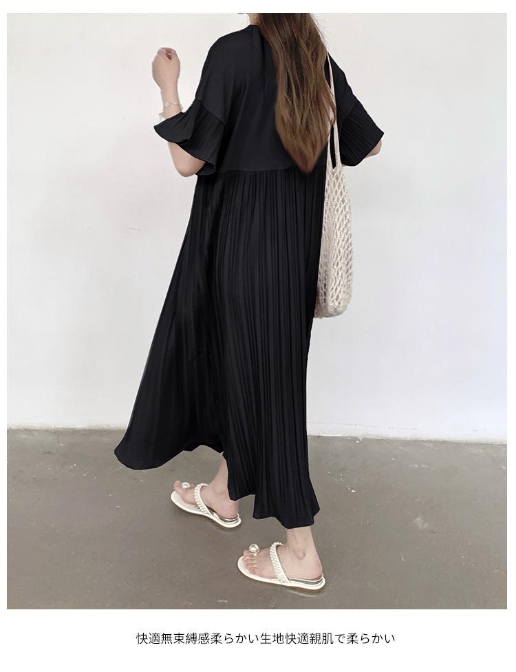 2025 Verano Nuevo Estilo Lotte Ins Japonés y Coreano Holgado Estilo Perezoso Costuras Plisadas Manga Volante Vestido Largo para Mujer