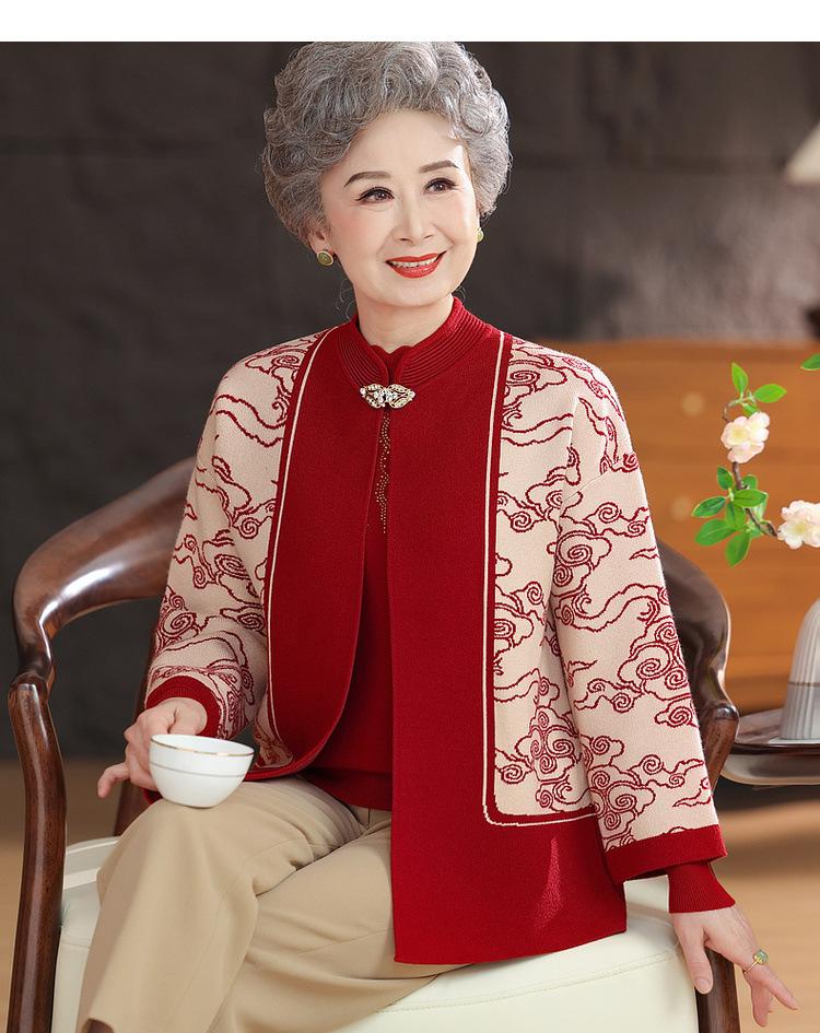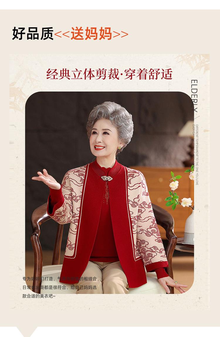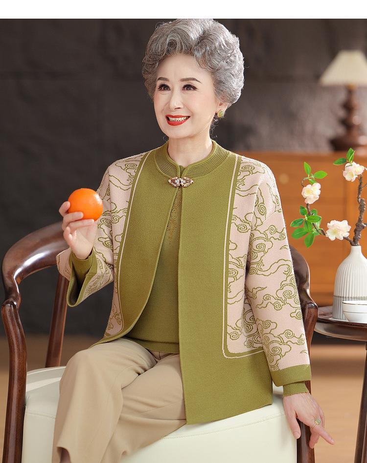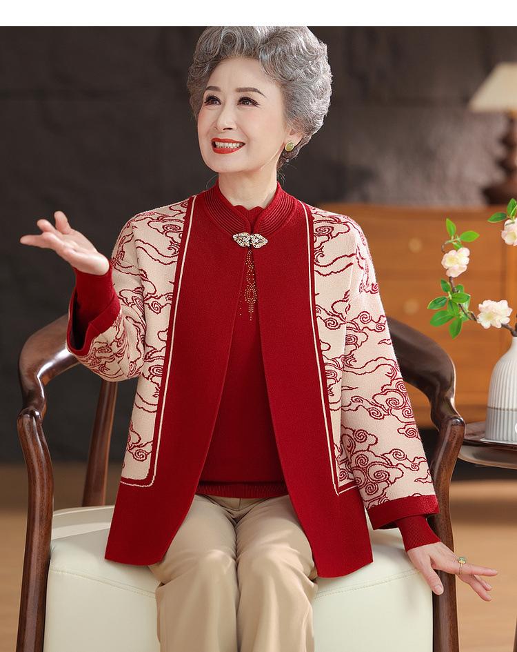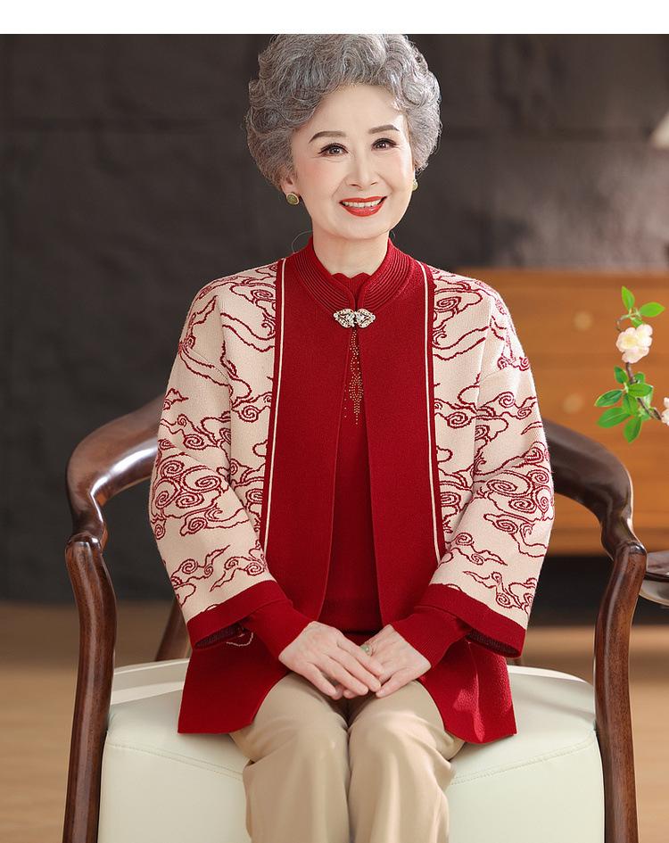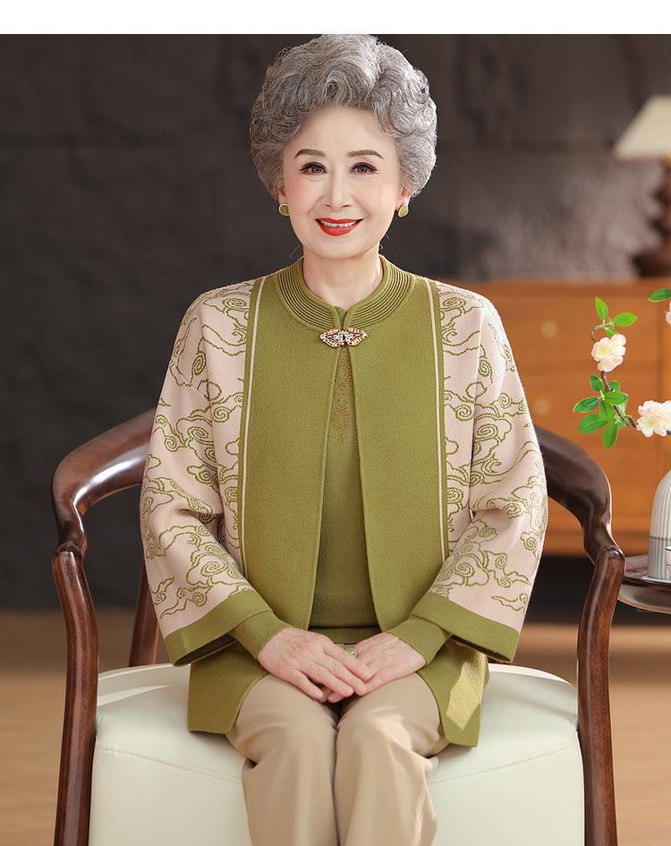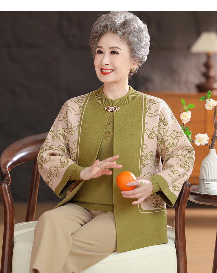 Conjunto de Mamá Otoño e Invierno 2025 Nuevo Cárdigan de Punto Temperamento de Abuela Moda de Dos Piezas Abrigo Suéter para Mujeres de Mediana Edad y Mayores