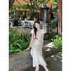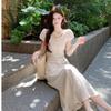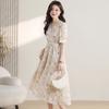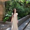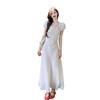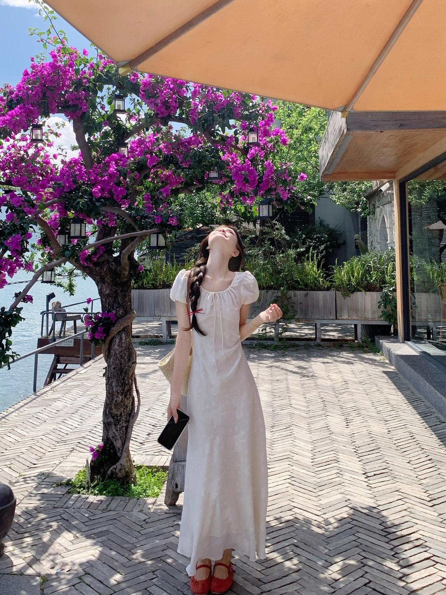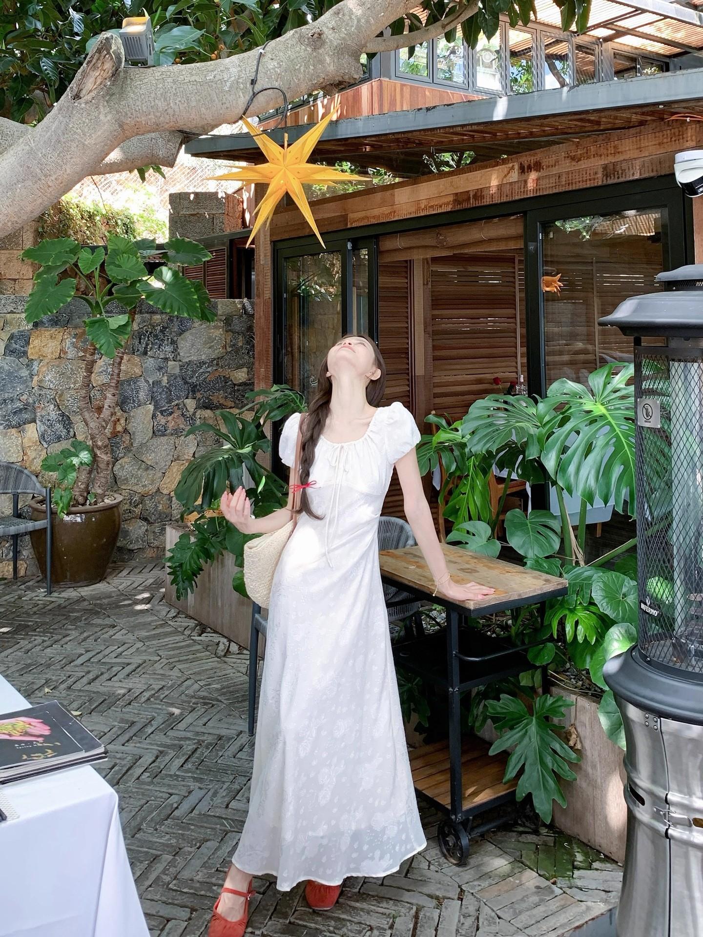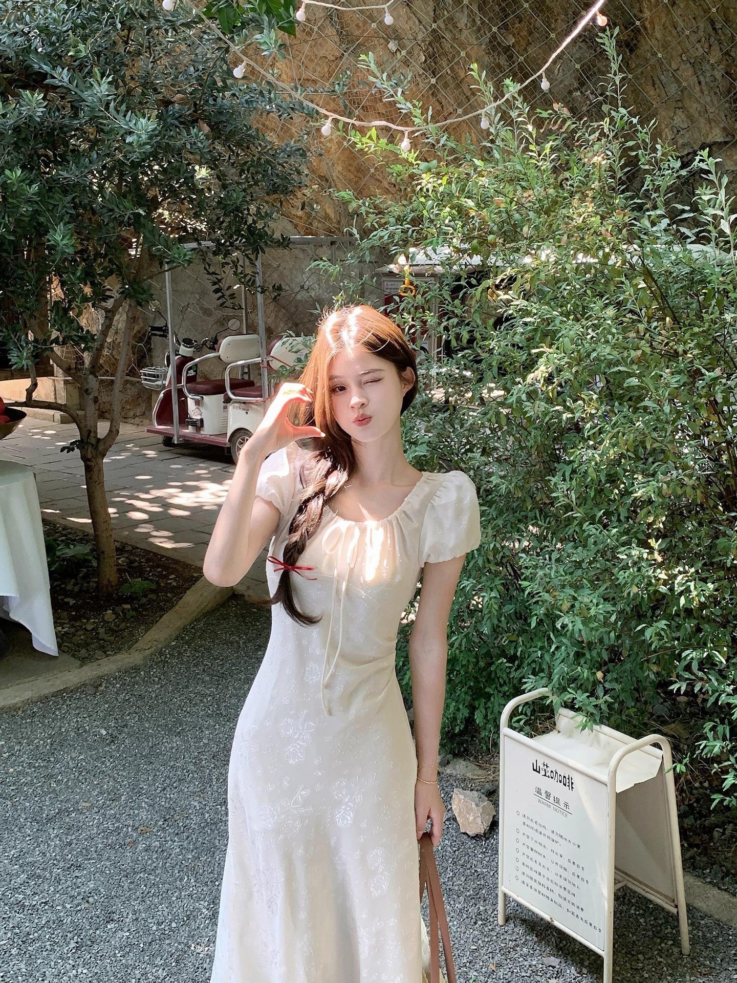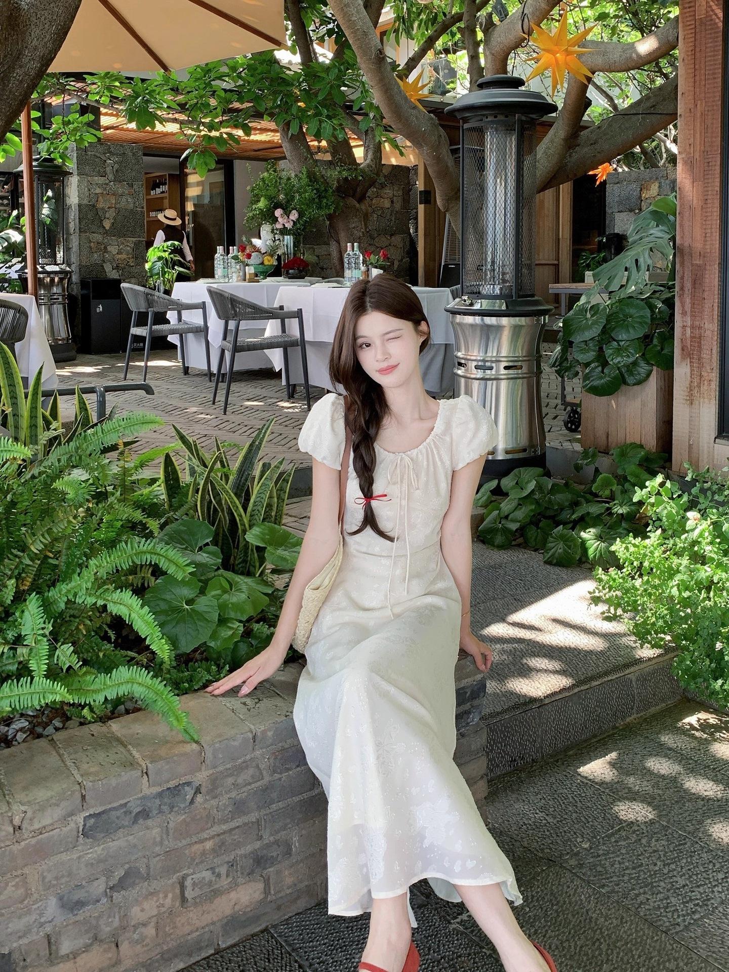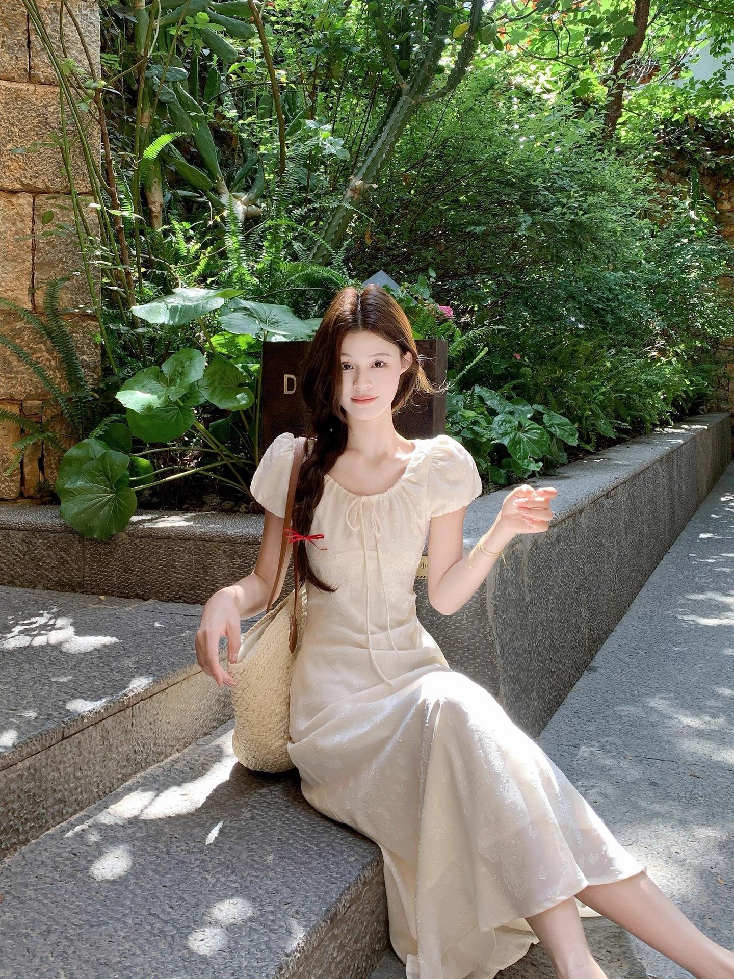 Vestido Largo de Verano Adelgazante Diseño de Temperamento de Alta Gama Suave Vestido Elegante Jacquard de Manga Corta Tendencia para Mujer