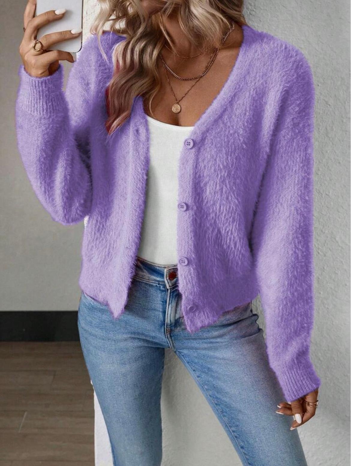 2025 Moda Transfronteriza Europea y Americana Tejido de Punto Suave de Manga Larga de Color Puro con Cuello en V Estilo Casual Relajado Cárdigan Holgado