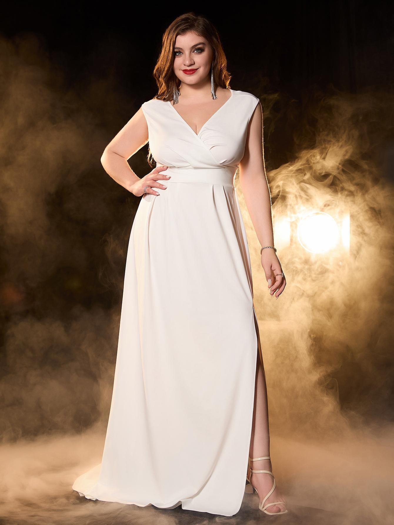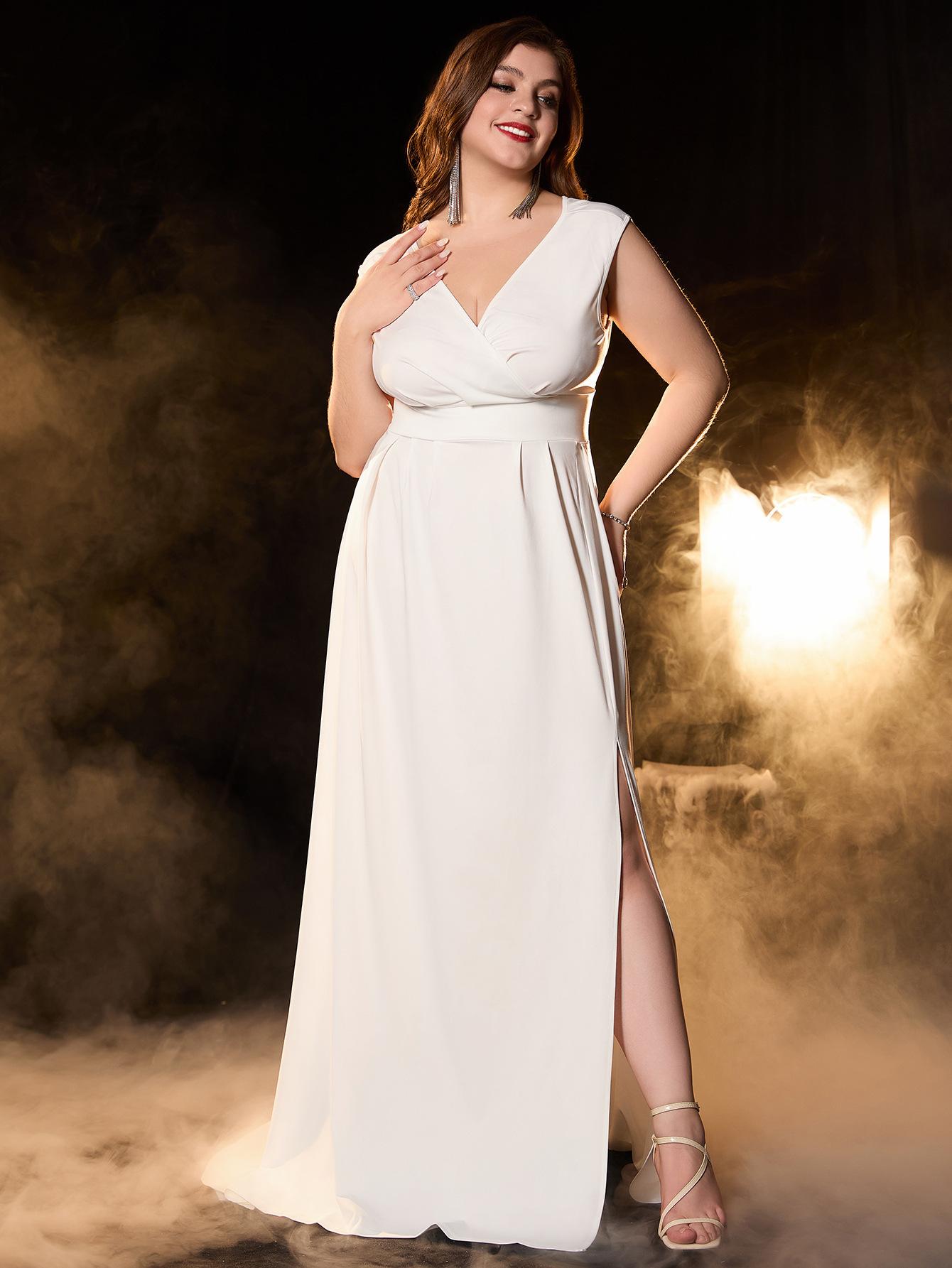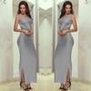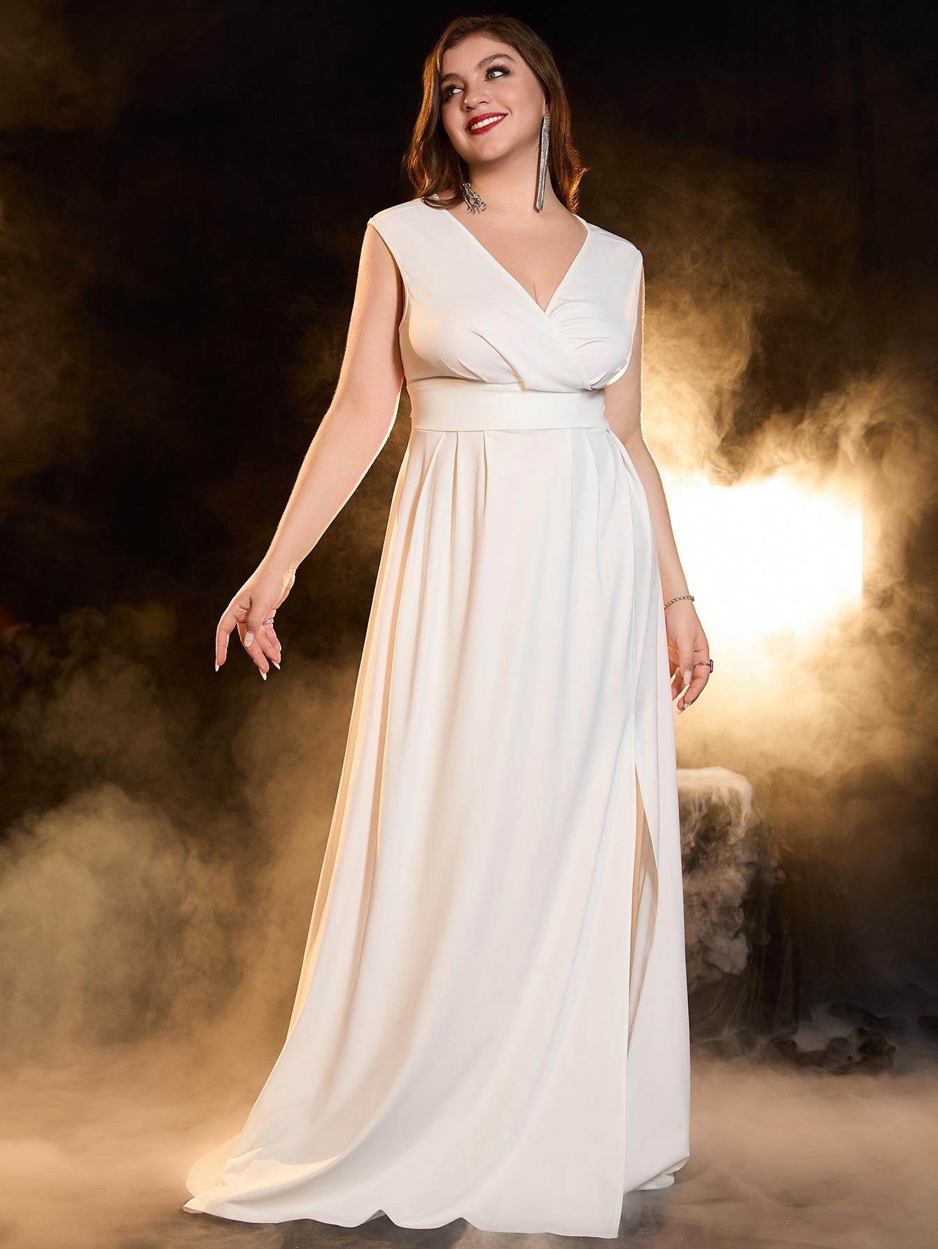 Nuevo Vestido Largo Elegante con Abertura para Mujer de Talla Grande, Color Puro, Cuello en V, Europeo y Americano, Transfronterizo, Amazon, Sin Espalda, Ajustado