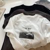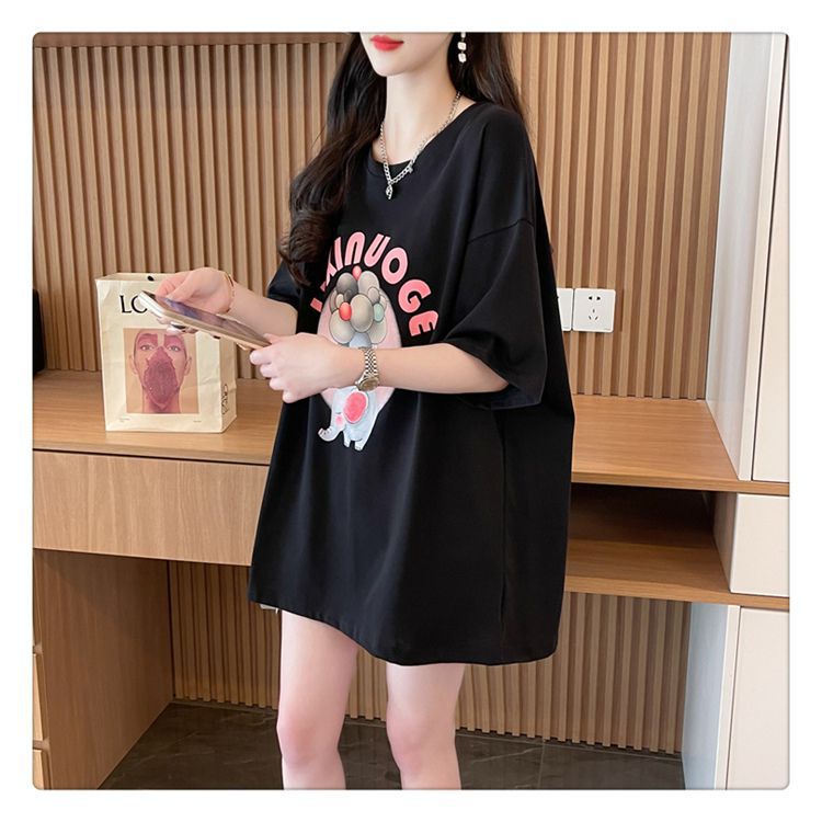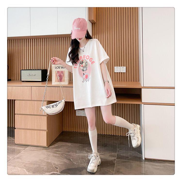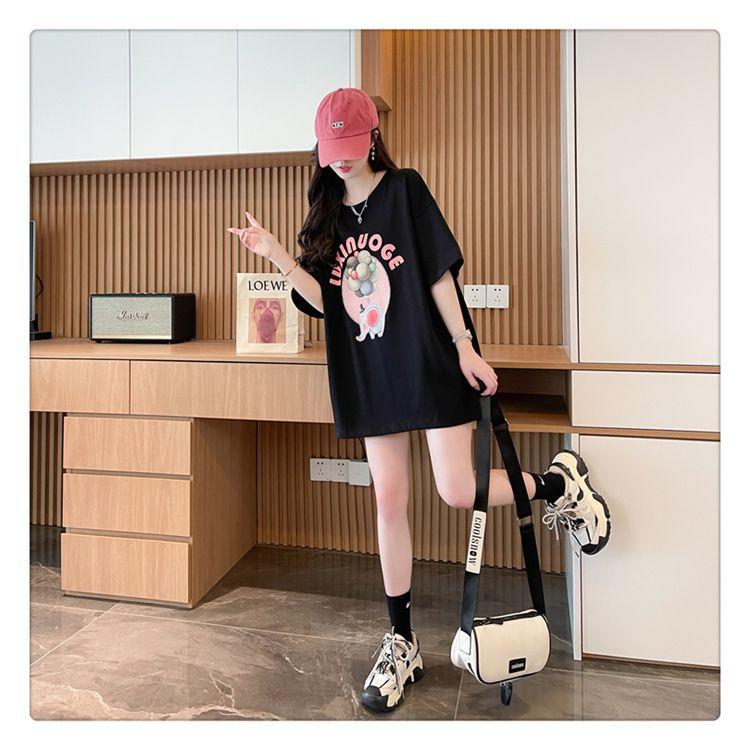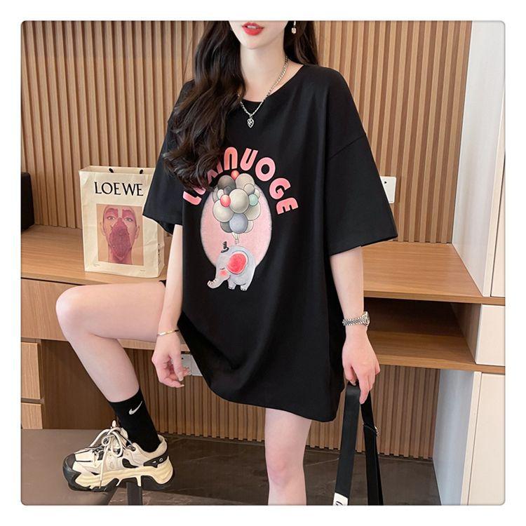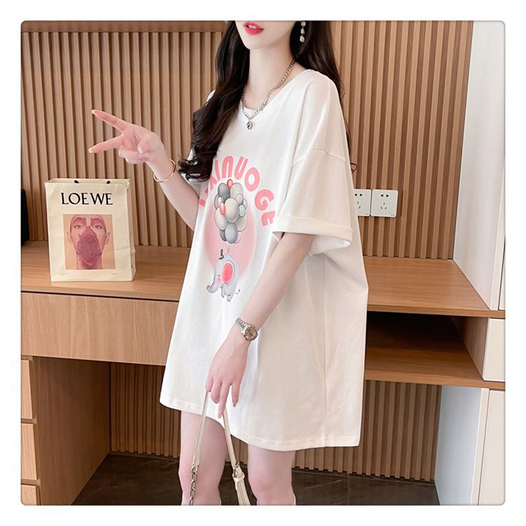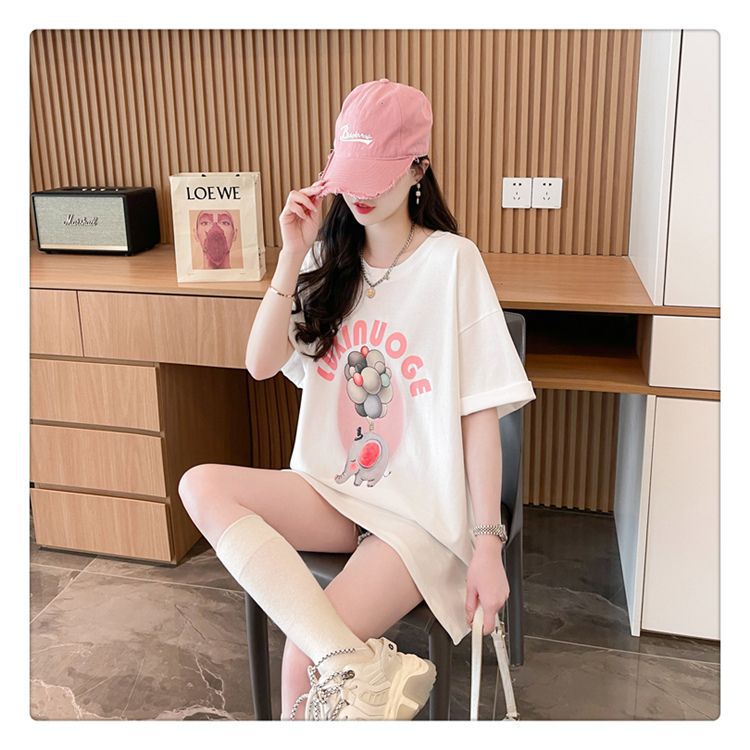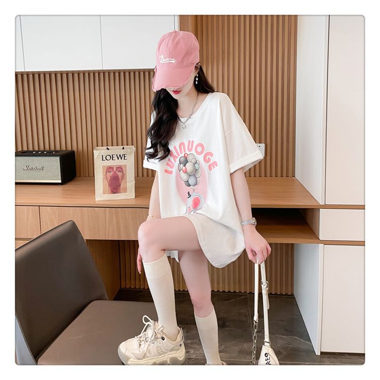 Camiseta de Algodón Puro Estampada de Manga Corta para Mujer Diseño Estilo Coreano 2025 Nueva Holgada Verano Largo Medio Versátil Top Trendy