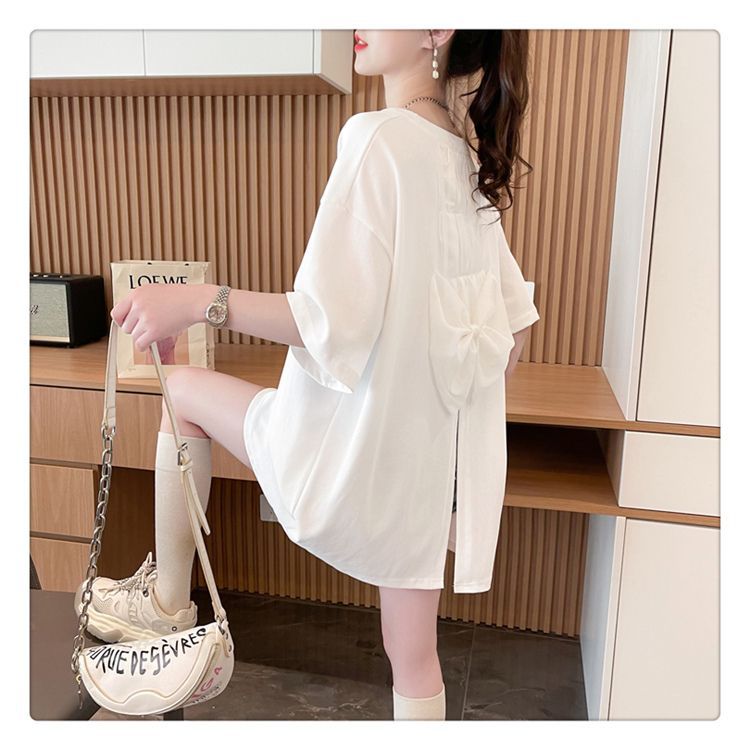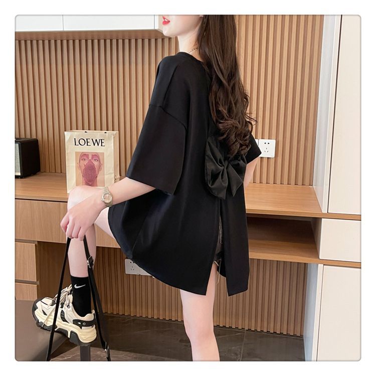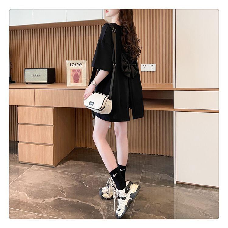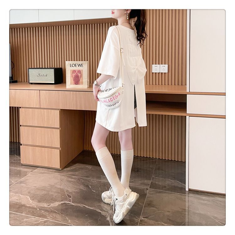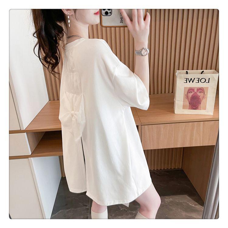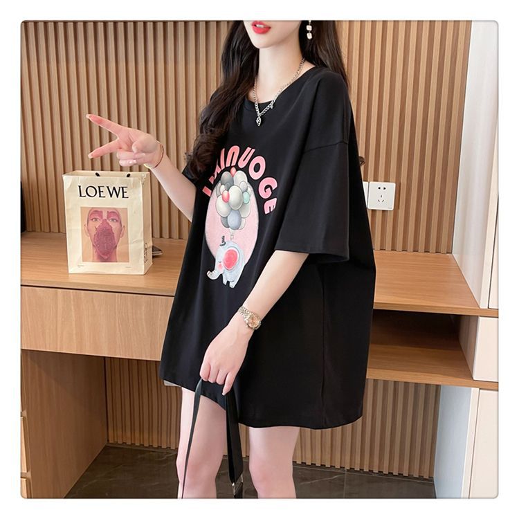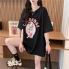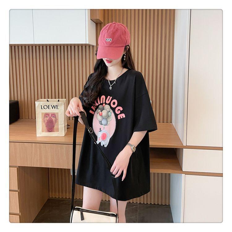 Camiseta de Algodón Puro Estampada de Manga Corta para Mujer Diseño Estilo Coreano 2025 Nueva Holgada Verano Largo Medio Versátil Top Trendy