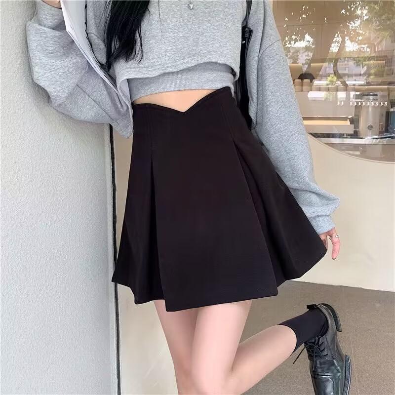 Falda Midi Falda Corta Mujer Verano 2025 Nueva Cintura Alta Adelgazante Negra Falda Plisada Antiexposición Línea A Versátil