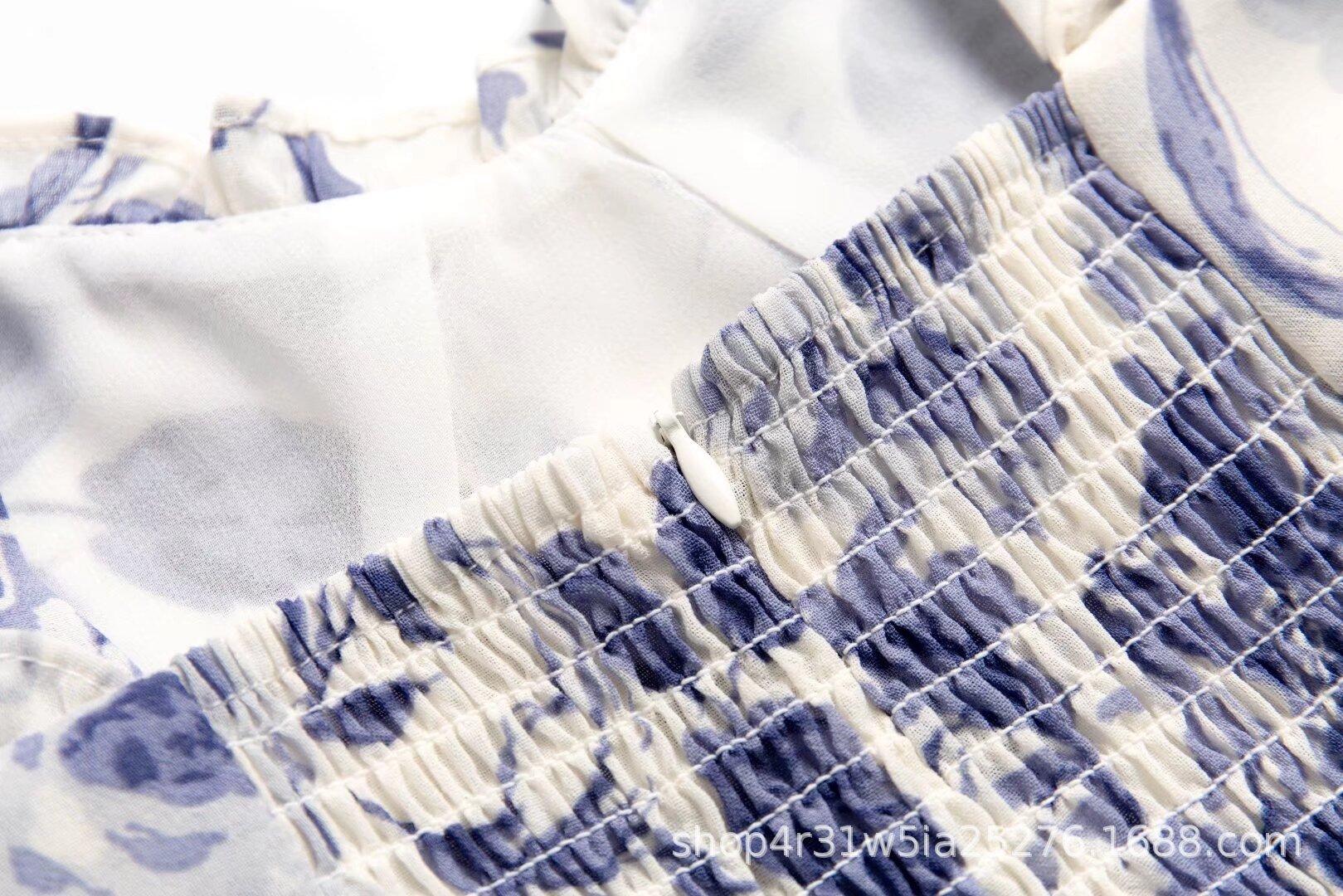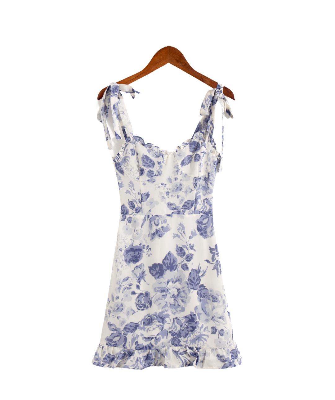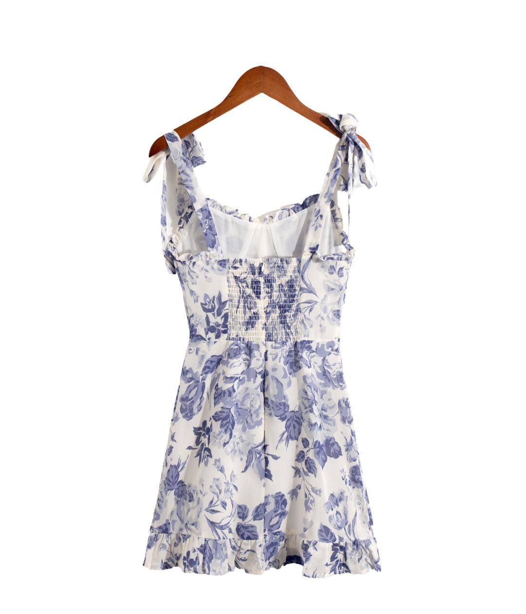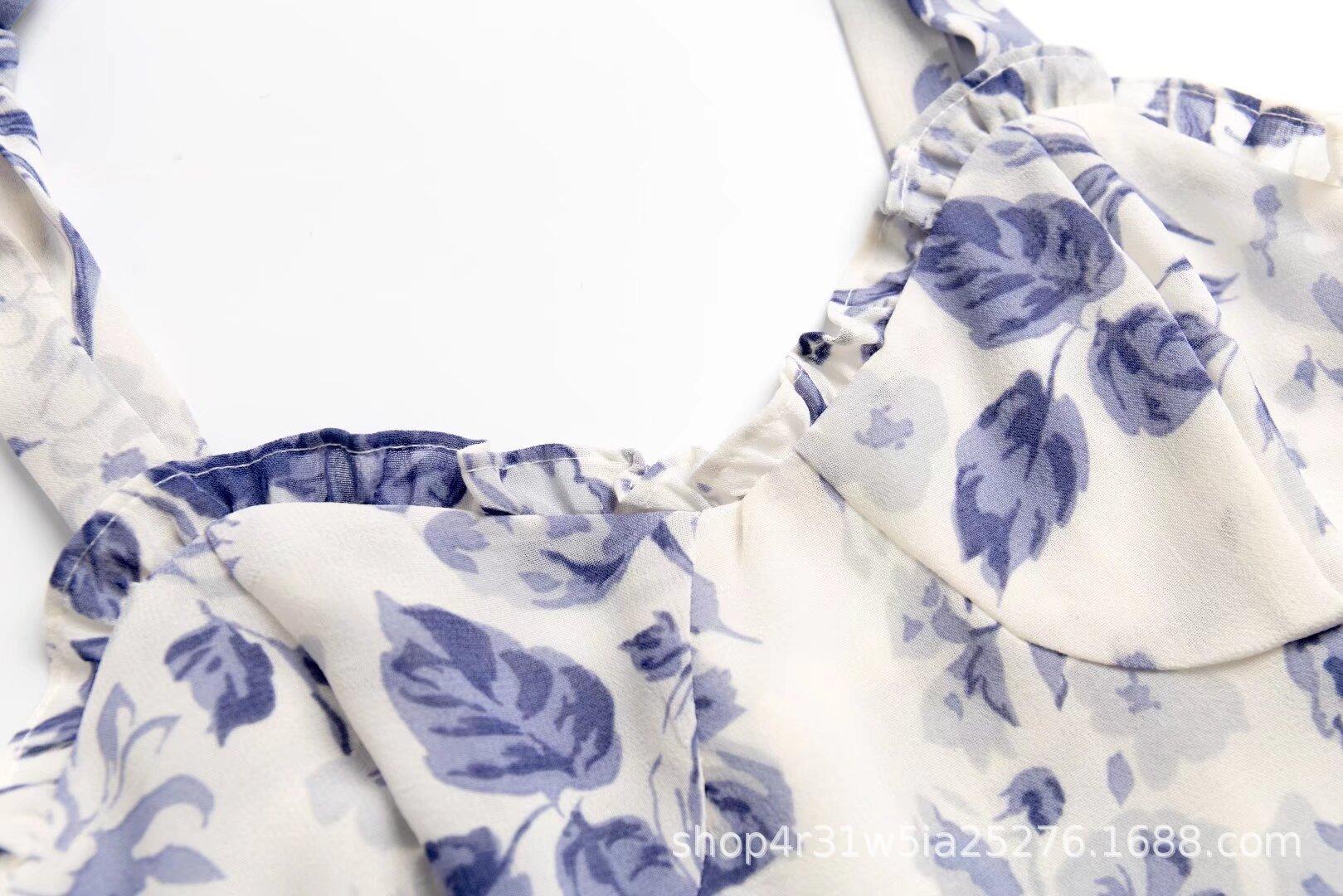 Venta al por Mayor Transfronteriza Nuevo Vestido Slim y Versátil Francés Estampado con Tirantes Europeos y Americanos para Mujer