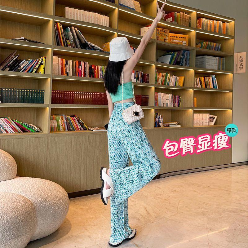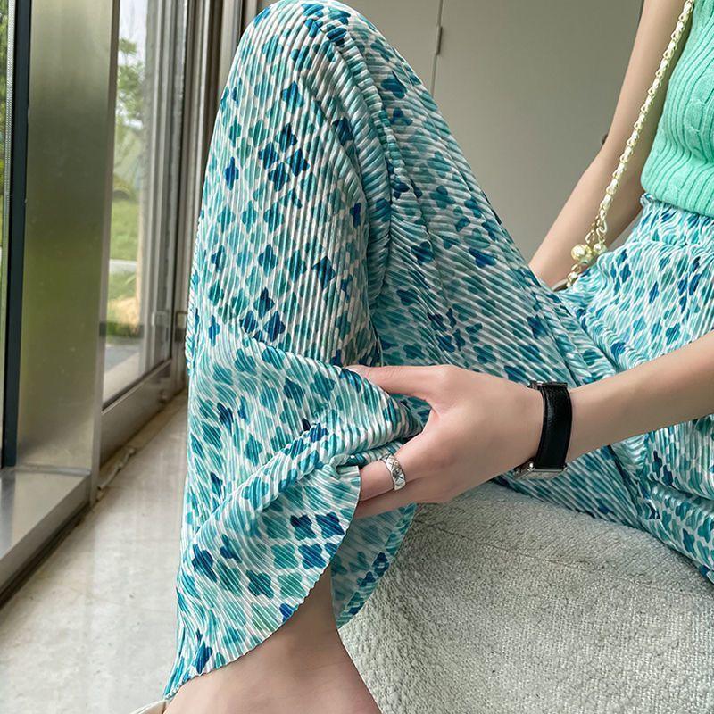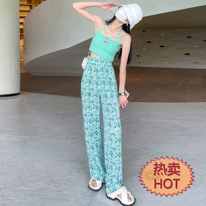 Pantalones Anchos Sueltos de Seda de Hielo para Mujer, Verano Delgados Rectos Casuales Largos hasta el Piso Frescos Versátiles Elegantes