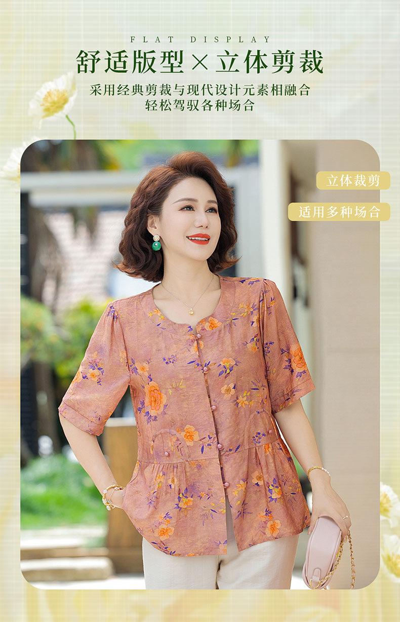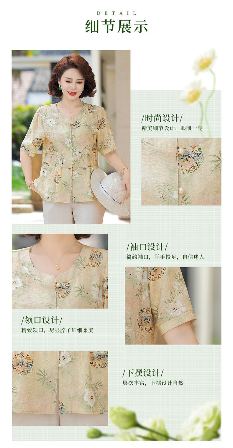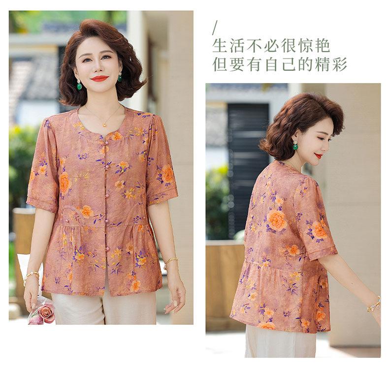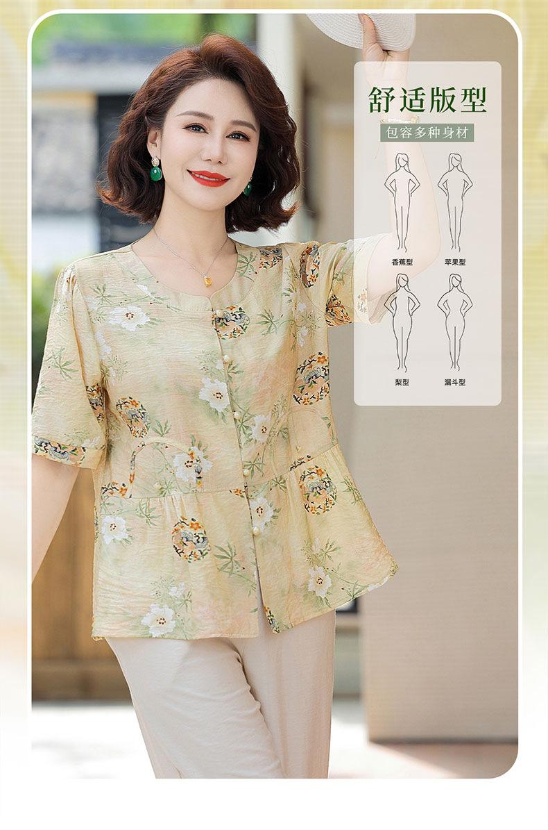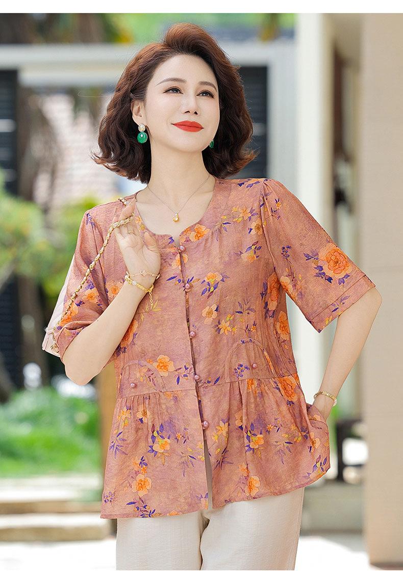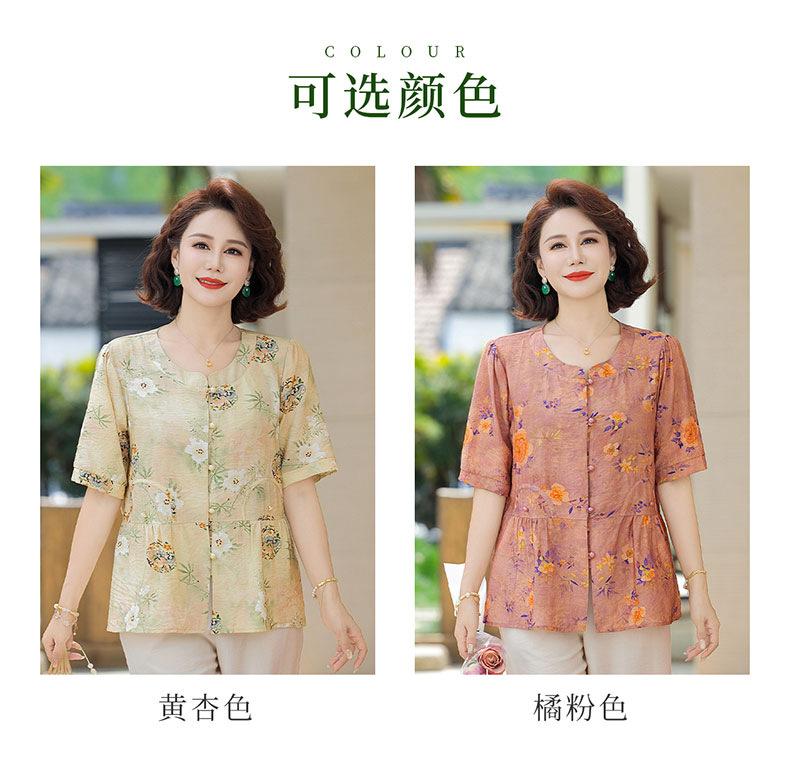 Traje de Camiseta de Manga Corta de Lino Tencel de Verano para Madre 2025 Nuevo para Mujeres de Mediana Edad y Mayores, Camiseta Fina Transpirable