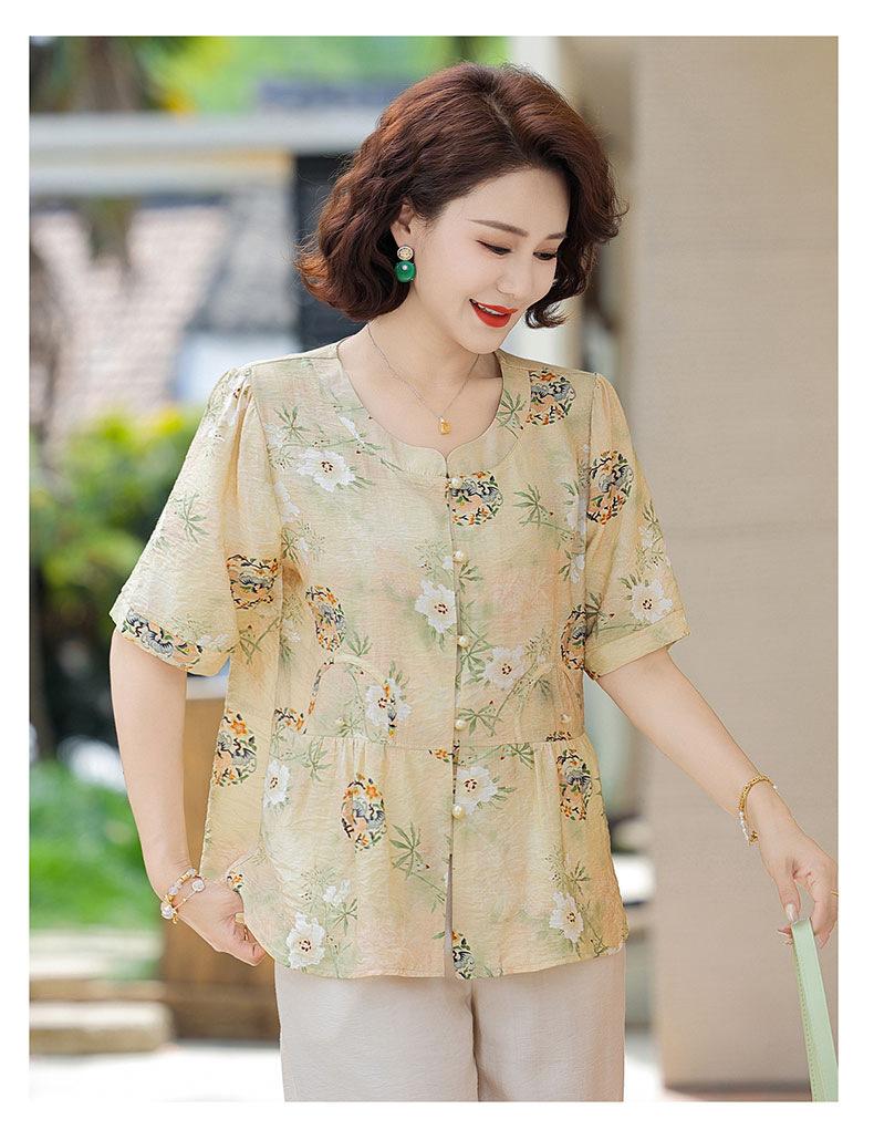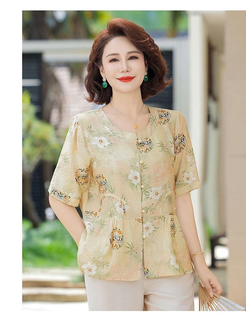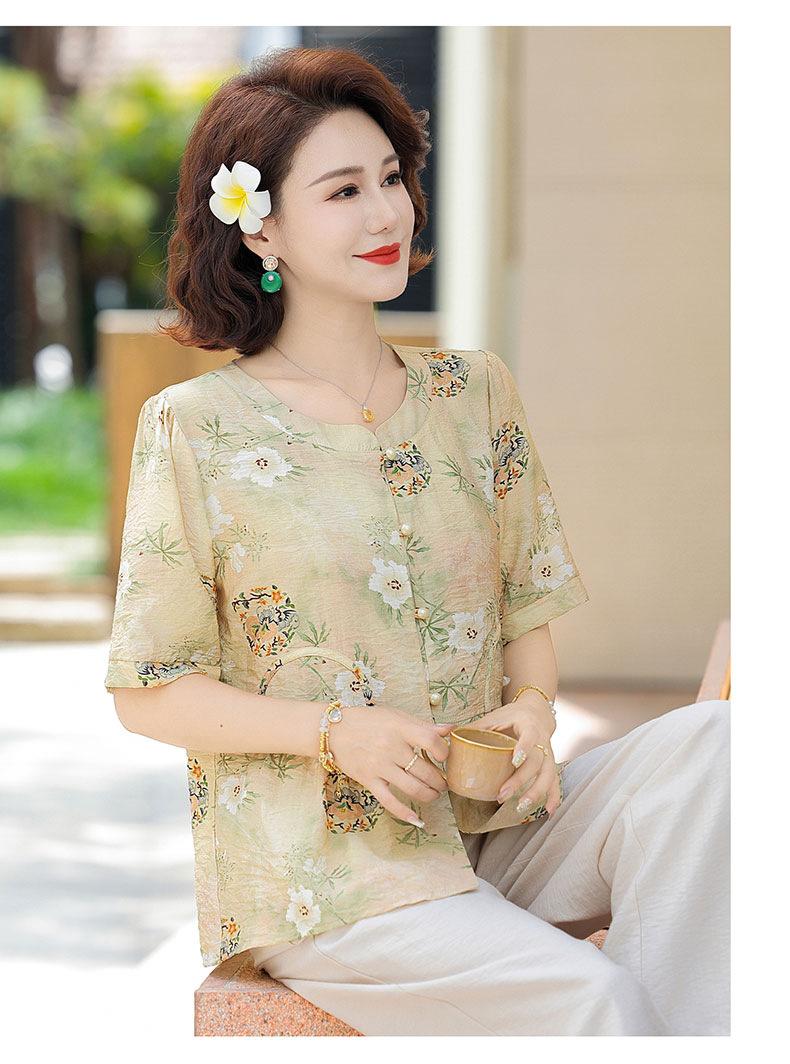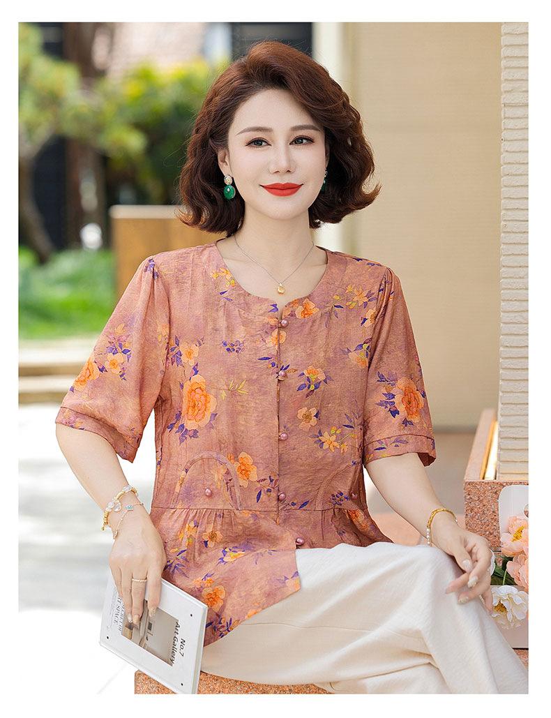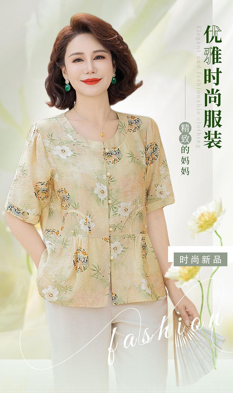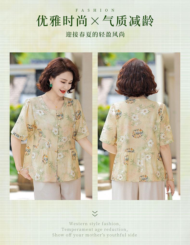 Traje de Camiseta de Manga Corta de Lino Tencel de Verano para Madre 2025 Nuevo para Mujeres de Mediana Edad y Mayores, Camiseta Fina Transpirable